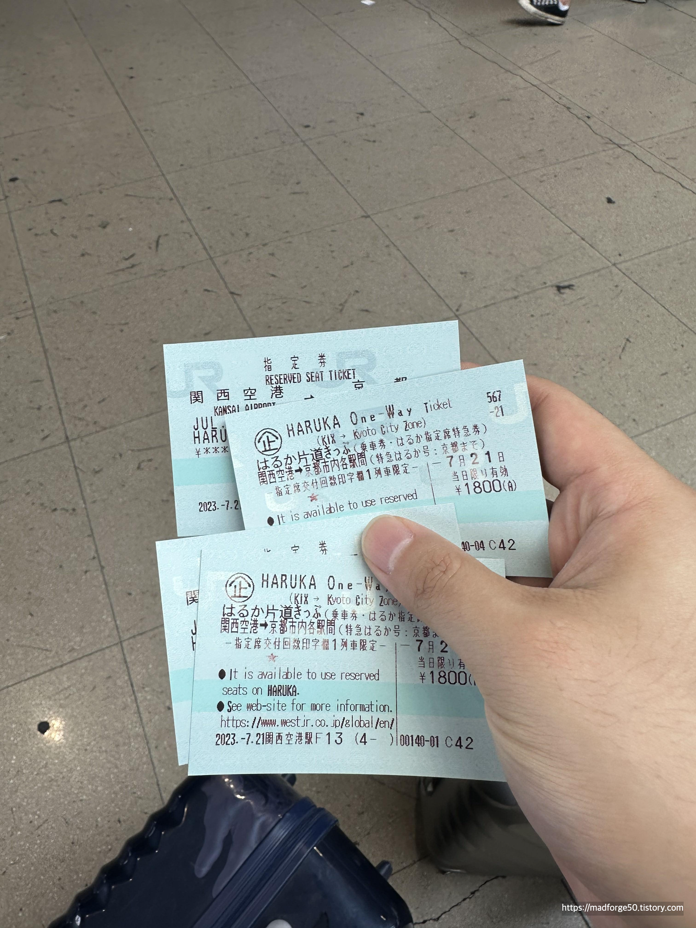 우리는 우선 하루카로 간사이 공항에서 교토로 가는 기차와, 오사카에서 간사이 공항으로 가는 기차의 티켓팅을 하였다. 물론 이런 티켓팅을 하지 않고 ICOCA카드로 앉는 좌석이 없이 갈 수도 있다. (개인적으로는 비추한다. 특급의 경우 30분인데 일반으로 기차를 차면 1시간 30분 이상 걸리기 때문이다.)