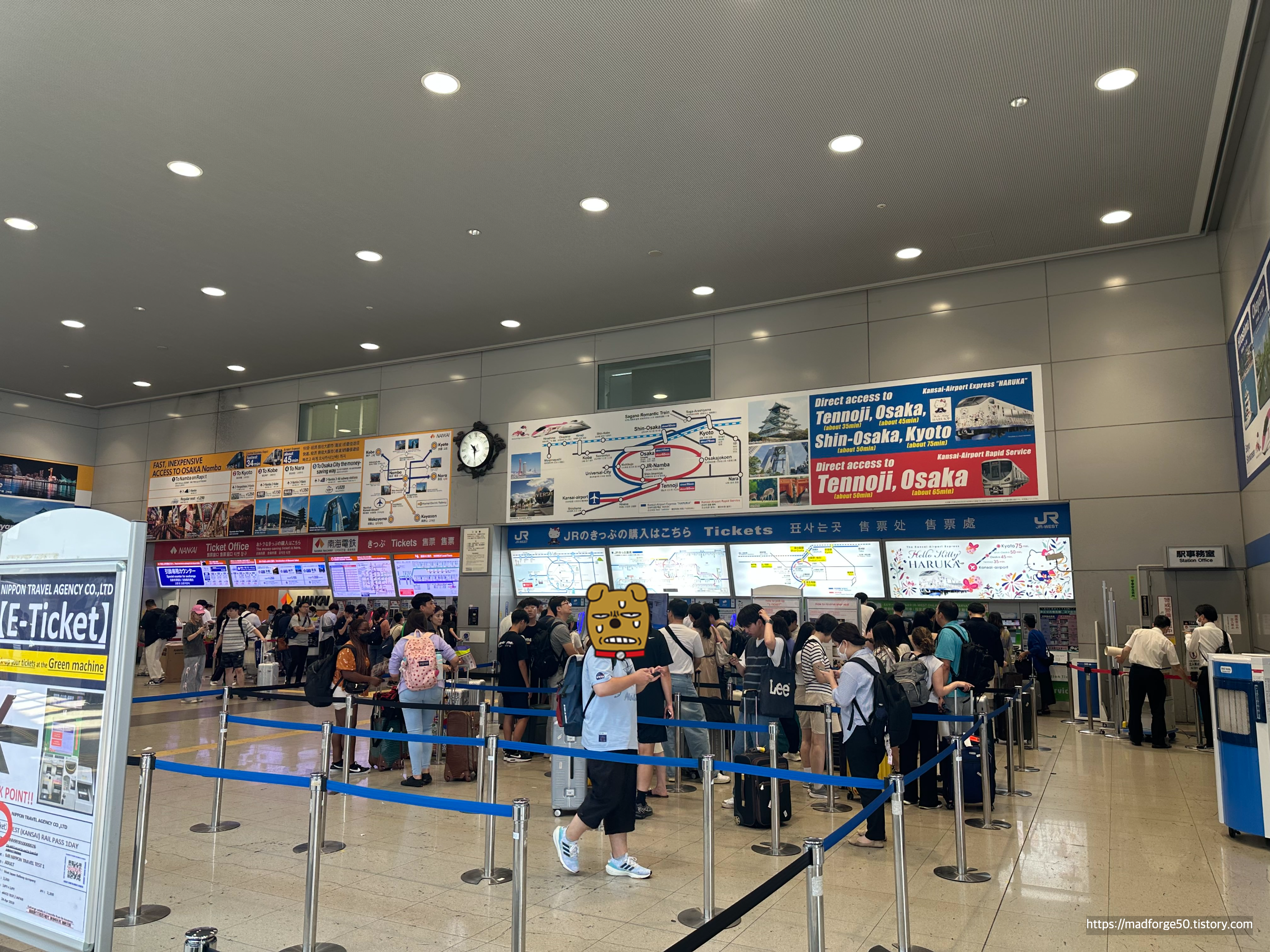 물론 무인으로 하는 것이 사람도 안 만나고 안 되는 영어, 일본어 섞어가면서 하기보단 나을 수도 있지만 솔직히 어려운 영어, 일본어 쓰지 않아도 정말 간단히 Ticket Office에서 처리할 수가 있다. 만일 예매한 티켓이 2개 이상이고 ICOCA 카드도 사야 한다면 Ticket Office에 줄을 서서 처리를 하는 게 많은 일을 동시에 처리할 수 있어 좋다.