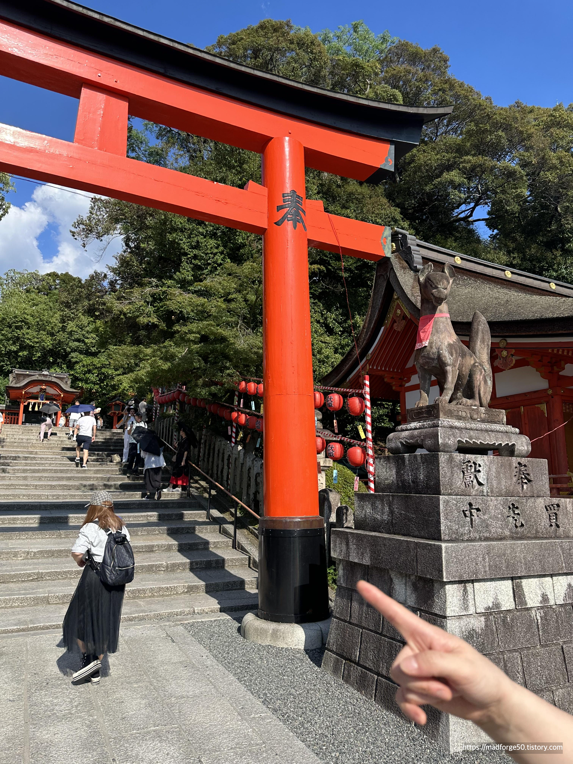 우리가 갔던 7월은 초여름이라고 하지만 34~36도를 육박한 폭염이었기 때문에 너무나 덥고 신사 안으로 들어가 산을 오르기 전에는 그늘 한점 없기 때문에 양산이 필수다. (사람은 많고 태양은 아주 뜨겁다. 등산을 어느 정도 해야 하기 때문에 운동화를 신고 오는 것을 추천한다.)