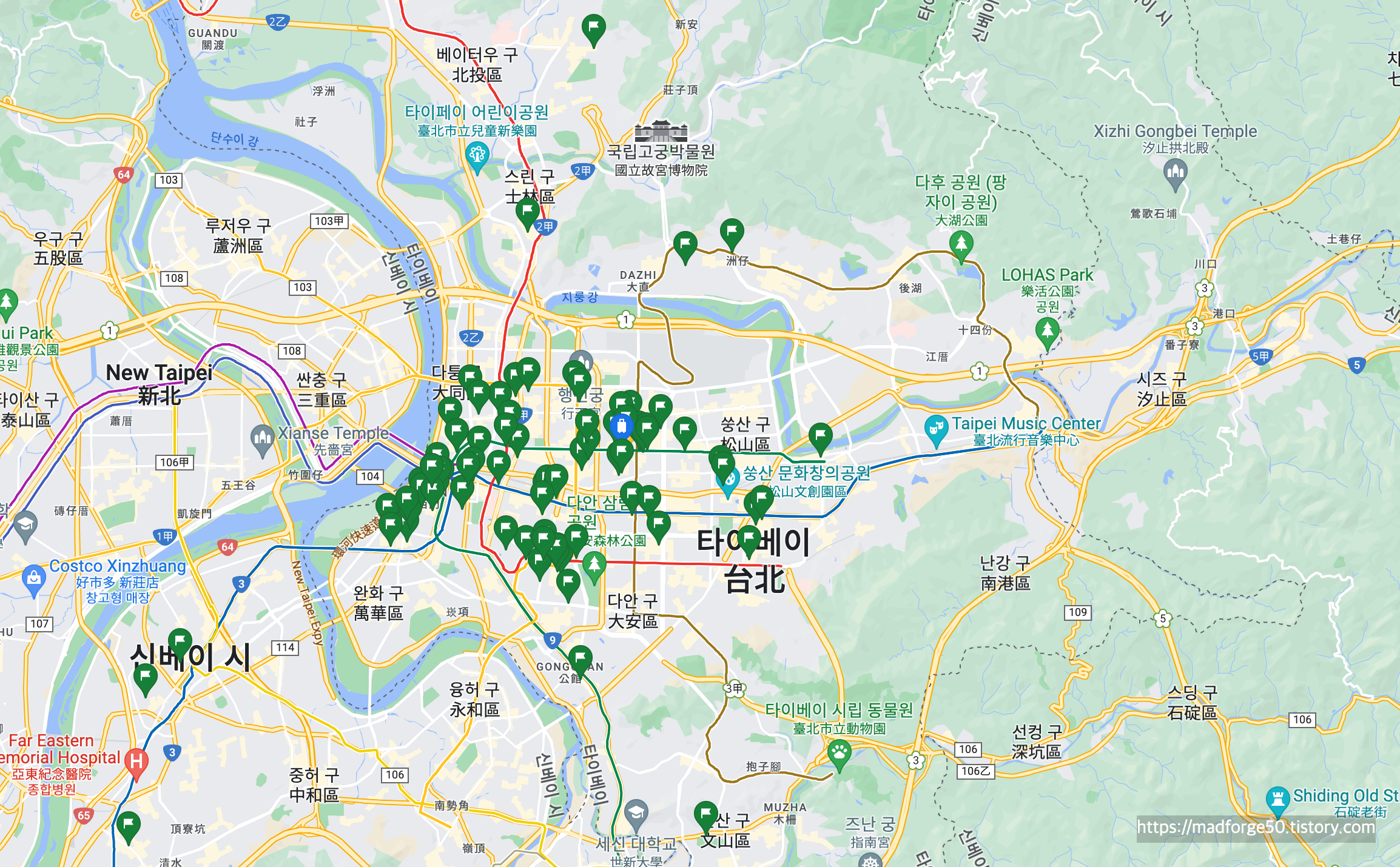 그렇게 MRT를 타고 공항에서 타이베이역으로 향하였다. 우리는 난징푸싱역에 있는 Hotel Metropolitan Premier Taipei에서 묵었는데 일본 계열의 호텔이고 아주 깔끔하고 방도 넓어 좋았다. 물론 타이베이 역이나 시먼딩 등 중심가와는 멀지만 조용하고 금융지구에 있는 호텔이라 저렴한 가격에 큰 방을 쓸 수 있는 장점이 있다.