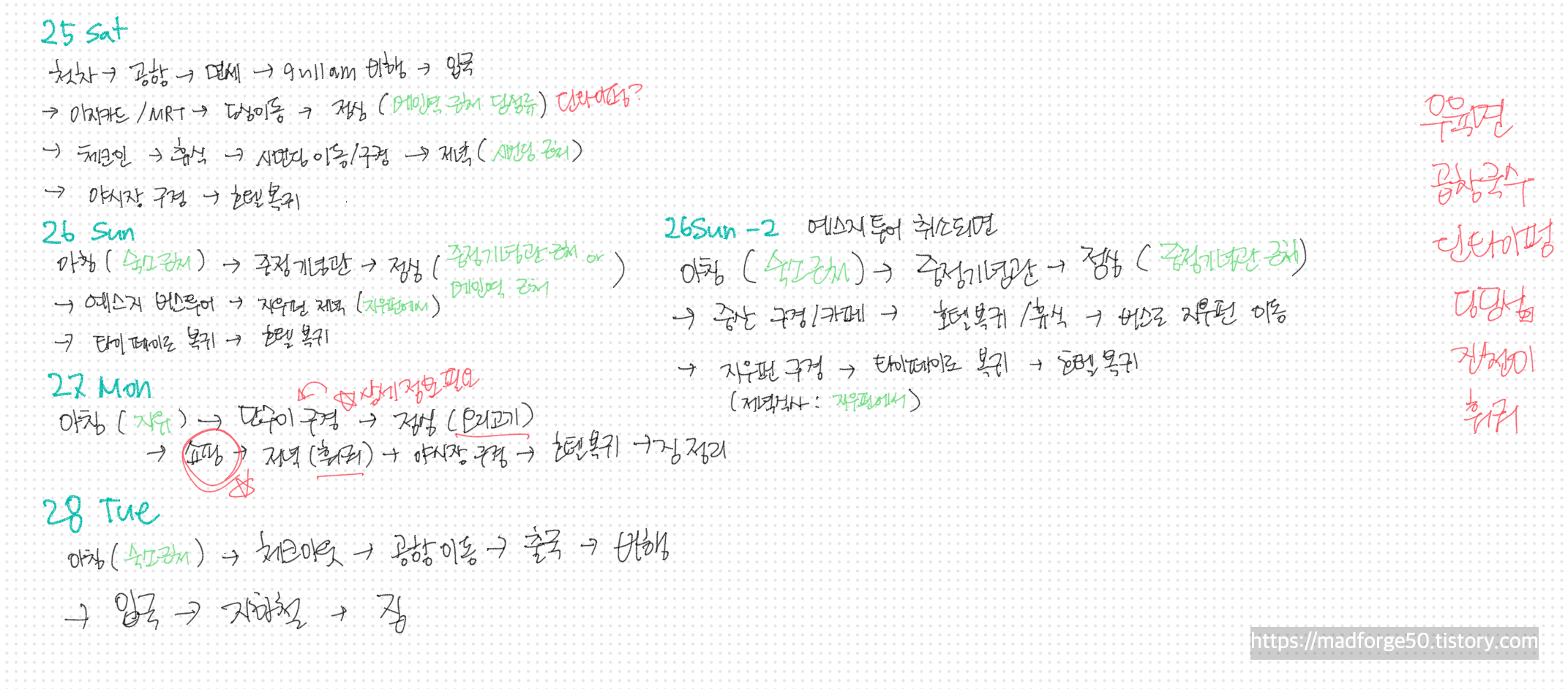3월 말에 계획했던 여행이었는데 역시 우리 부부가 여행하던 여느 때와 다름없이 비가 많이 온다는 기상 예보가 있었다. 참 신기한 건 딱 그 일주일만 비가 왔다는 점이다. 우리 앞 뒤로 여행을 했던 사람들은… 날씨가 참 좋았었더라.