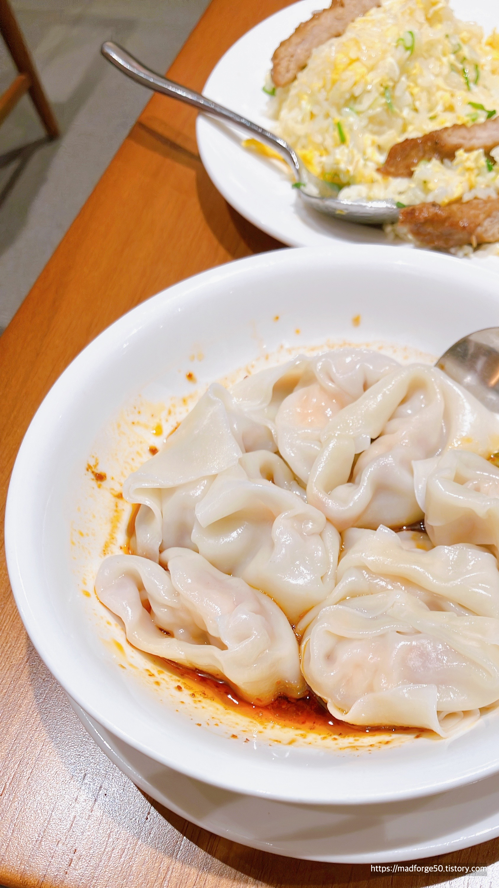 사실 볶음밥의 맛은 중화권 어디서나 먹을 수 있는 돼지기름맛이 느껴지는 계락 볶음밥이었다. 하지만 이 볶음밥에 올려져 있는 돼지갈비튀김이 정말 별로였는데 향신료의 맛과 향은 둘째 치고라도 냉동으로 돌려먹는 돼지고기 동그랑땡의 맛이 나서 별로였던 것 같다. 그리고 가장 좋았던 건 마라맛이 나는 비빔 만두였다. 이게 신의 한 수였는데 남은 소스를 볶음밥에 같이 비벼 먹으니 맛이 없었던 볶음밥이 살아났다. ㅋㅋ