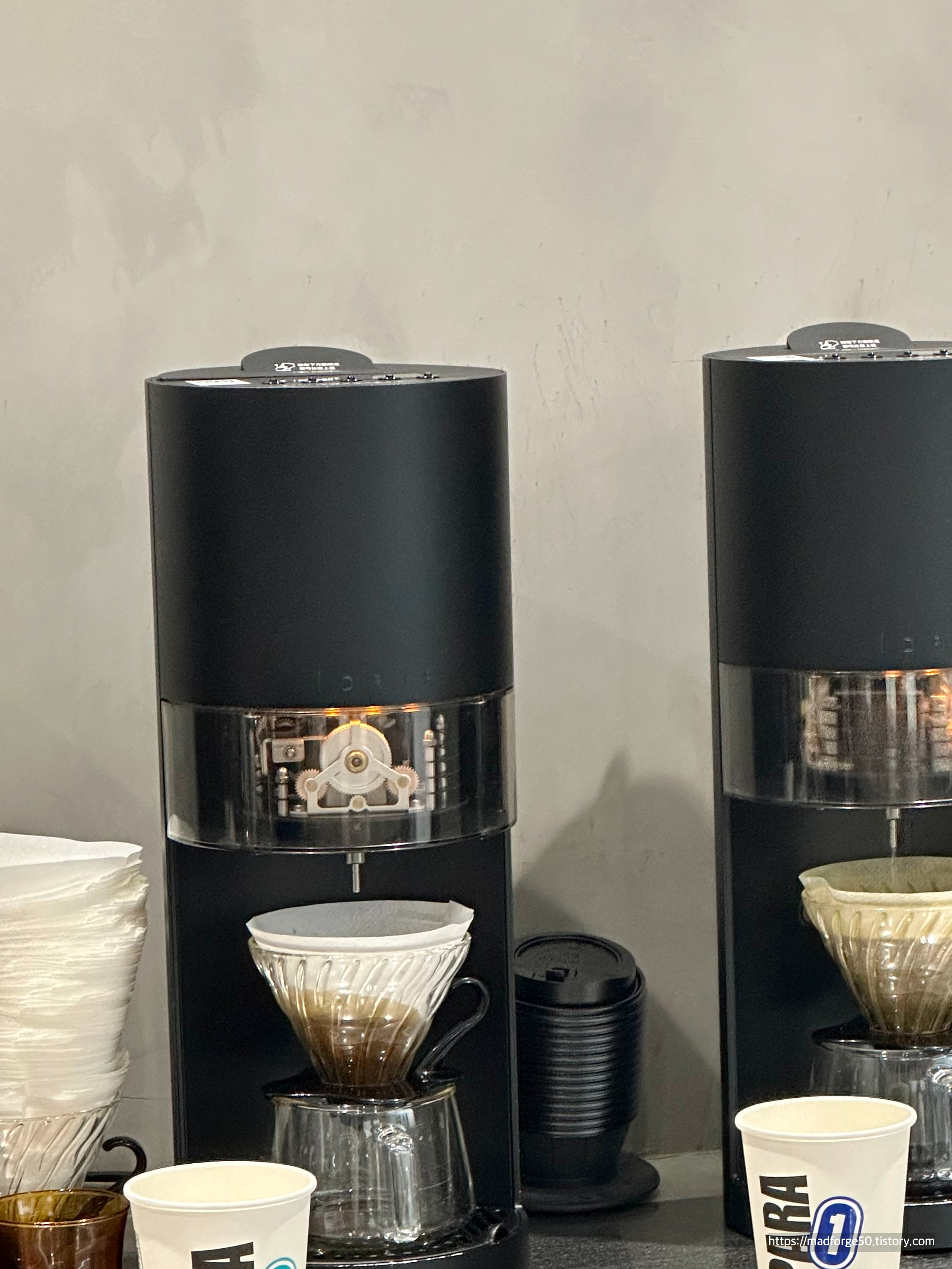 우리는 바로 호텔 바로 앞에 위치한 PARA coffee로 향했는데 이 지점은 내가 우연히 찾은 카페였다. 이 카페의 가장 큰 특징은 에스프레서 머신이 아닌 브루잉 머신을 통해 커피를 내린다는 점이다. 또한 원두를 고를 때 원두의 종류가 아닌 번호로써 표현을 하고 그 번호대로 로스팅의 정도를 나누어 놨다는 점이다. 우리는 1,2번인 Light Roast와 Light Medium Roast를 주문했는데 사진과 같이 브루잉 머신이 돌아가면서 커피를 내려준다.