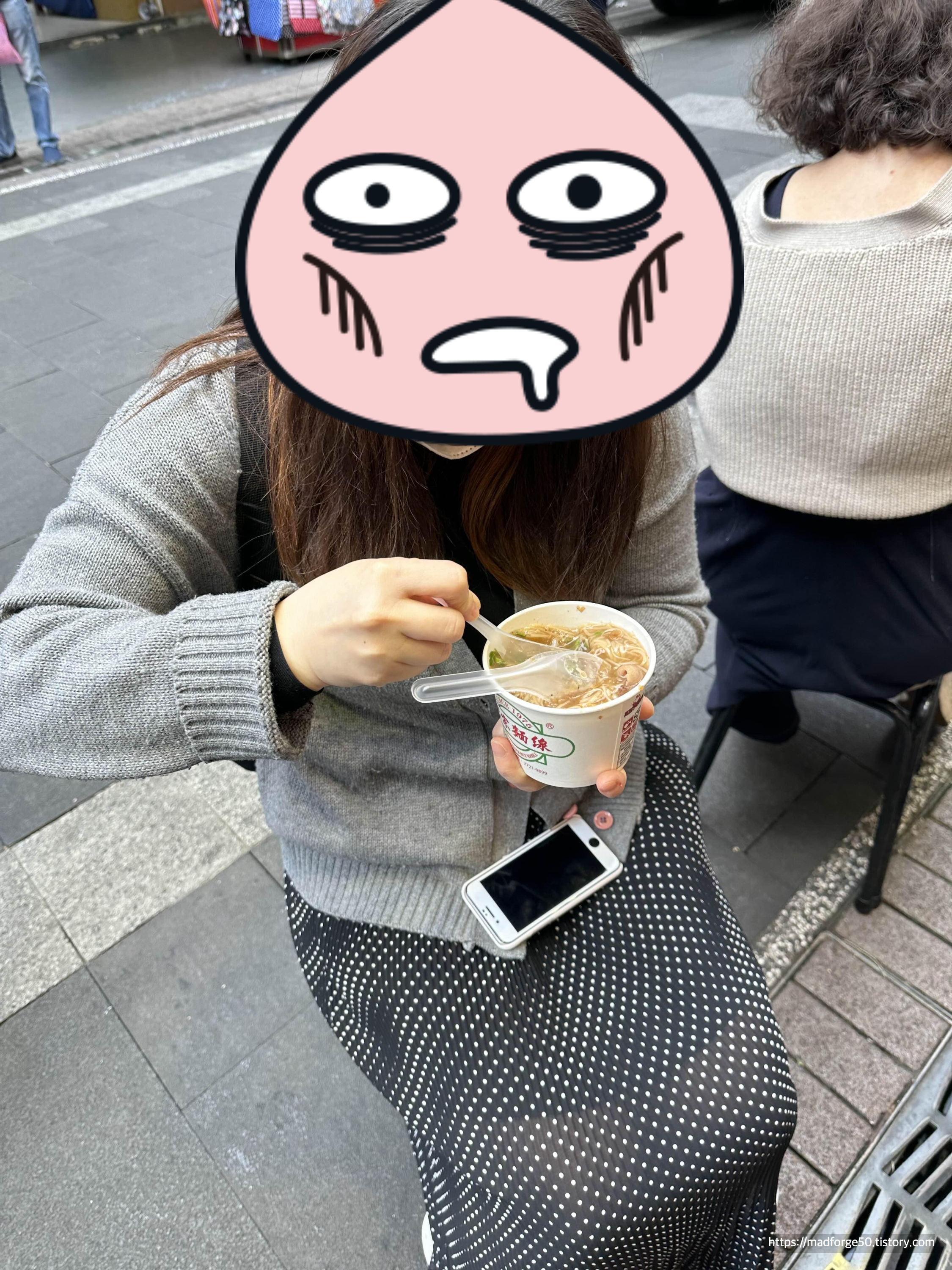 뭐 조금 아쉬운 건 그 근처에 앉는 곳이 있긴 했지만 그냥 매장 앞 길거리에 식탁도 없이 그냥 앉아서 먹는 것이기 때문에 지나다니는 사람들과 눈이 마주쳐 약간 민망하기도 했다. 또한 자리를 잘못 잡으면 바로 하수구 앞이라서 생각보다 깨끗한 곳은 아니라는 생각이 들기도 한다. 그래도 대만에 가면 한 번쯤은 먹어보는 것도 나쁘지 않다는 생각이 들긴 한다. 뭐… 취두부처럼 강한 음식은 아니니까.. ㅋㅋ
