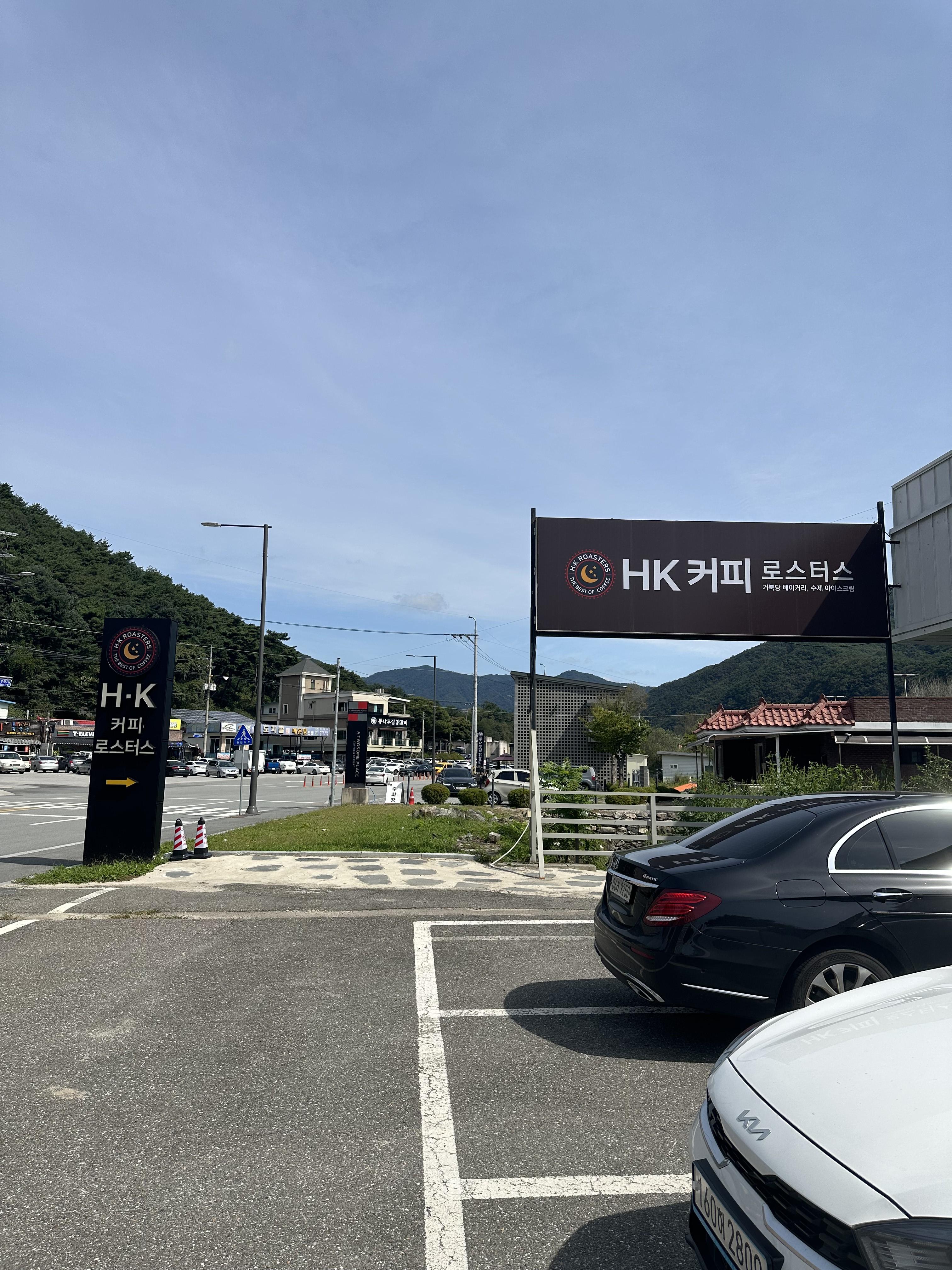 확실히 서울을 조금만 벗어나도 (물론 춘천은 많이 벗어났지만) 매장 자체가 커서 카페 자체가 여유롭다는 느낌이 들곤 한다. 이 HK커피 로스터스도 꽤나 넓은 부지를 쓰고 있다. 물론 엄청난 디자인이 들어간 매장이라기보다는 커피에 진심이라는 슬로건을 걸고 있기 때문에 매장은 디자인적인 요소가 그렇게 많이는 들어가지 않았고 보통 매장과 같다. 사실 매장의 디자인을 보았을 때... 조금 의심이 가긴 했었다. 아 이거 낚였나?