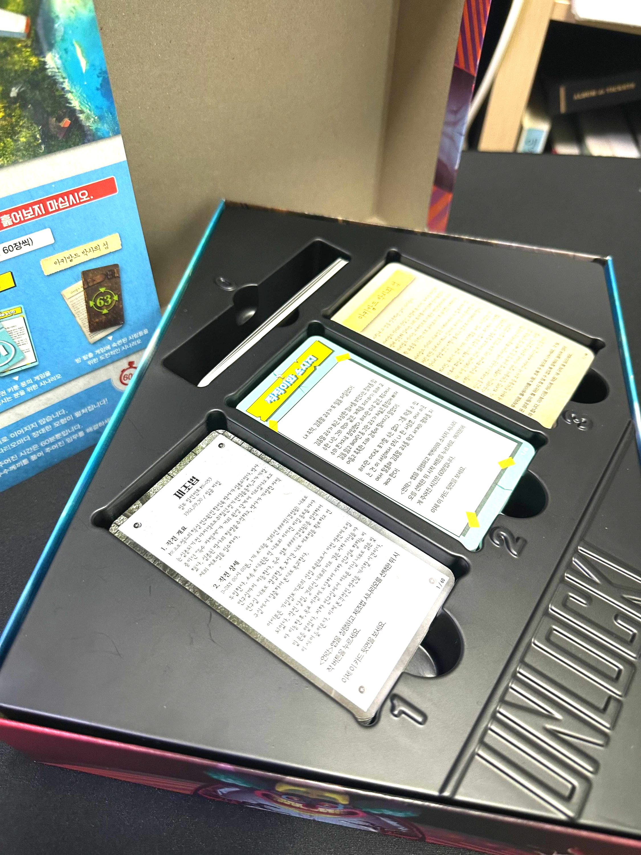 하지만 약 1년 정도 전에 아주 좋은 기회에 만 원대에 탈출 보드게임을 구할 수 있었고 만원 정도면 그래도 하나 사볼 만하다는 생각에 Unlock! 1탄을 구매하게 되었다. 사실은 그전까지 Exit이나 이스케이프룸 같은 게임들을 플레이했을 때 가끔 지시나 퀴즈가 직관적이지 않아서 어려운 경우가 있었고 퍼즐 자체가 어이없는 경우도 많아서 이 게임도 큰 기대를 하지 않았다. (요즘은 거의 보드게임을 플레이하는 것보다 모으는 위주의 취미로 전락해 버렸기 때문에 ㅋㅋ)