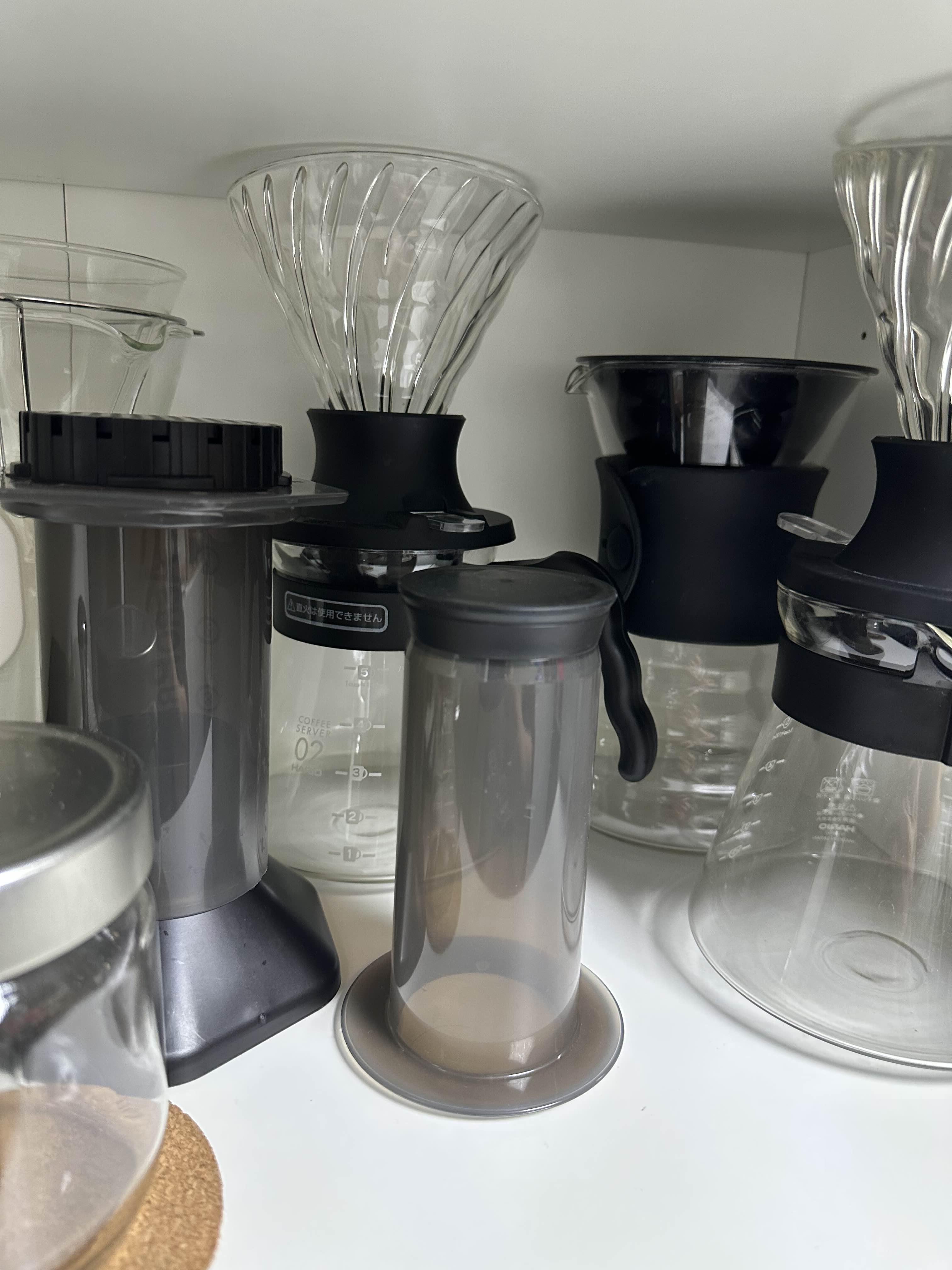 그라인더는 비싸더라도 콤팩트한 게 하나 있다면 여행이나 캠핑을 가서 한 번쯤은 사용해 볼 맘이 들긴 하지만 에스프레소 머신의 경우에는 솔직히 살 생각도 안 해 왔다. 쓸만한 반자동 에스프레소머신을 사기 위해서는 100만 원가량의 돈을 소비해야 하기에 그것과 비교해서는 이 수동머신이 반의 반가격 정도에 구할 수 있기 때문에 그래도 가격적인 면에서 메리트가 있다. 하지만 에스프레소의 경우 압력과 온도, 시간 등 통제를 해야 하는 변수에 너무 많기에 모든 변수를 통제할 수 없는 수동 머신으로는 한계가 극명하다. 그렇기 때문에 이 가격적인 측면도 '굳이 이 가격에 이 정도 기능 밖에 없는데 사야 하나?'라는 생각이 들곤 한다. 그래서 오히려 내 커피 스테이션에는 간단하게 할 수 있는 핸드 드립 용품만 들여놓고 있는 중이었다.