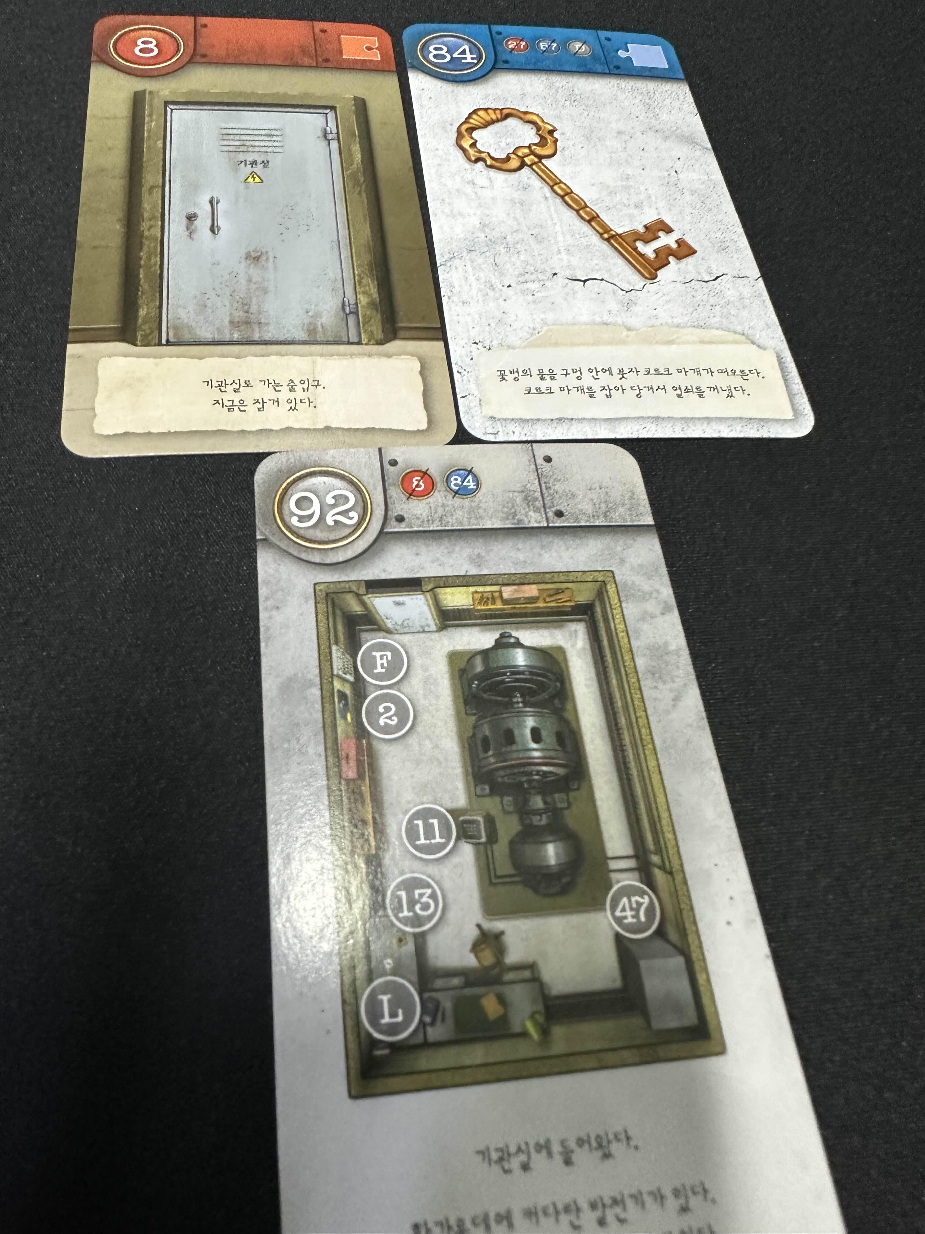 84번 카드로 기관실 문을 열면 92번 카드로 기관실을 열 수 있다.