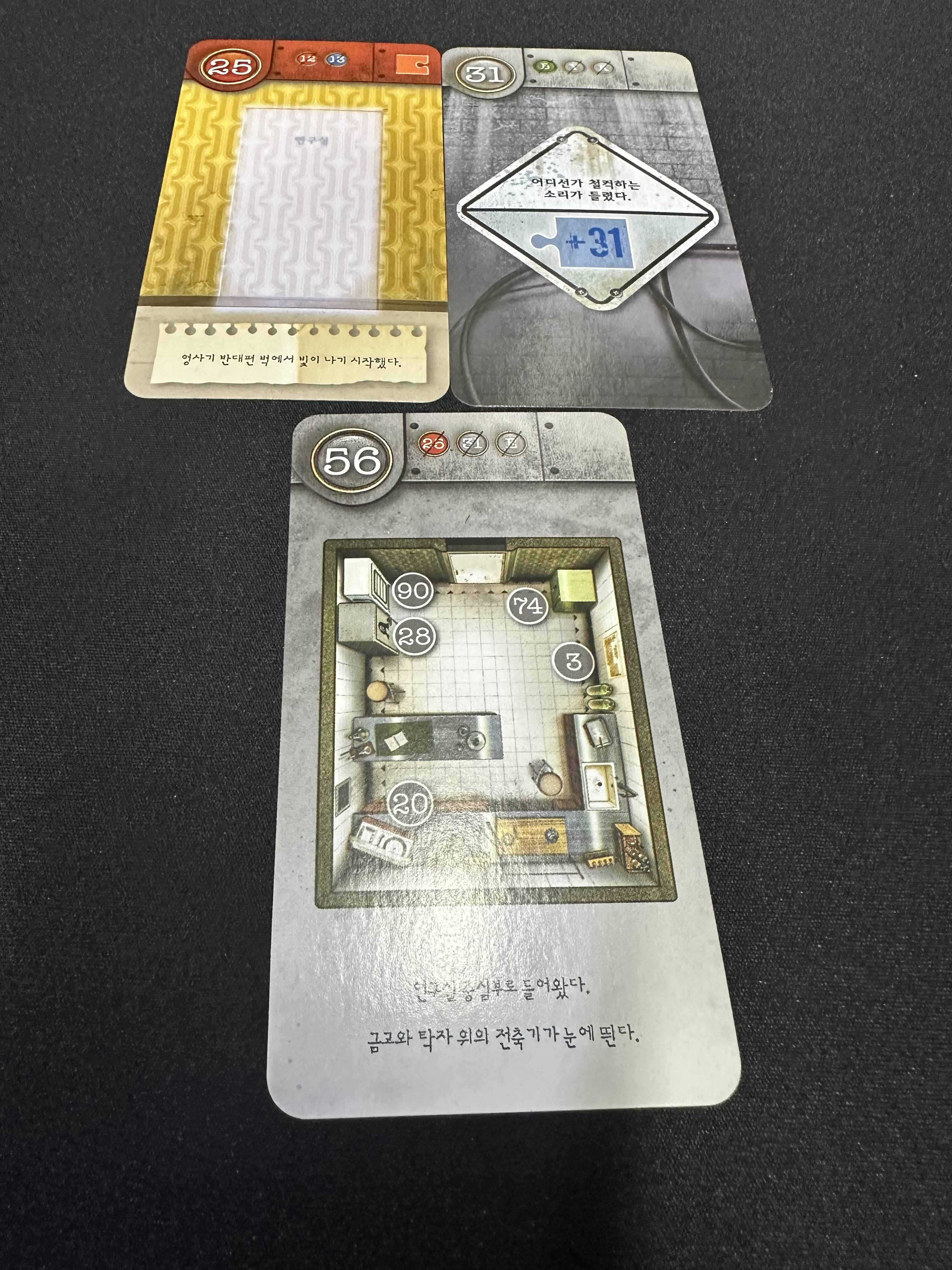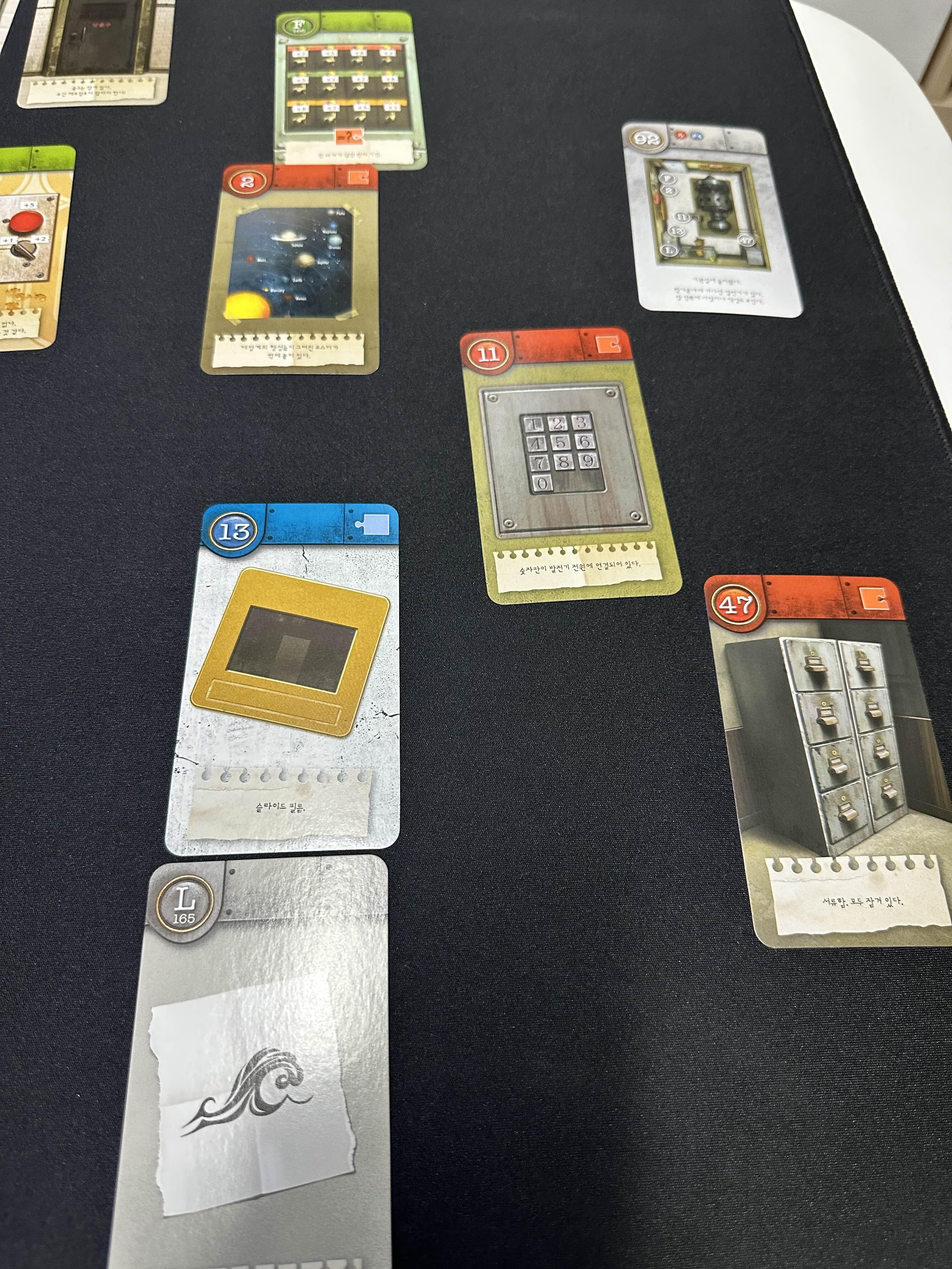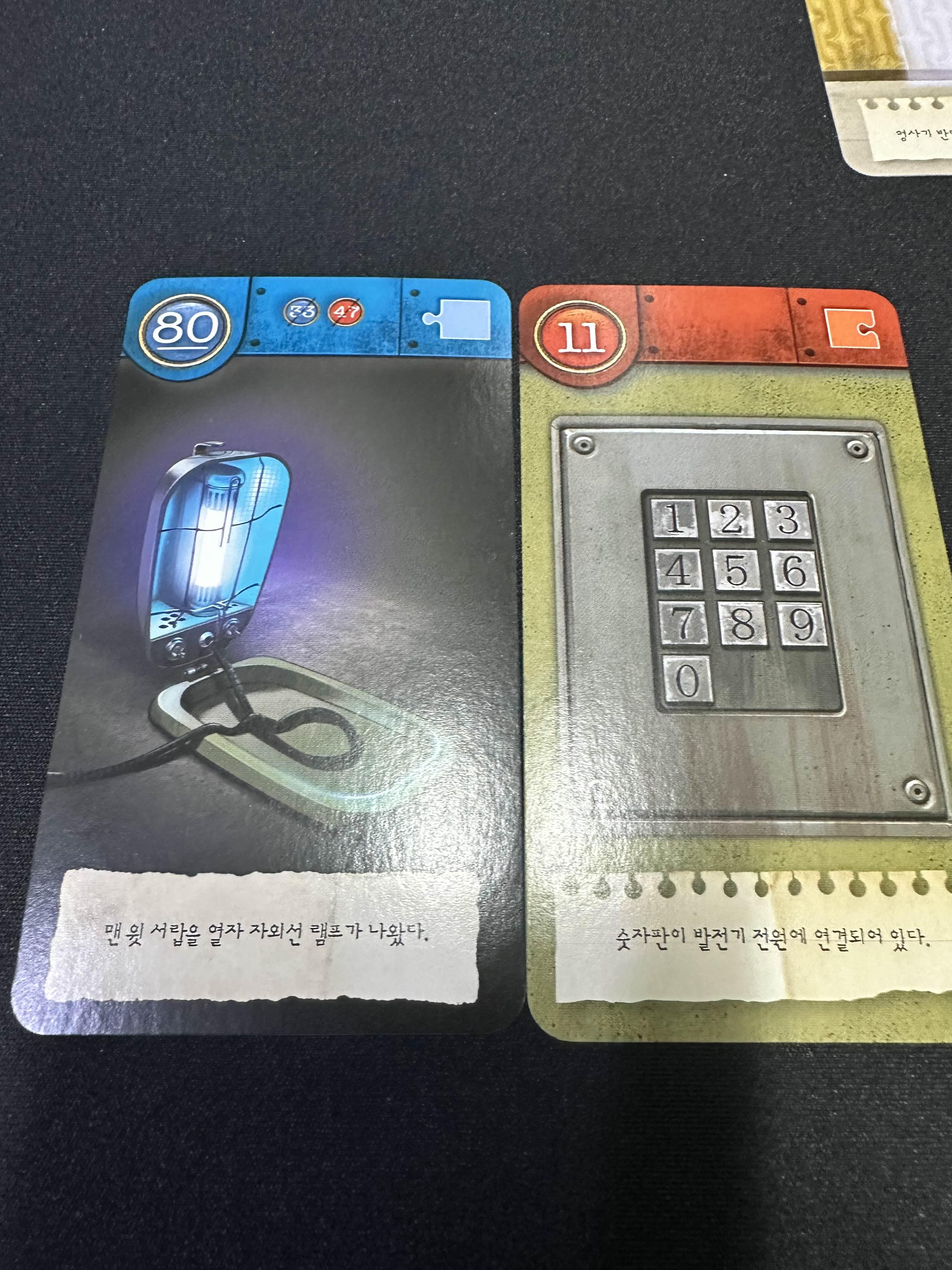 기관실에서 발견된 것들을 가지고 연구실의 카드들과 조합해야 한다.
