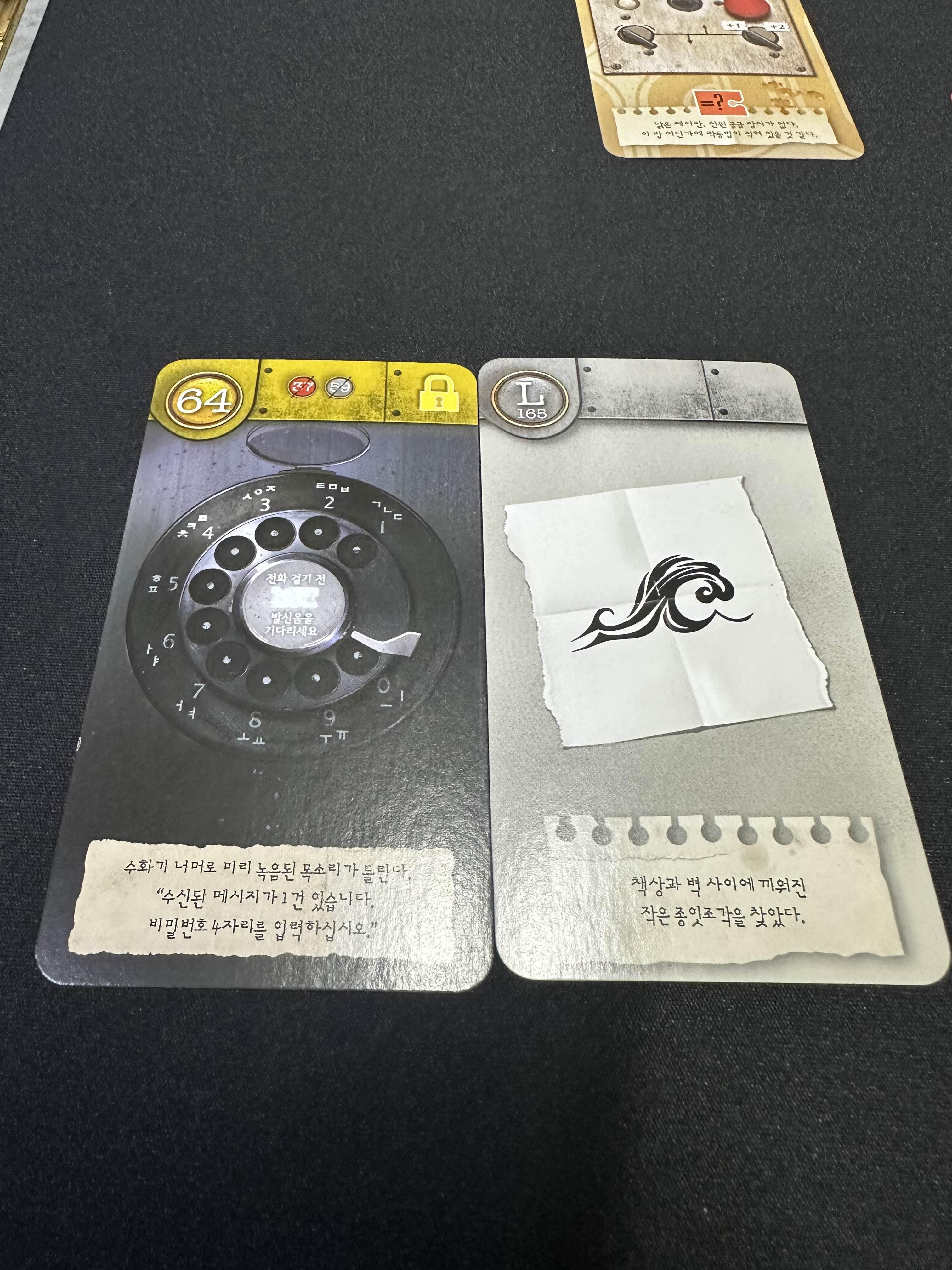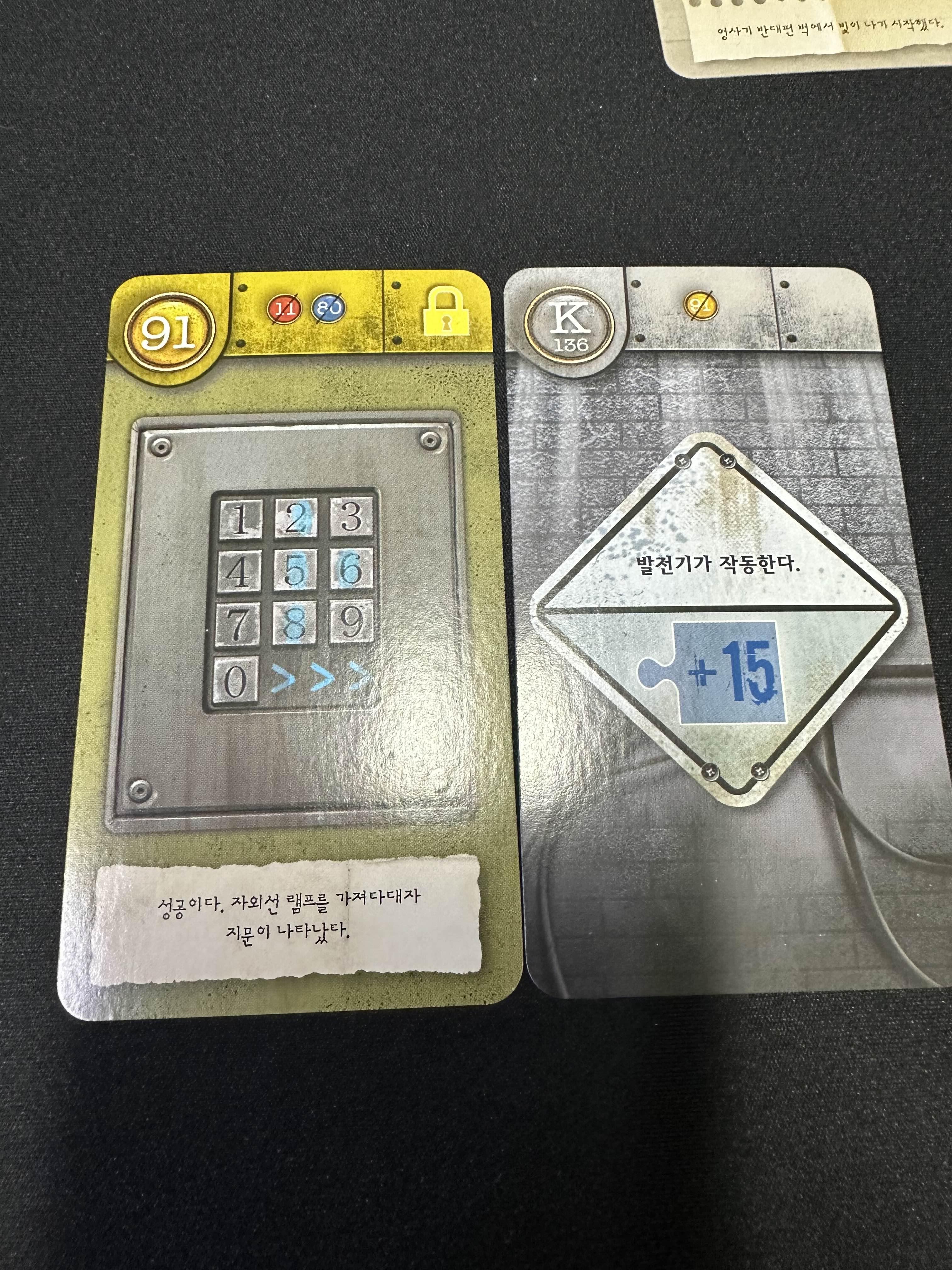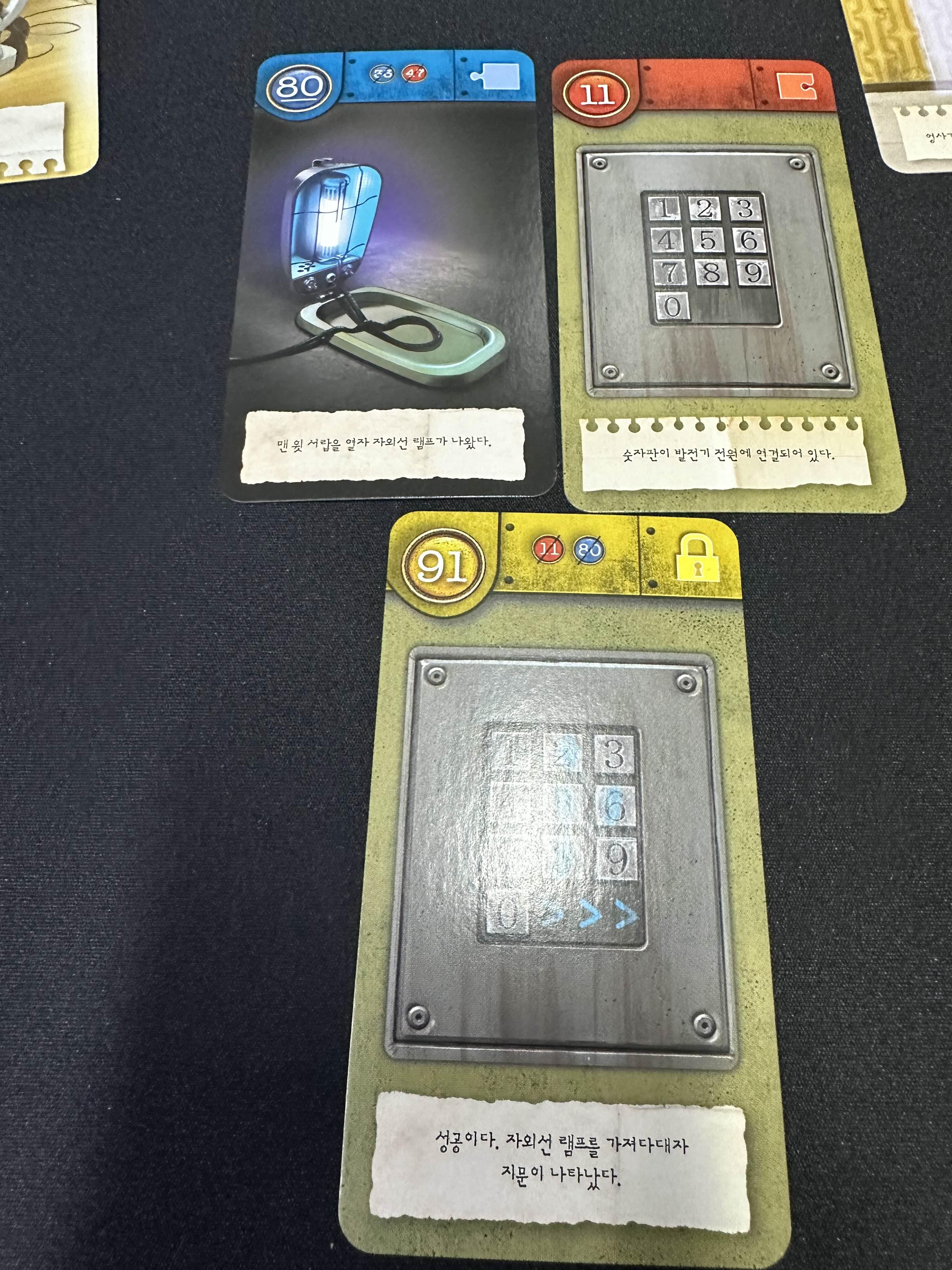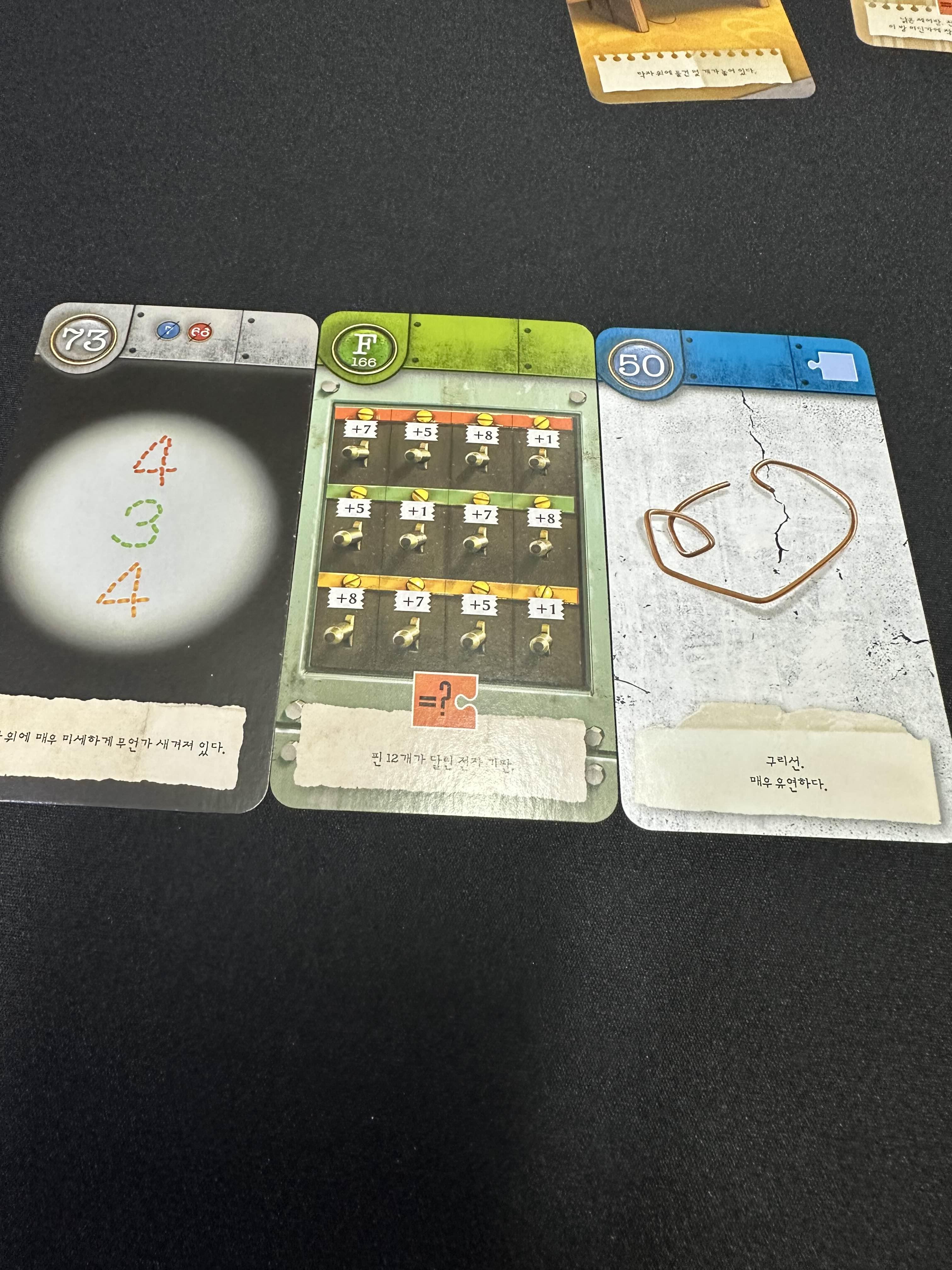 기관실에서 발견된 것들을 가지고 연구실의 카드들과 조합해야 한다.