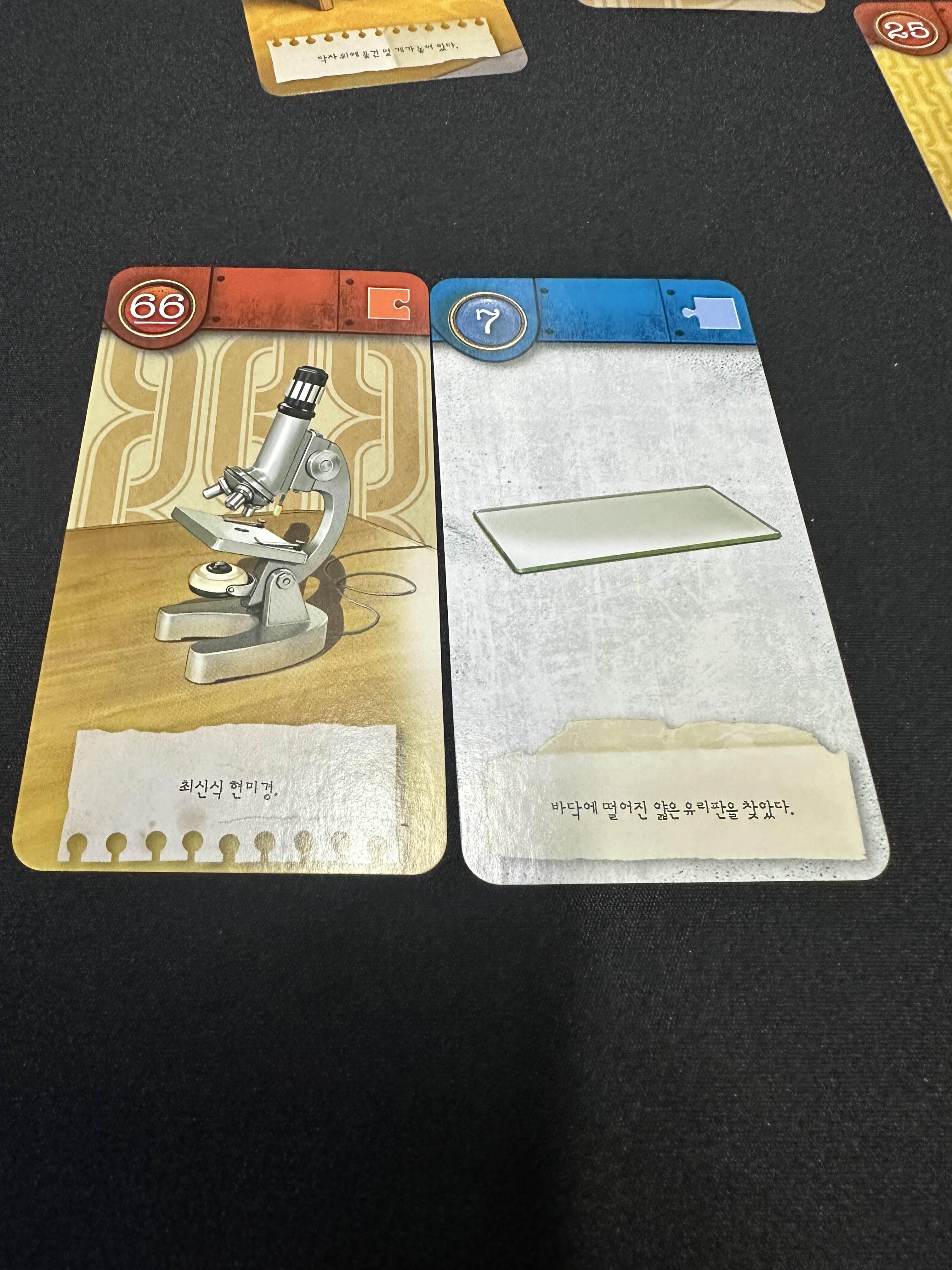 실험실에 있는 66번 카드 현미경과 7번 카드 유리판을 조합하여
