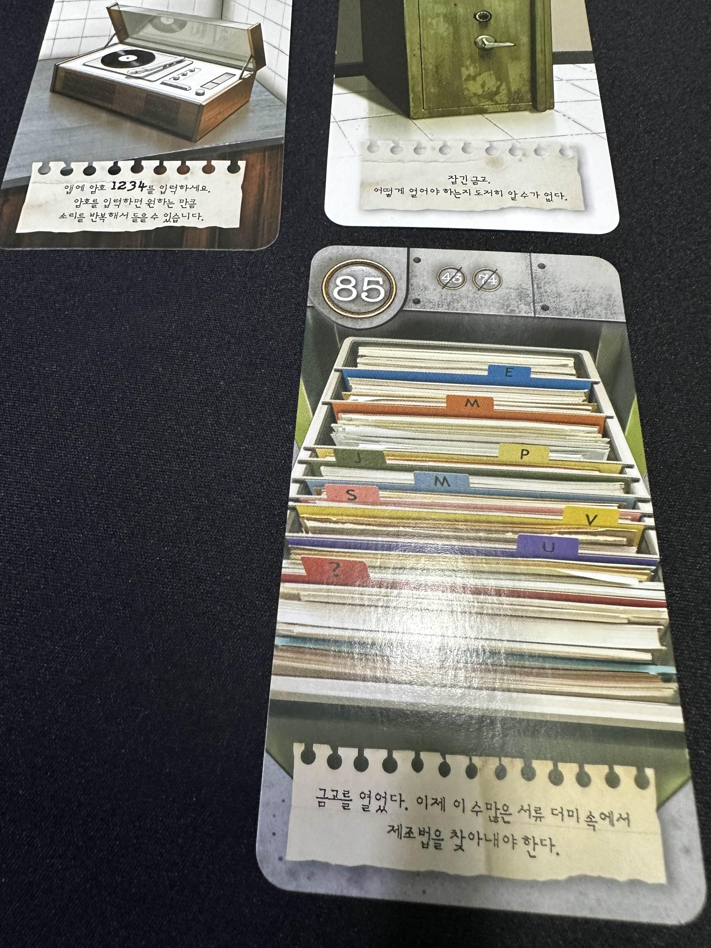 전축기에서 나온 11을 더해하면 85번의 카드로 서류더미를 찾을 수 있음