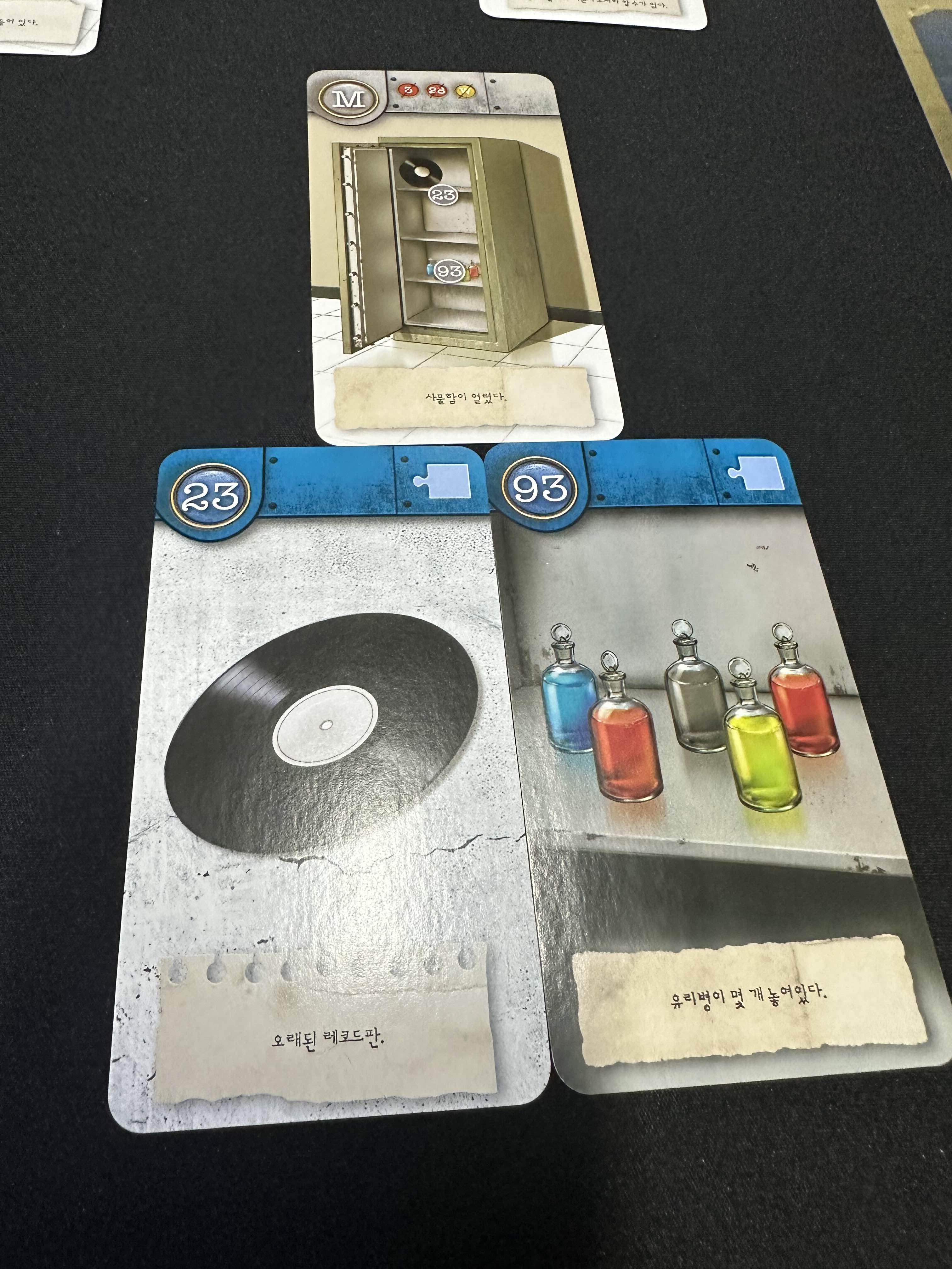M카드에는 23번 레코드판과 93번의 병들을 구할 수 있다.