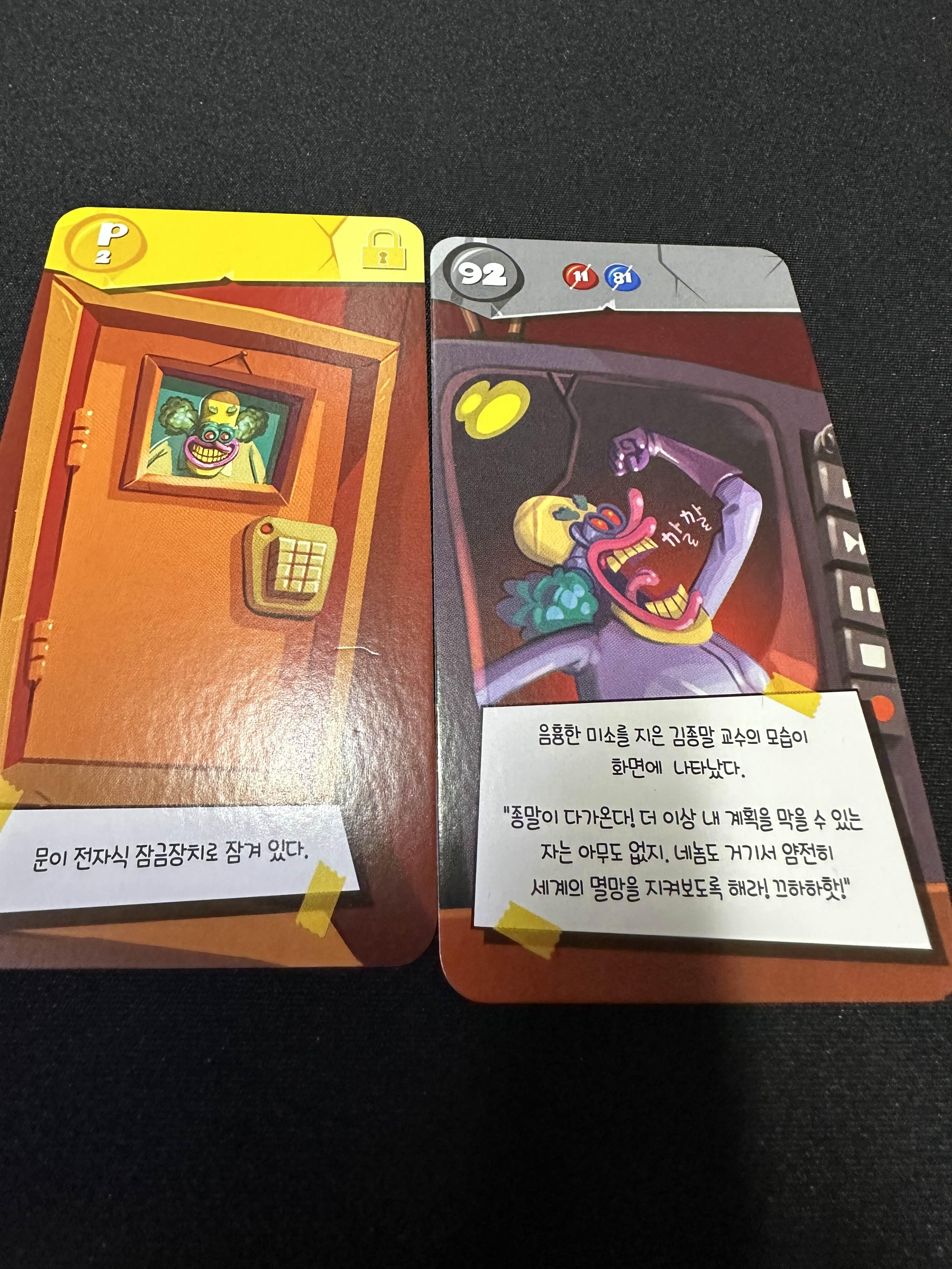 92번 카드에서 김종말 교수가 웃고 있는데 웃는 김종말 교수를 잘 봐야 한다.
