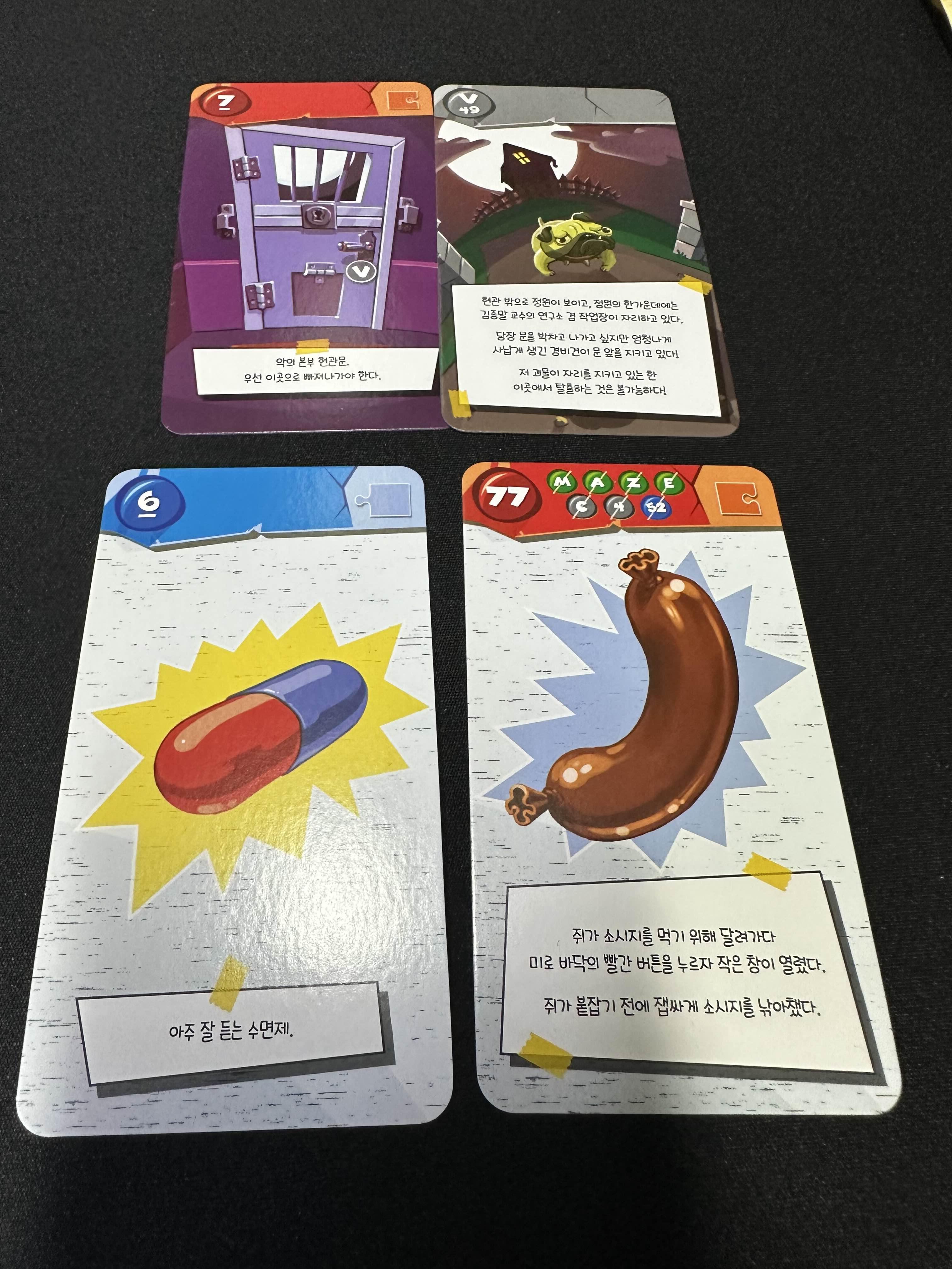 A, E, M, Z카드를 순서대로 (M, A, E, Z) 놓으면 미로가 완성이 된다.