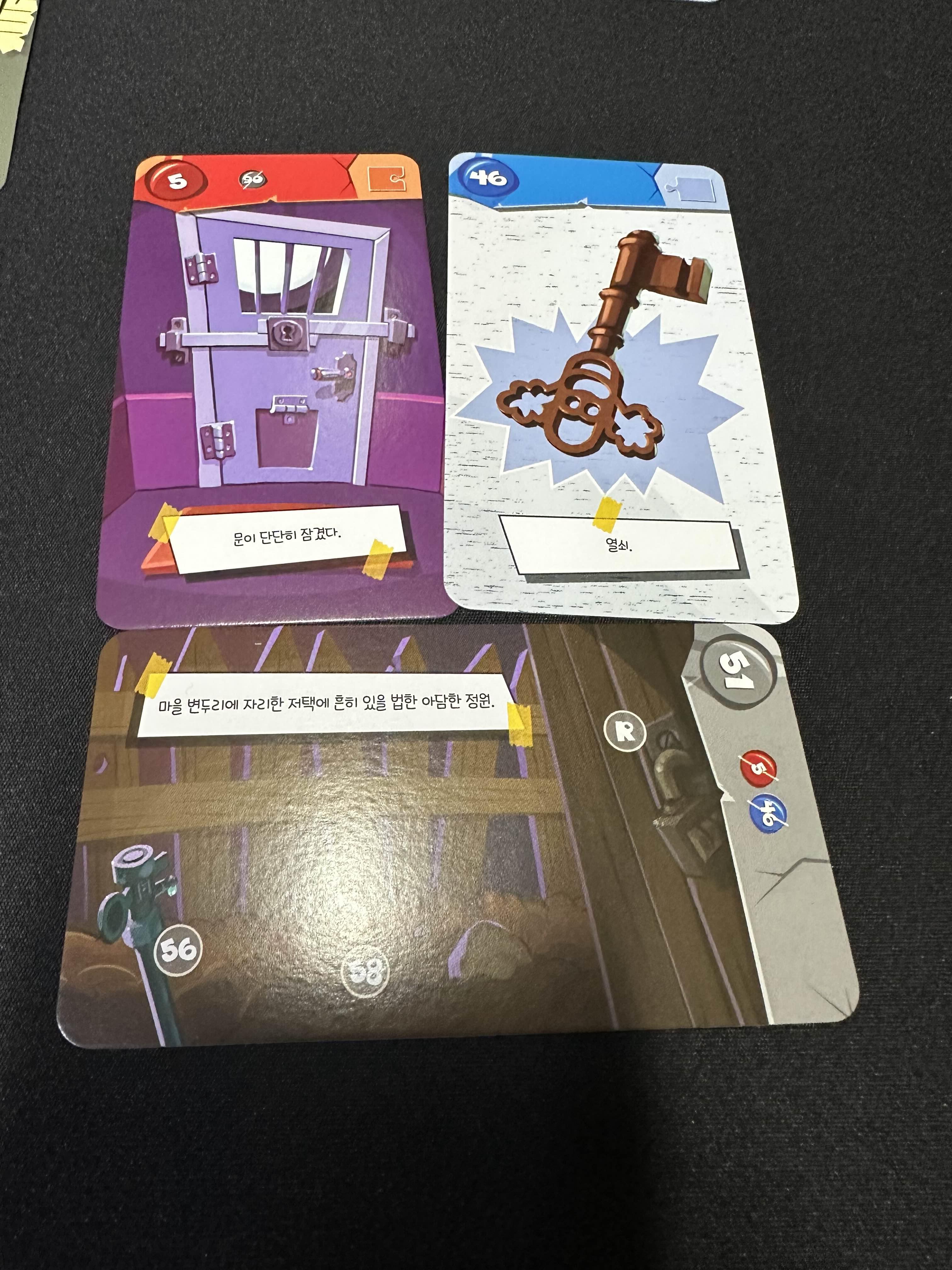 46번 카드를 열어보면 키를 얻을 수 있고 5번 문과 합치면 51번의 정원 카드를 얻을 수 있다.