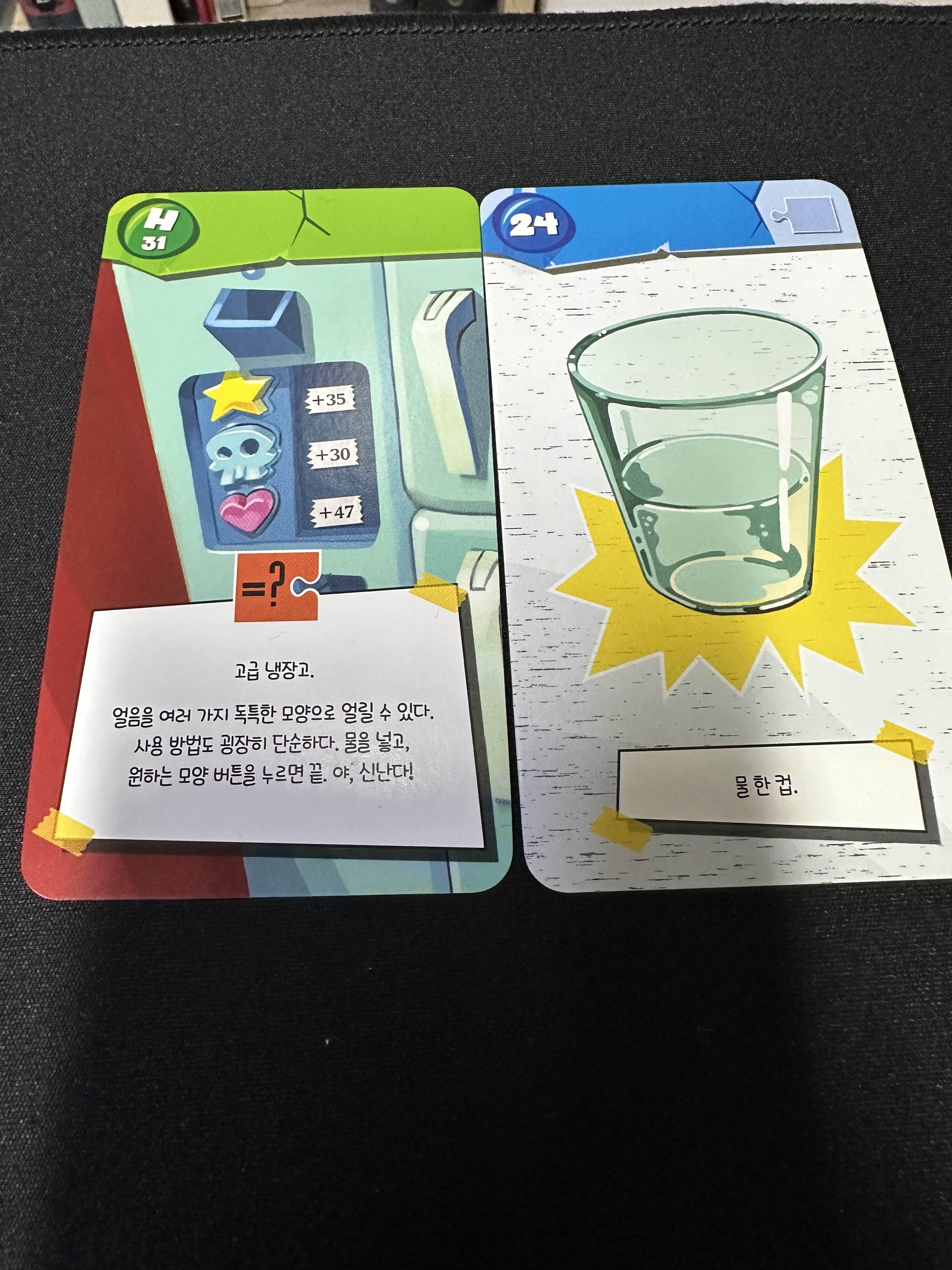 해골모양은 +30, 물 한 컵 24번 = 54번 카드 (해골모양 얼음)
