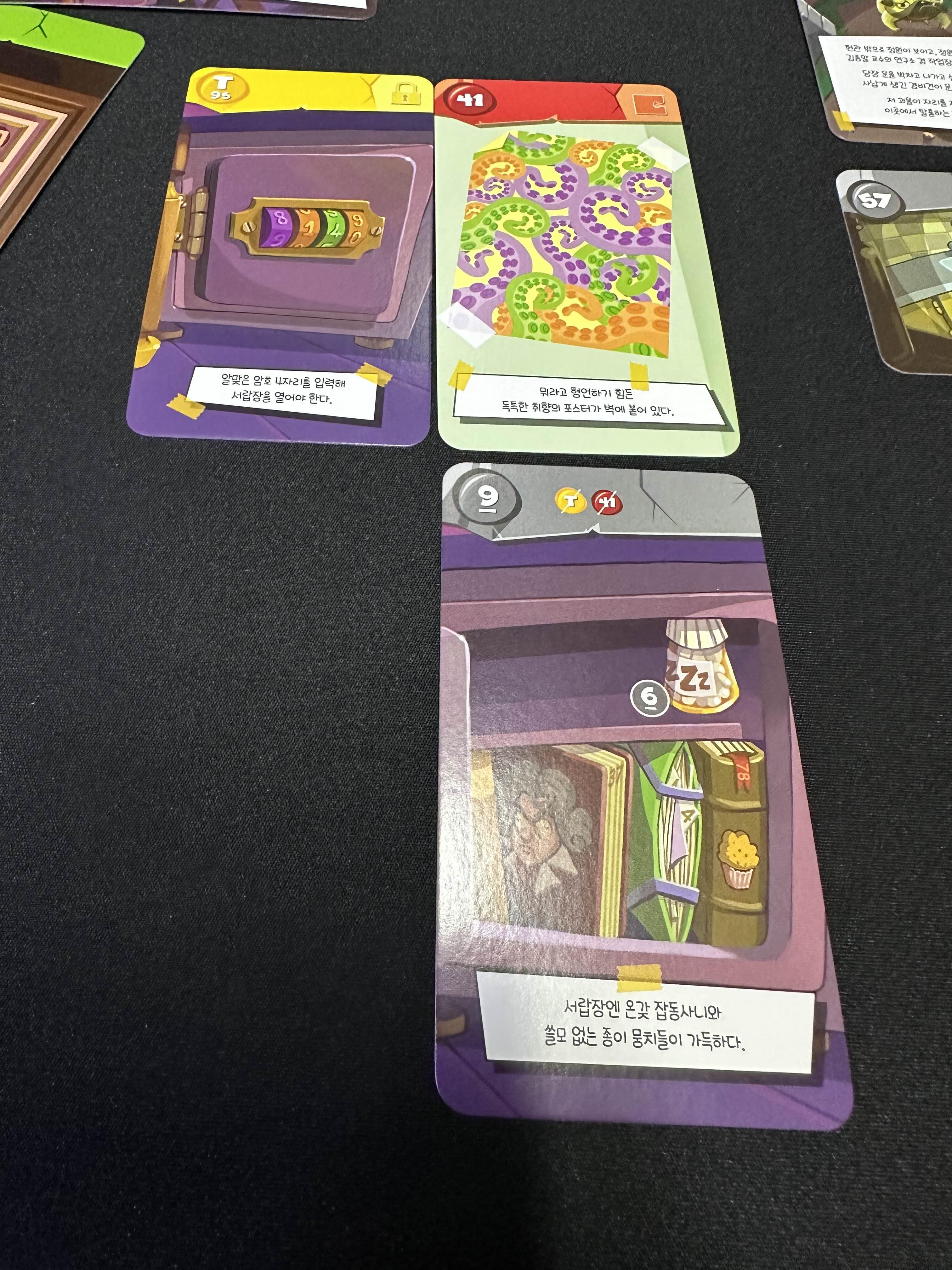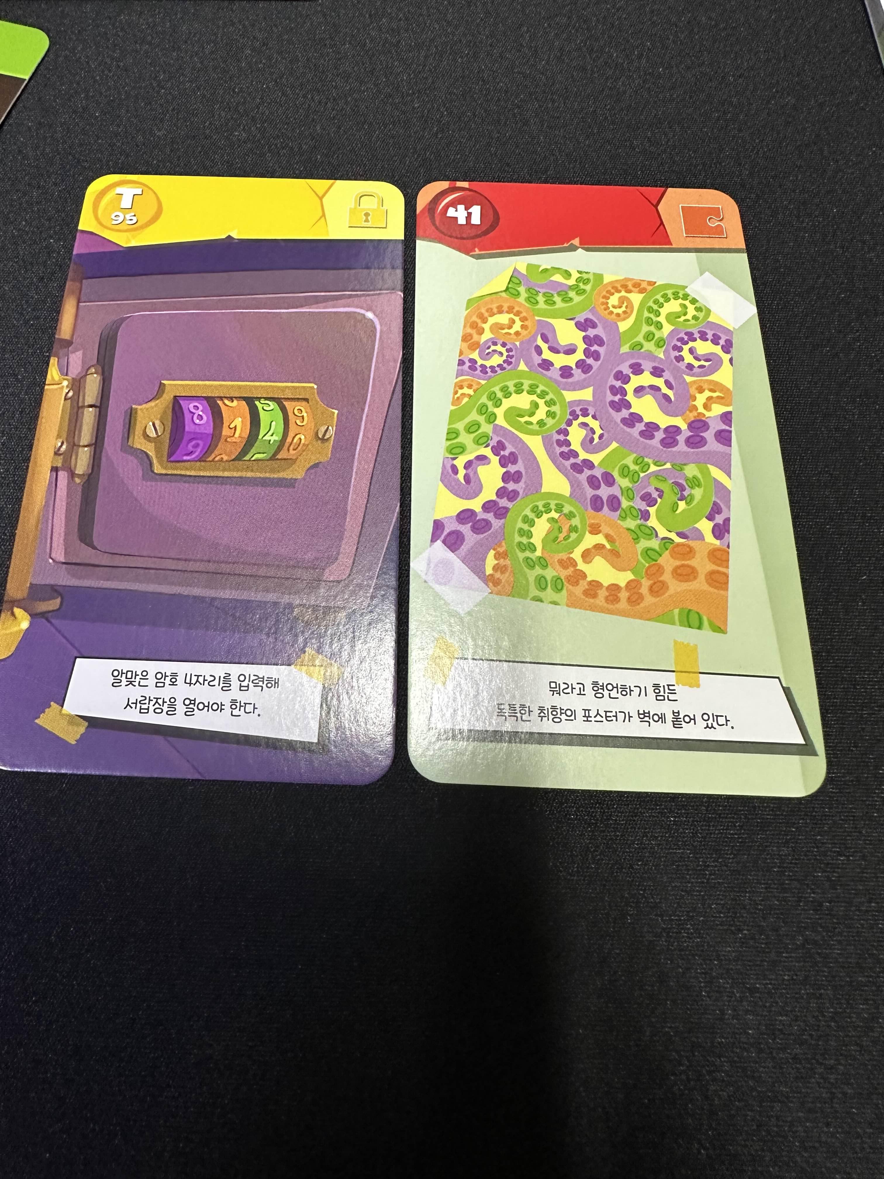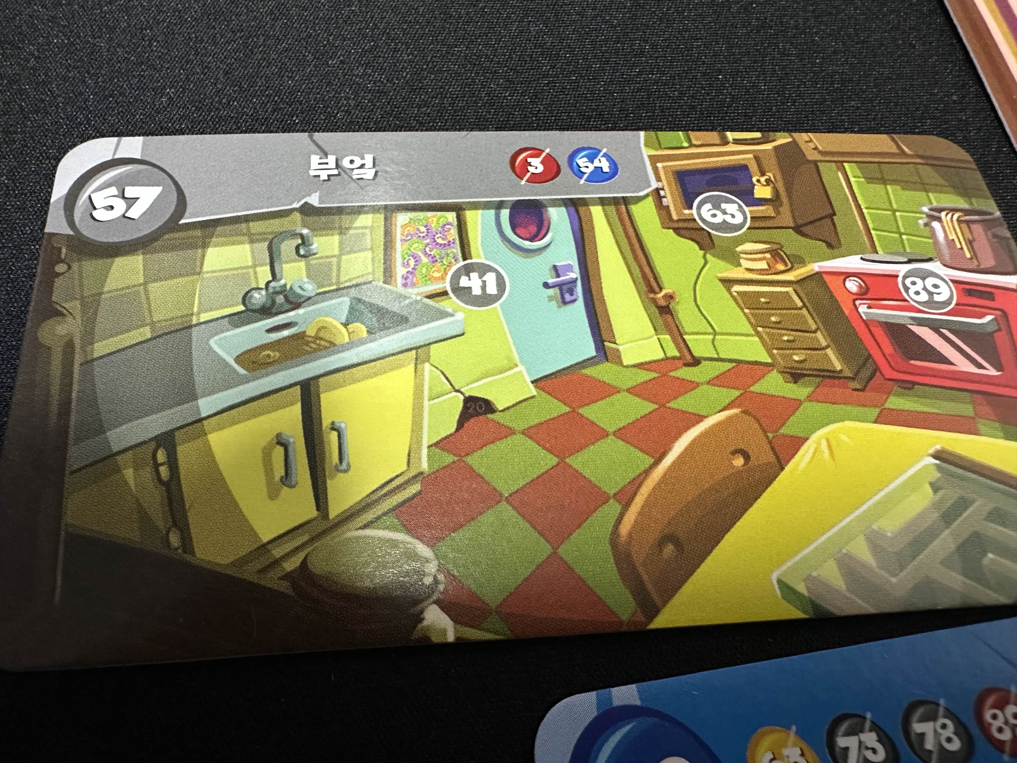부엌의 41번 카드를 보면 문어다리가 있는데 문어다리의 색이 보라, 주황, 초록인 것을 알 수 있다.