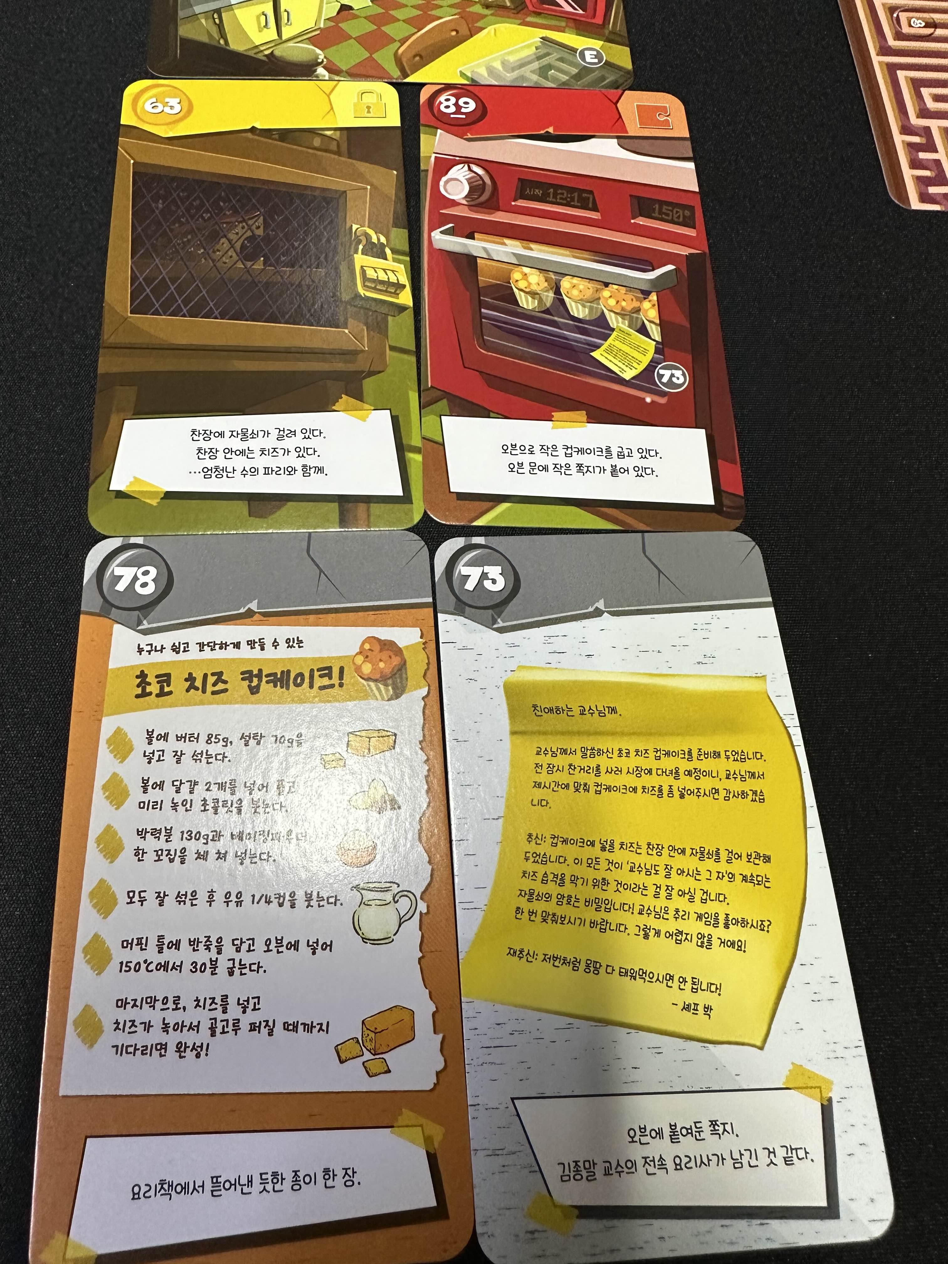 89번의 오븐에 붙어있는 요리사의 쪽지에서 치즈가 있는 찬장의 자물쇠를 풀 수 있는 암호의 힌트가 있는데