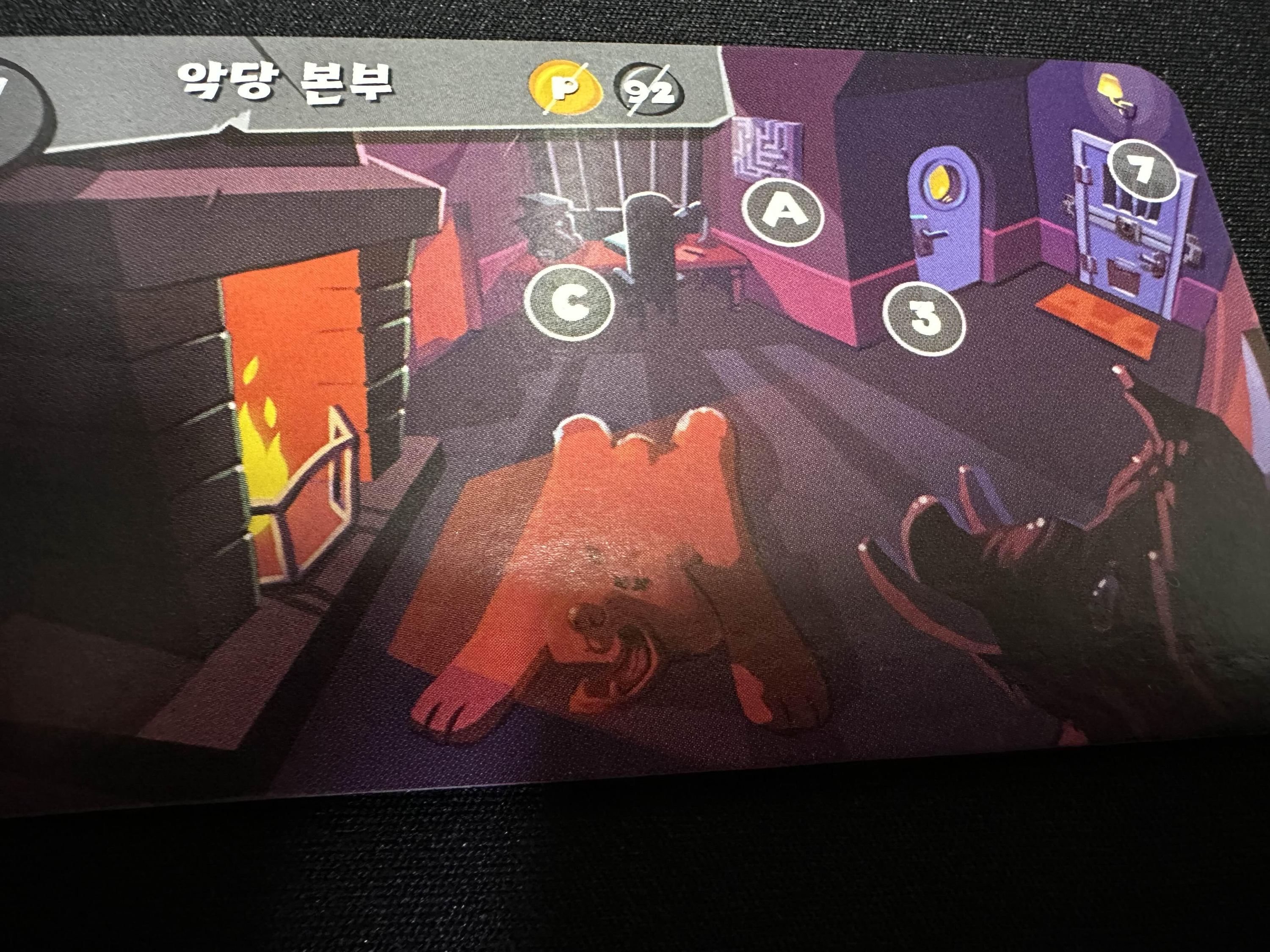 부엌의 쥐구멍을 잘 살펴보면 20이라고 적혀 있는데 20 카드를 뒤집으면 쥐구멍 안에 쥐가 있는 걸 확인할 수 있다.