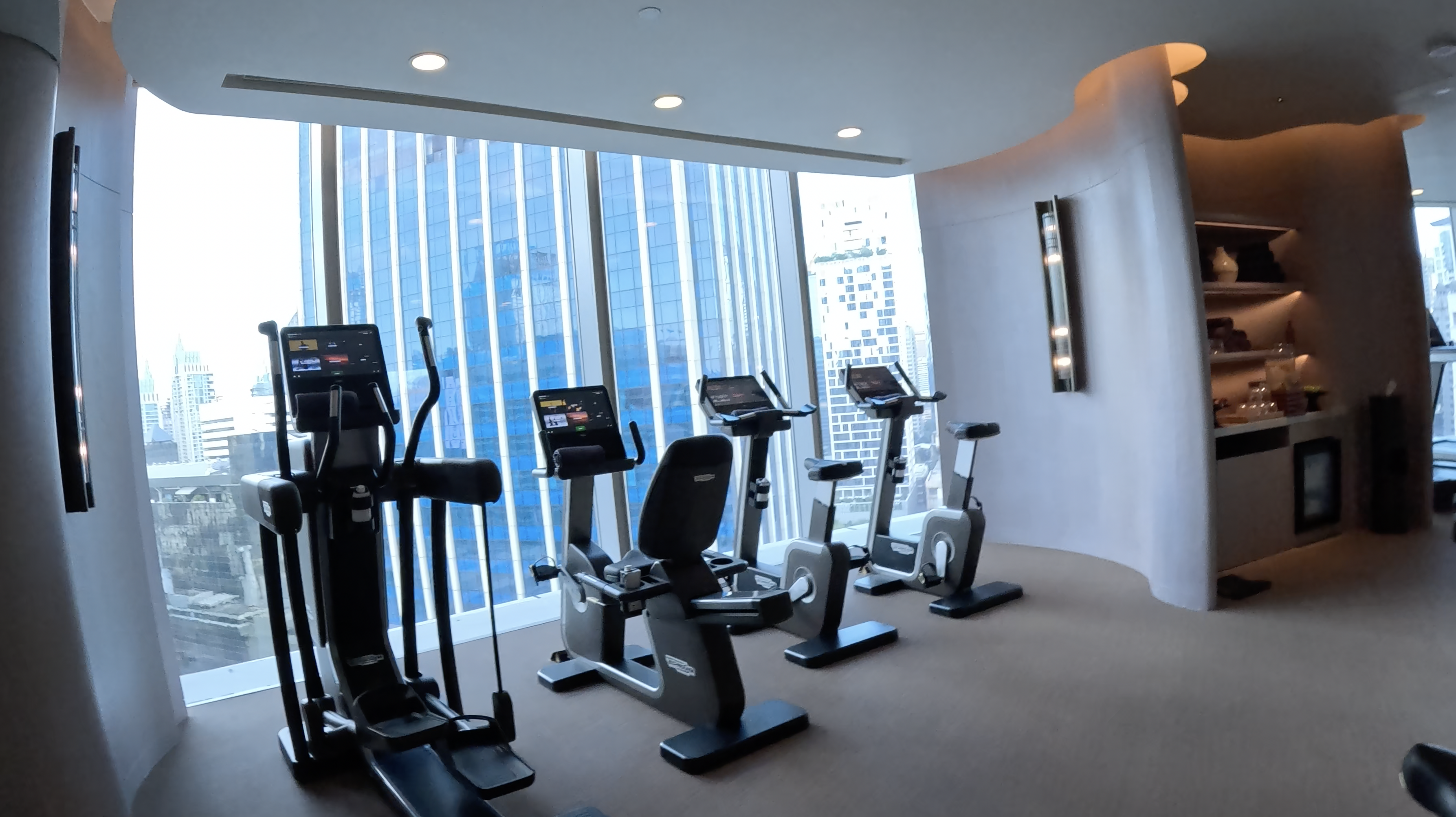 우리 부부는 호텔에서 아침에 운동을 하는 걸 좋아하는데 주로 조식을 먹기 전 짐에 방문해 운동을 한다. 월도프 헬스장은 테크노 짐의 케이블로 된 운동 기구가 있고, 그 반대편의 바벨들이 있어 바벨 운동들도 가능하다. 하지만 바벨이 얼마 없기도 하고 장소가 아주 협소한데 한 두 명 들어가면 더 이상 들어갈 수 없는 정도의 크기였다.