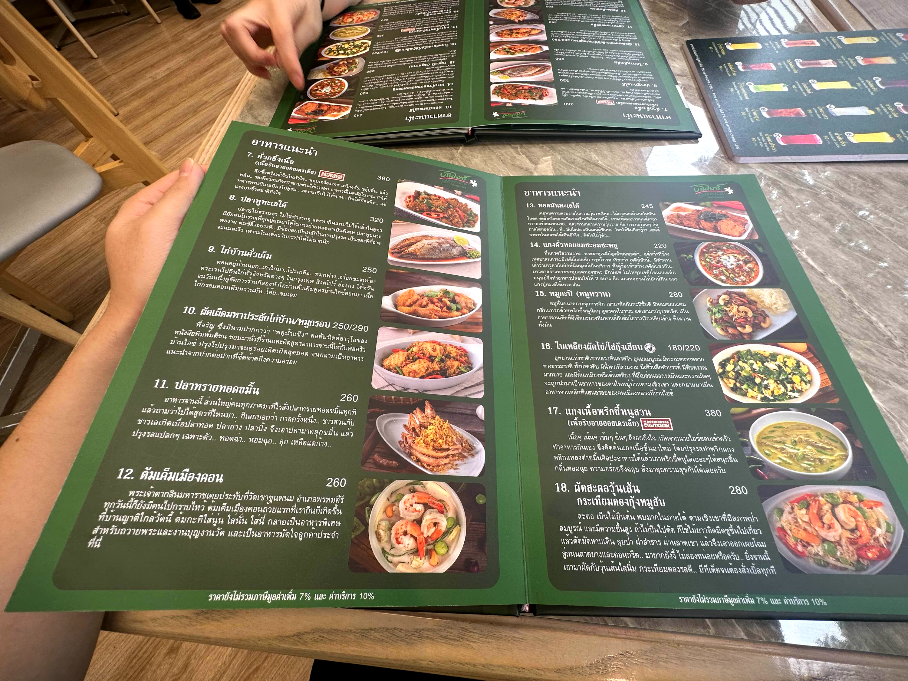 태국 남부 음식이다 보니 아는 것은 매운맛의 카레가 기본인 음식이 많다는 정도이다. 태국에 지낸 기간 동안 사실 남부 음식을 한, 두 번 정도밖에 먹지 못했고 그것도 남부 음식을 주로 하는 음식점보다는 일반 매장에서 하는 남부 음식일 뿐이었다. 그래서 구글 번역기를 돌려가며 메뉴를 읽던 중 종업원이 태국 메뉴판을 못 읽는 걸 깨달았는지 영어 메뉴판을 새로 가져다주었다. ㅋㅋ