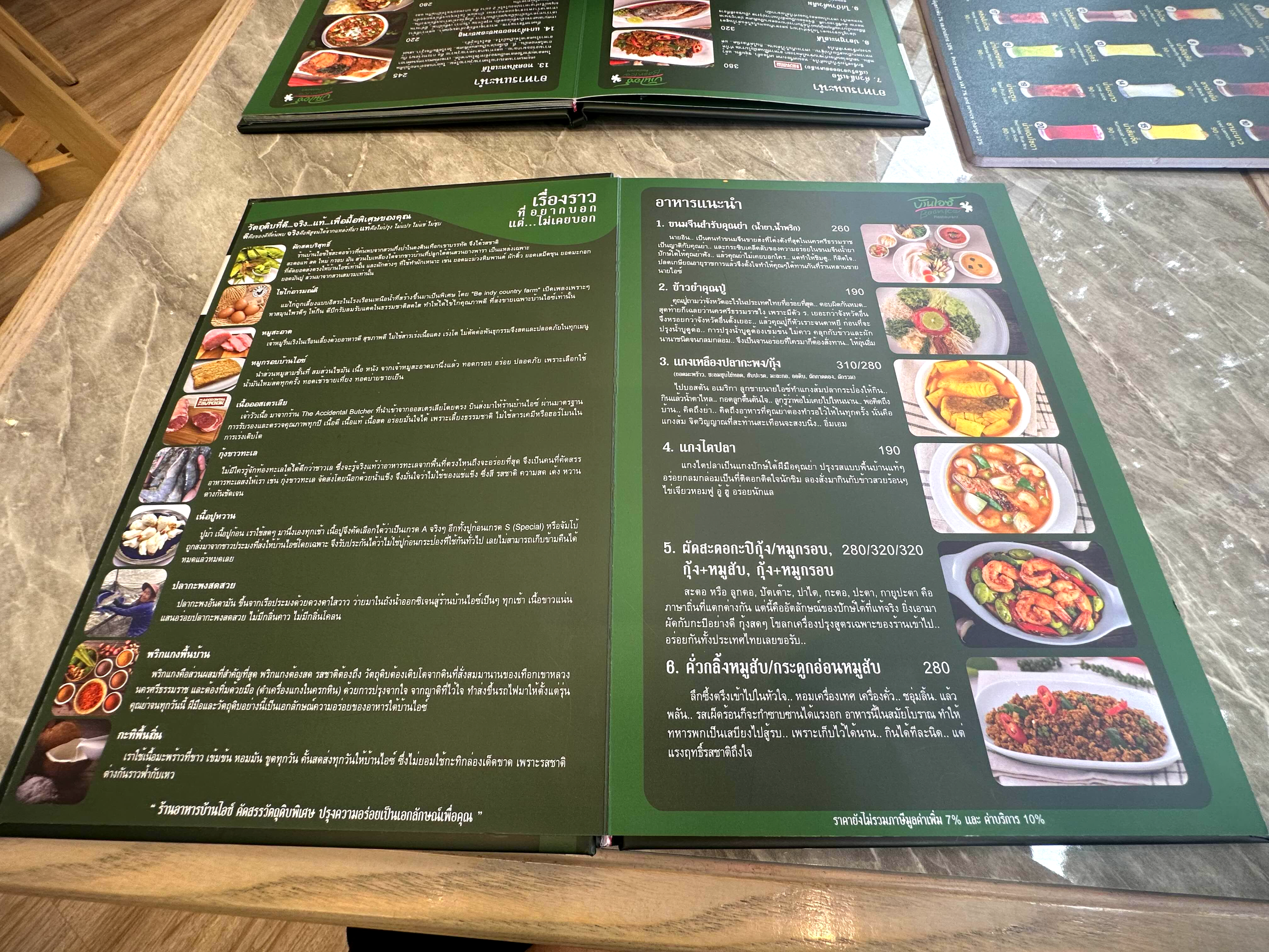 뭐 듣기로는 이 Baan Ice는 할머니의 레시피를 가지고 손녀인 Ice가 음식점을 하는 것으로 Ice의 집으로 놀러 가 음식을 사 먹는다는 스토리를 가지고 있다. 이는 메뉴판 처음에 간략하게 쓰여있는데, 영어 메뉴판이 있으니 흥미가 있다면 읽어봐도 좋을 것 같다.