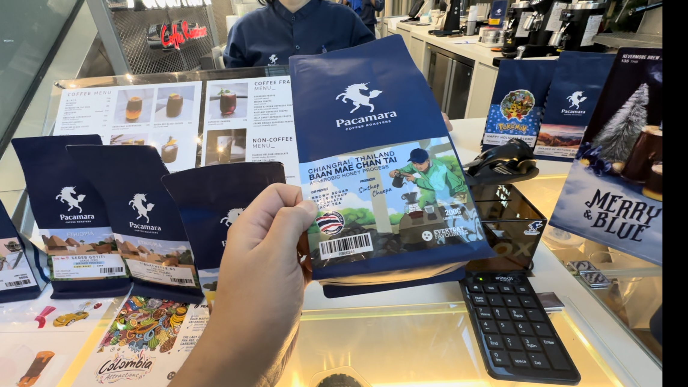 저번 포스팅에서 이야기했듯이 커피 산지에 갔는데 다른 나라의 먹어본 커피보다는 산지 커피를 먹는 게 좋다는 생각을 했기에 이 매장에서도 고를 수 있는 태국 커피를 골랐다. 유일하게 하나의 싱글오리진만 태국 산지 커피였다. Baan Mea Chan Tai로 치앙라이 지역에서 난 무산소 허니 프로세스를 거친 커피였다. 신기하게 Roots와 Pacamara에서 태국 원두의 종류를 물어봤는데 모두 원두의 종류를 알지 못했다.