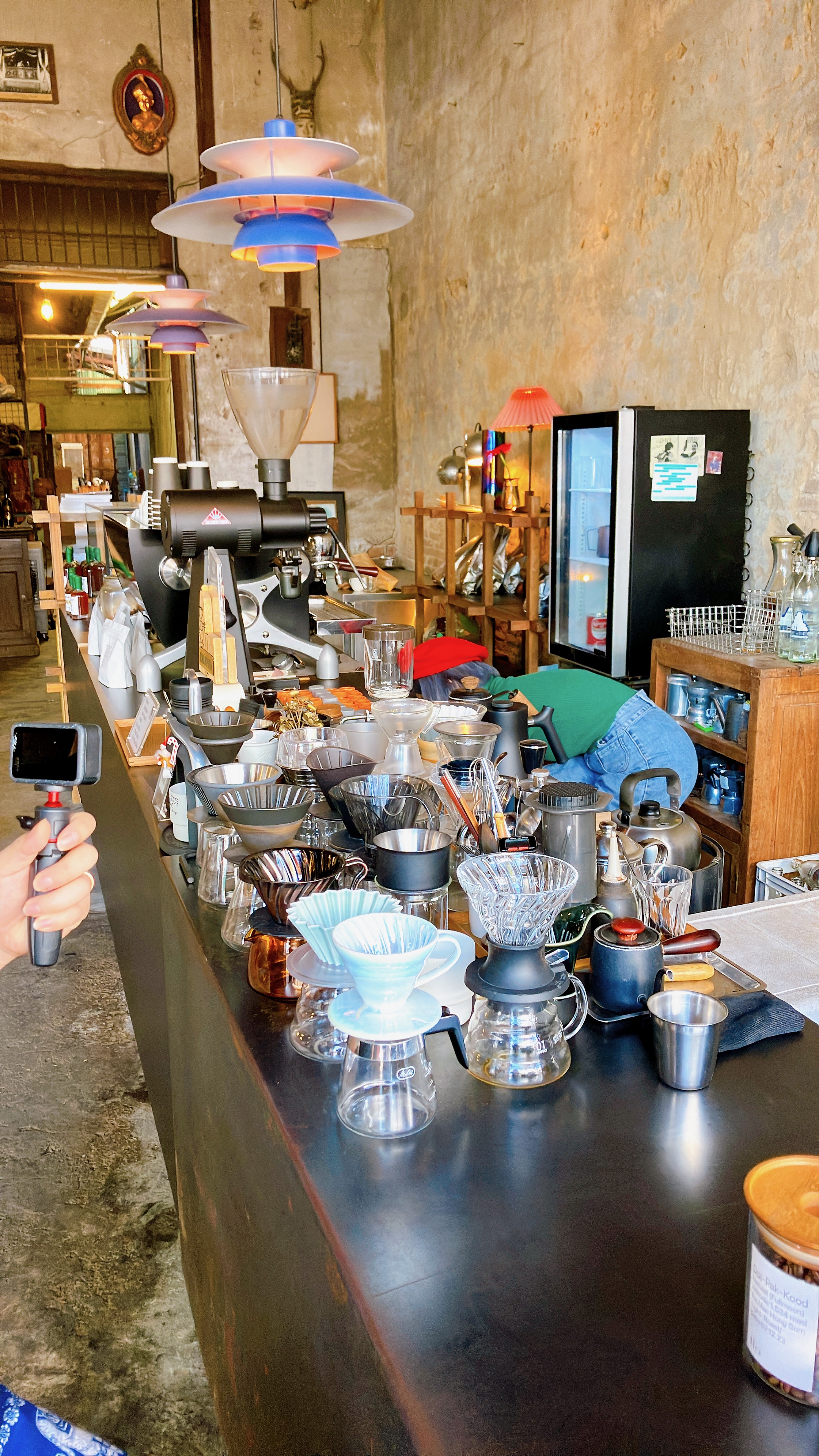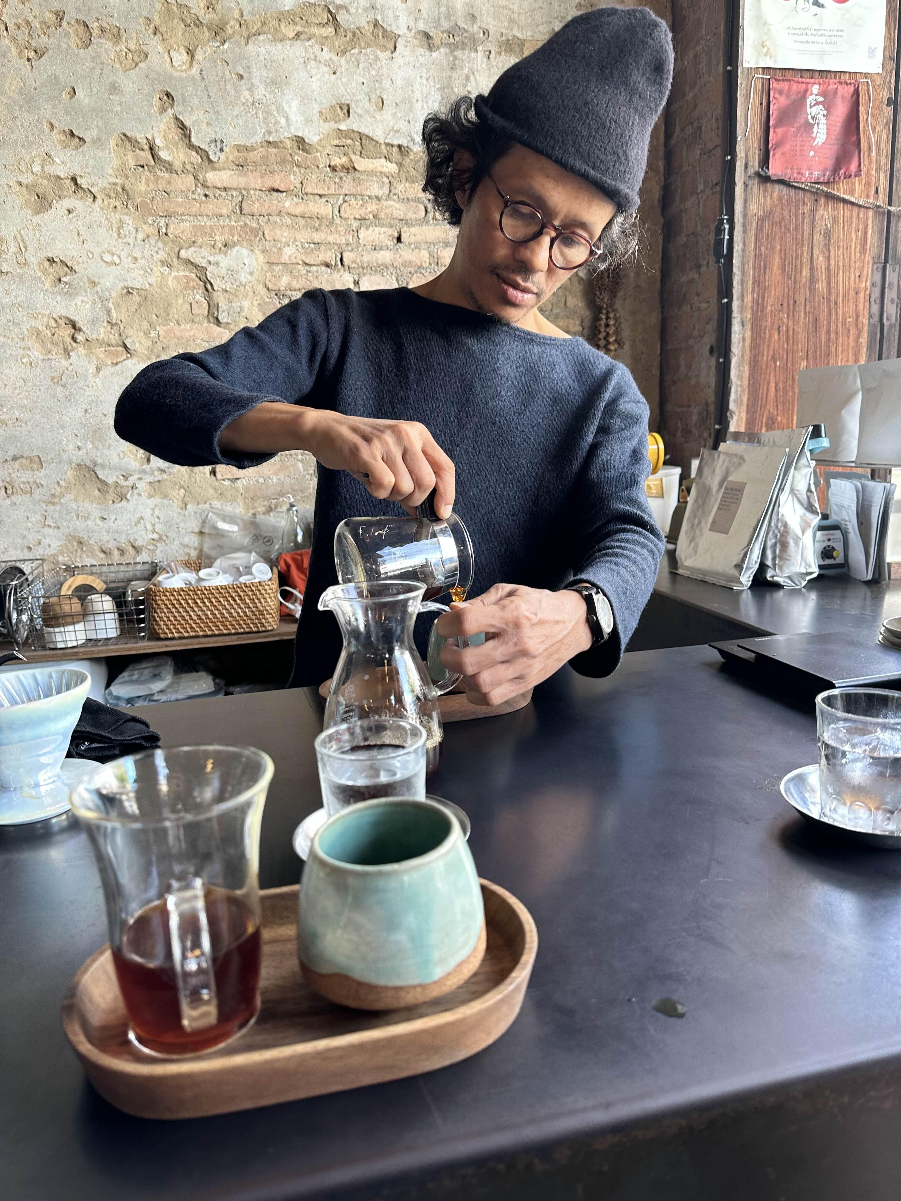 브루잉 바에 보면 굉장히 여러 가지 기물들이 있었다. 하리오 스위치, 칼리타, 에어로 프레스, 그리고 한국의 디셈버 드립퍼도 존재했다. 나중에 사장님과 이야기에서 한국에서 들여온 것이라며 디셈버를 소개했지만, 동시에 너무 바디감이 약하게 되어서 선호하지 않는다고 이야기했다. 사장님이 여기 있는 기물을 모두 사용을 하시지는 않는 듯했다. 주로 필터는 V60로 하였고 나중에 레시피를 물어봤을 때에도 V60로 내리라고 이야기를 해 주었다.