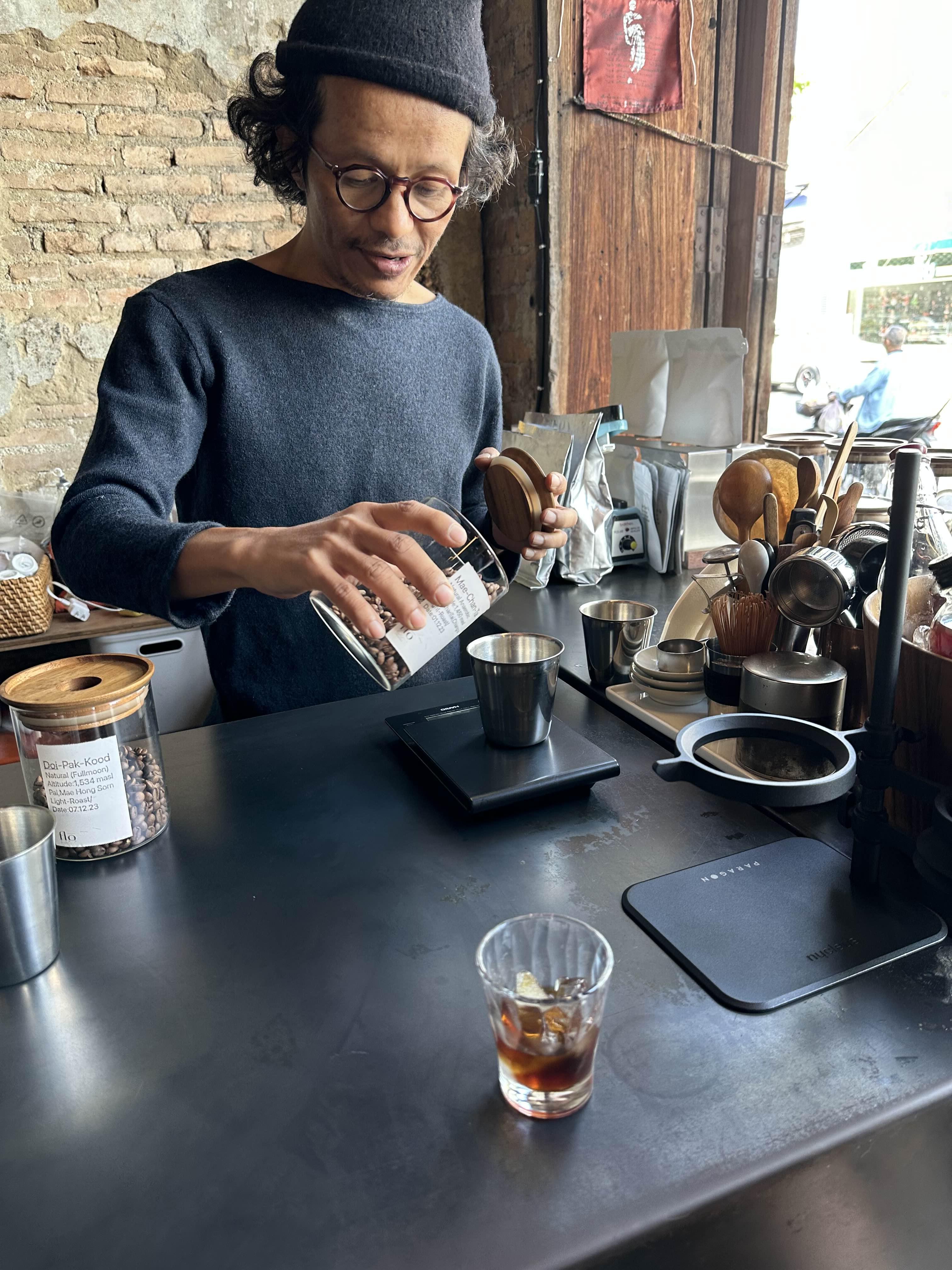 원두는 조금 거친 상태로 그라인딩을 하는 것 같은데 태국의 커피의 특징 때문에 그런 것 같다는 생각이 든다. 커피 자체의 바디감이 좀 떨어지는데 그렇다고 그라인딩을 곱게 가져가 버리면 쓴맛이 많이 올라오고 신맛이 튀어버리는 경향이 있어 필터로 내리기에 좀 어렵다고 할 수 있다. 이는 에스프레소를 내릴 때 더 도드라지는데 가끔 칼 같은 산미가 치고 올라와서 힘들고 단맛이 적어 밸런스가 깨져 버리게 된다.