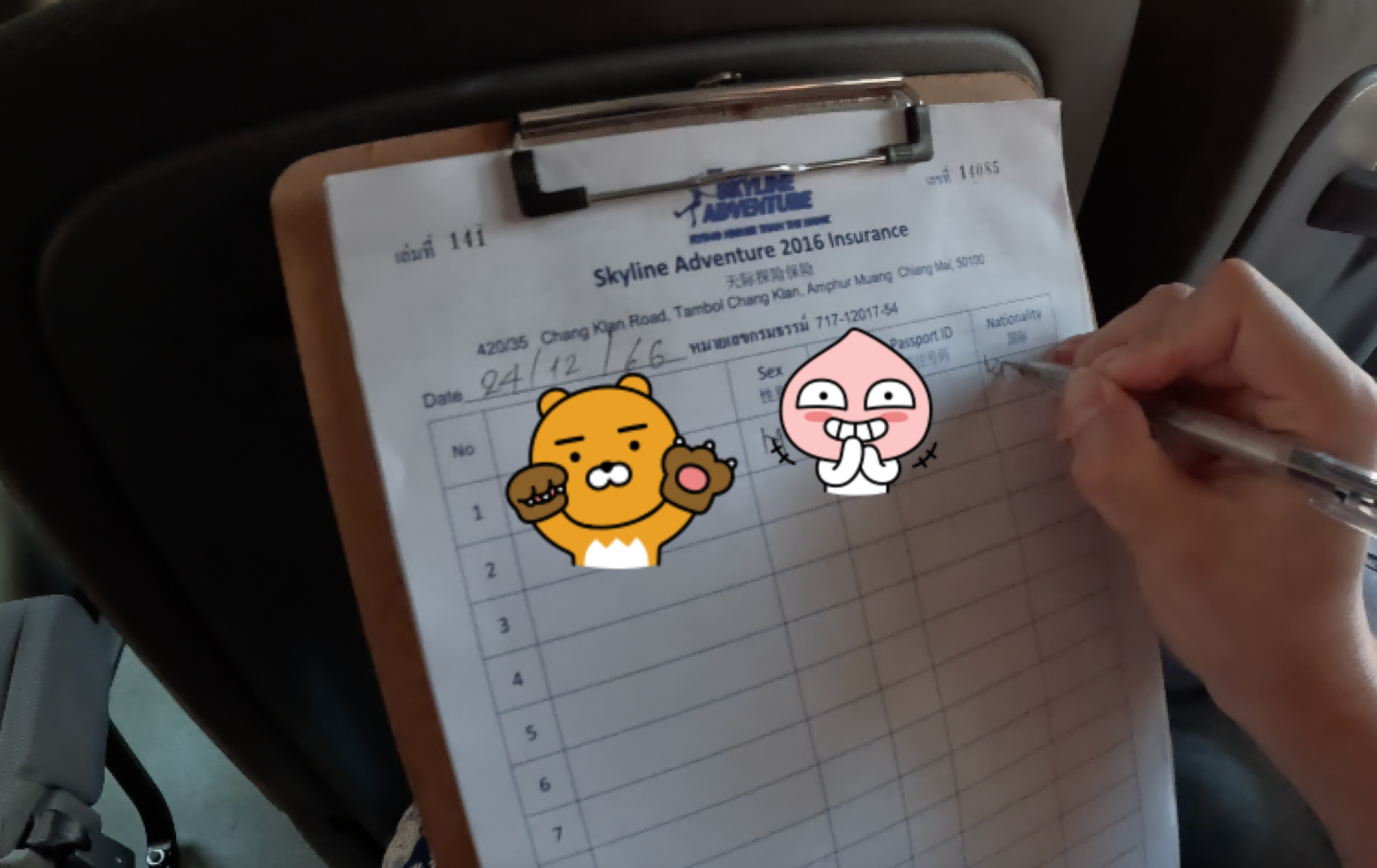 차에 타면 바로 여권 정보를 물어보는 종이를 주고 사람들에게 쓰라고 하는데 이건 위험한 액티비티를 하기 전에 보험 및 업체에 책임이 없다는 동의서를 받기 위함이다. 뭐... 참... 이걸 쓸 때마다 느끼는 거지만 여기서 죽으면 억울할 것 같은 느낌이랄까? (우리는 그래서 한국에서부터 여행자 보험을 들고 갔다.) 여하튼 이렇게 정보를 써서 주면 본격적으로 1시간 반의 이동이 이어진다.