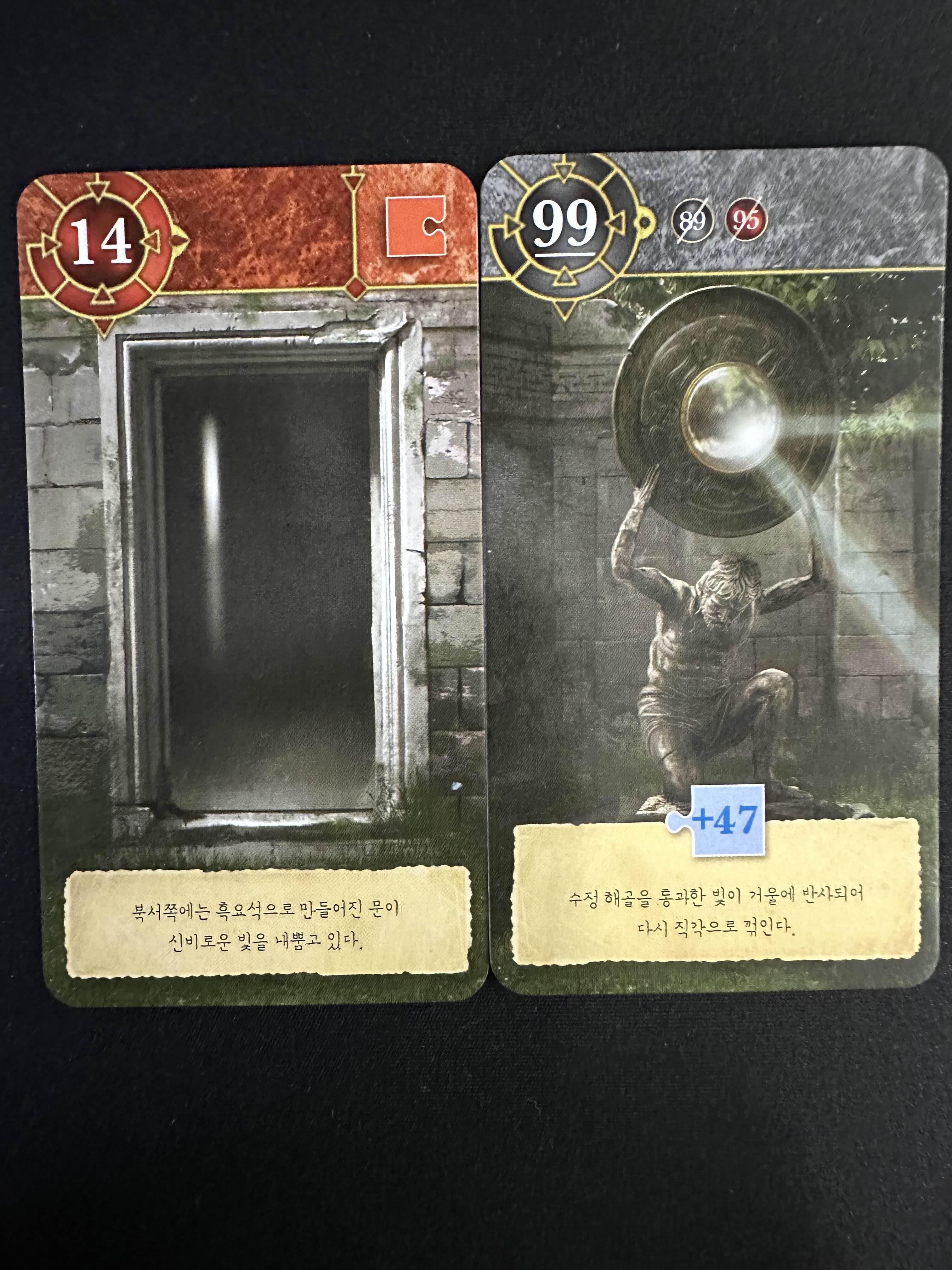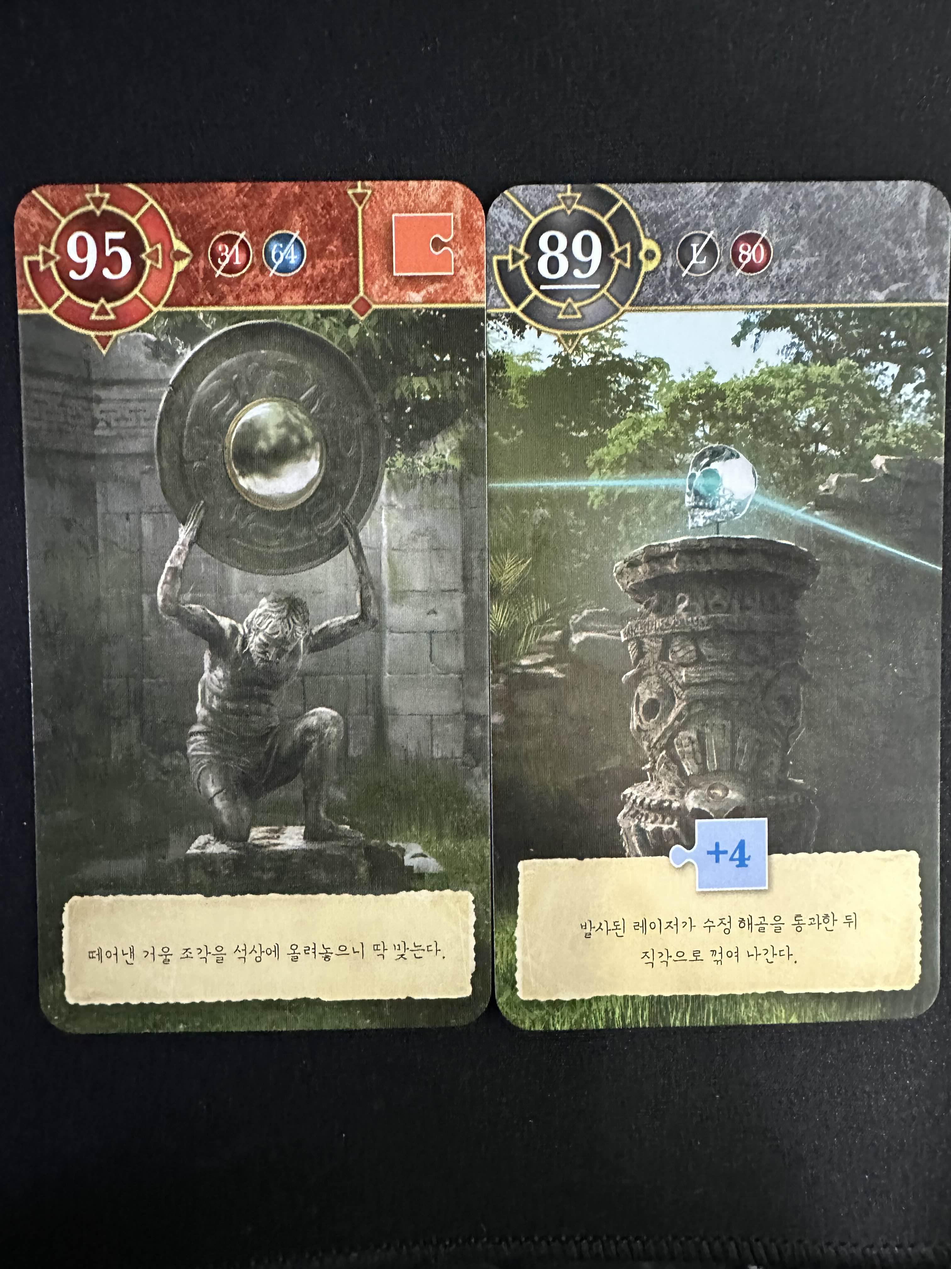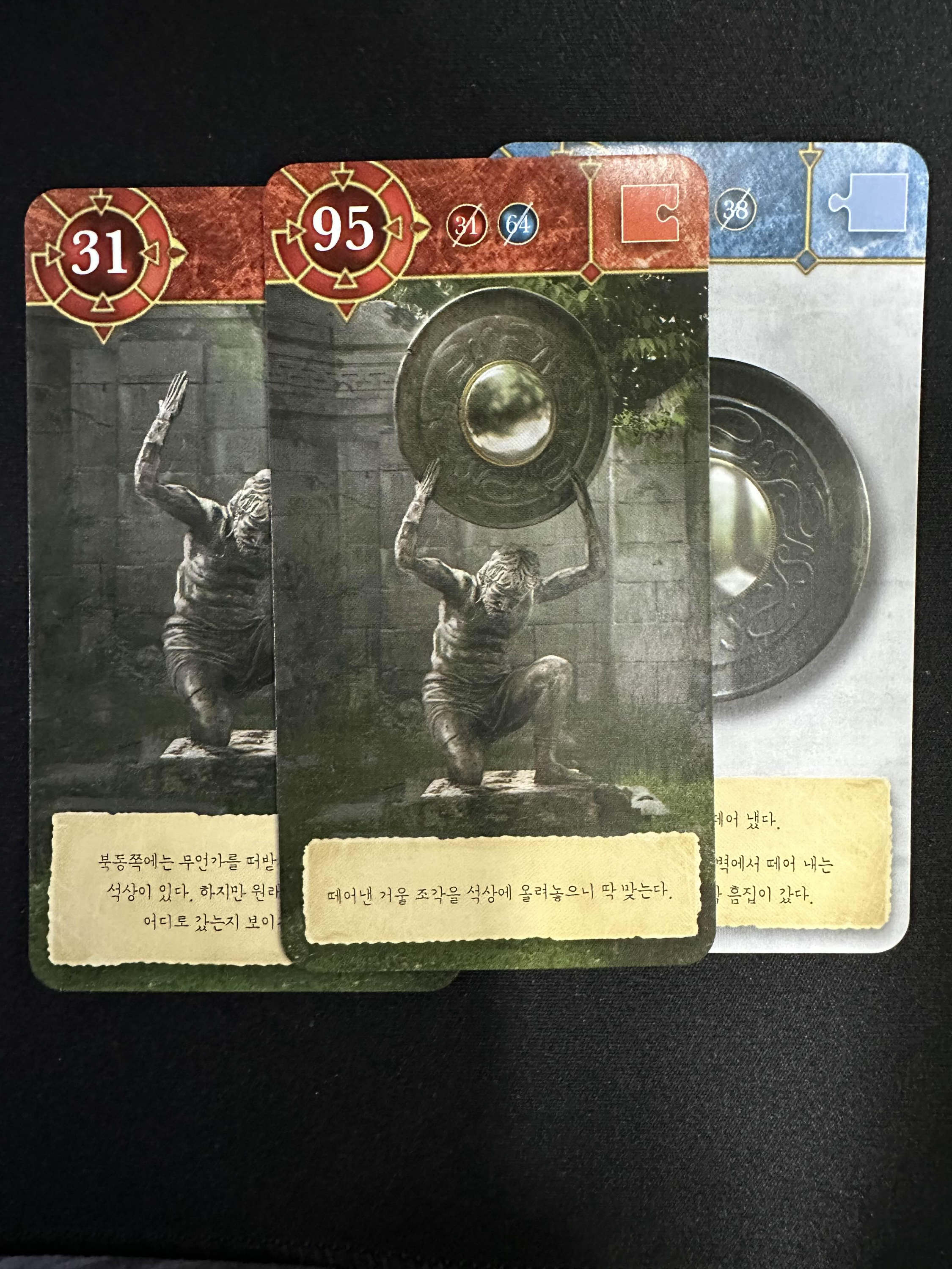 떨어진 거울을 31번의 석상과 합지면 거울을 든 석상을 95번 카드를 얻을 수 있다.