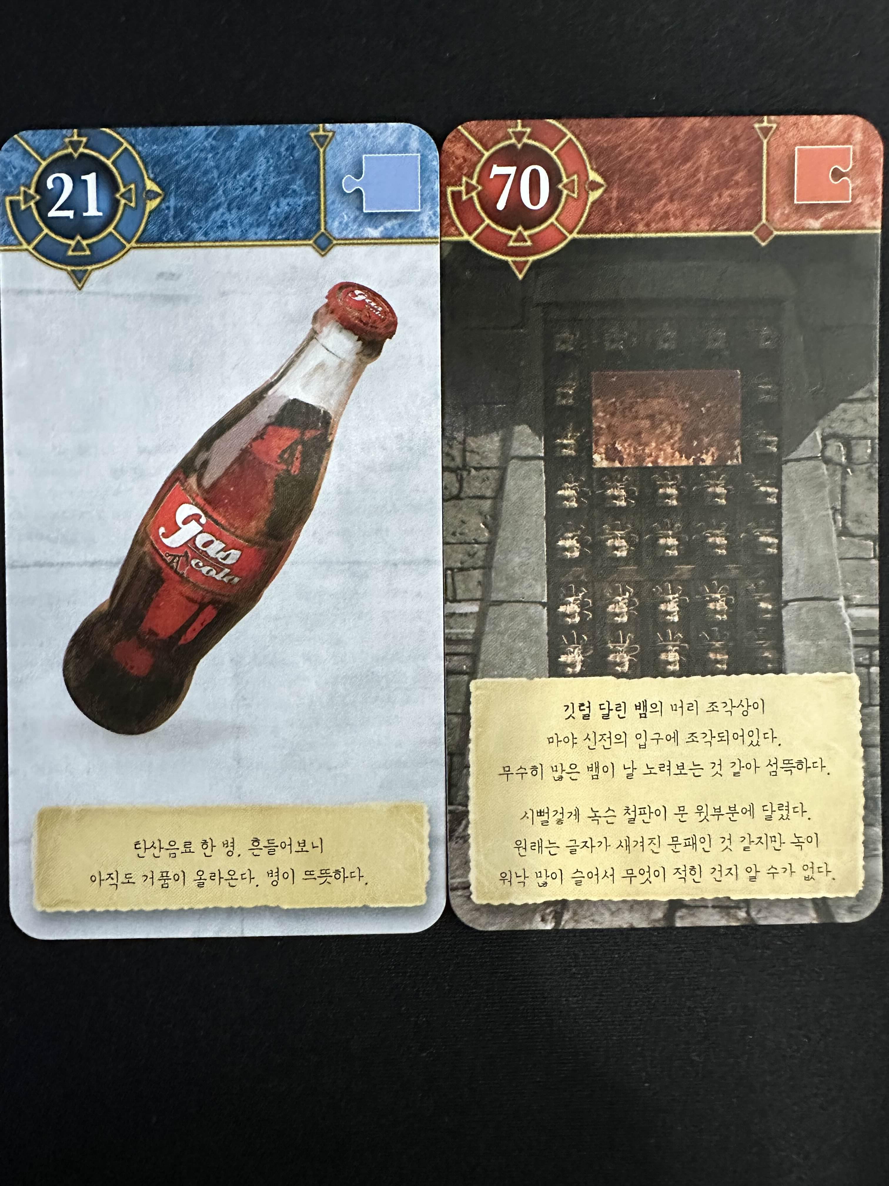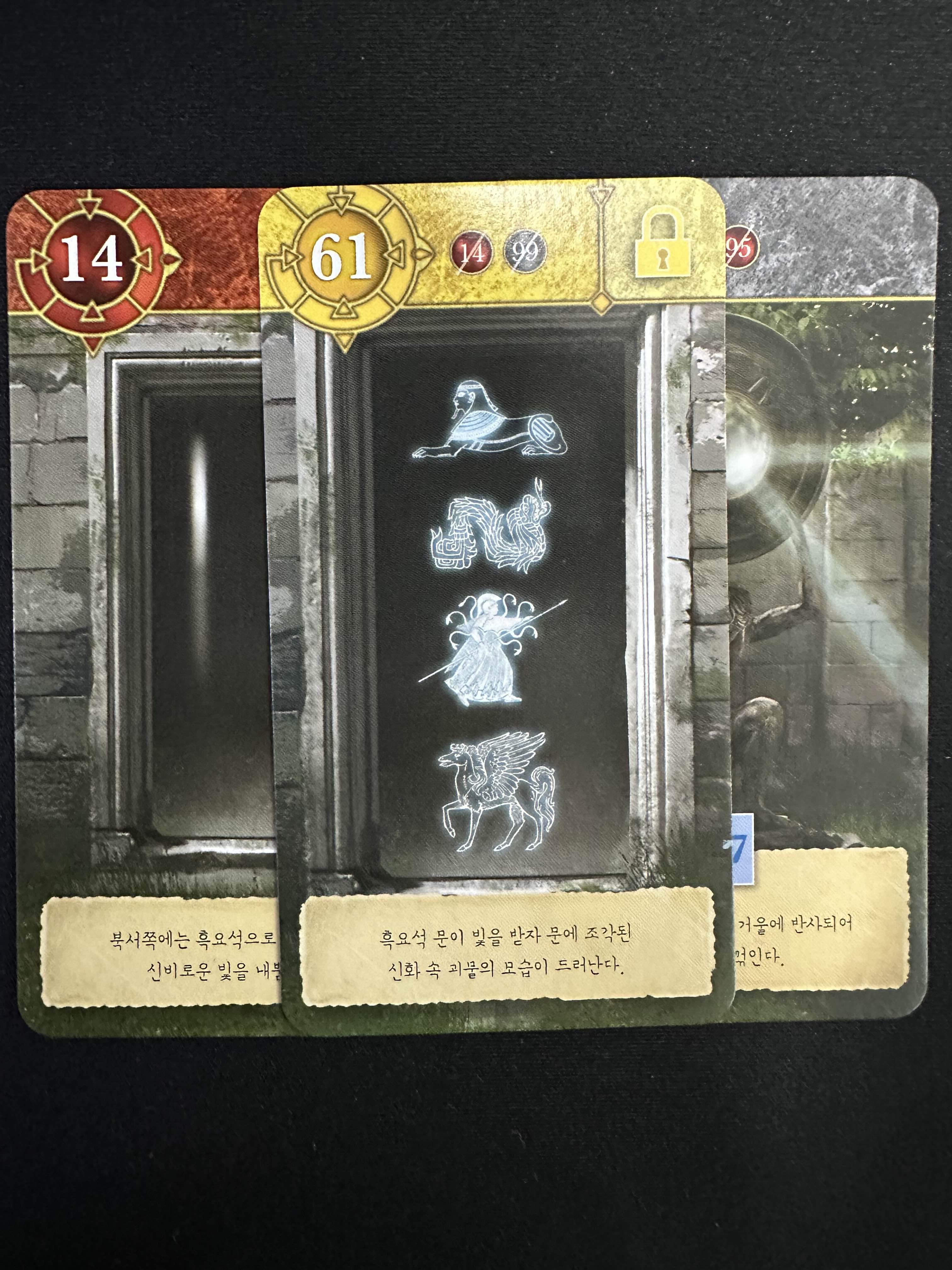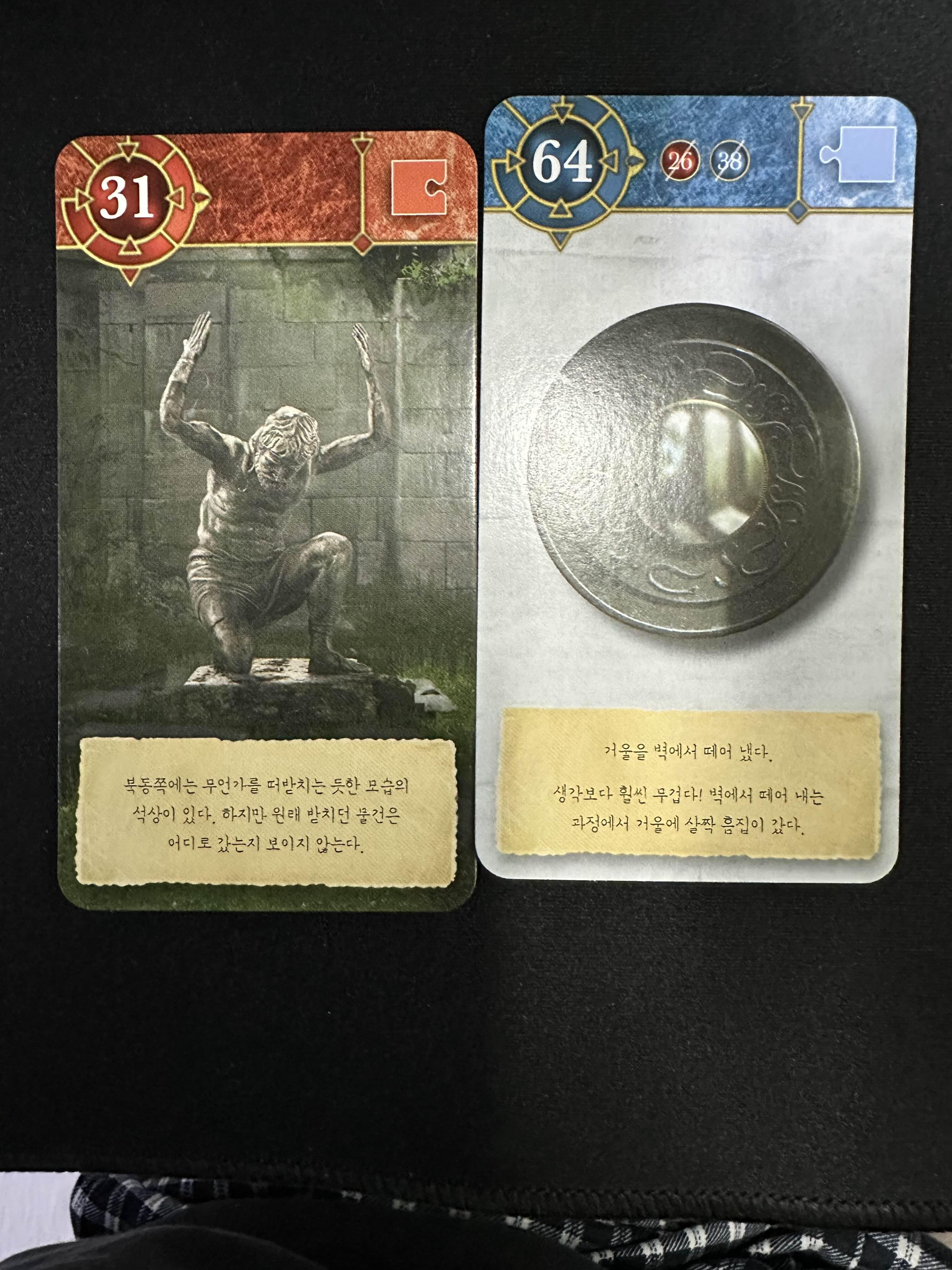 떨어진 거울을 31번의 석상과 합지면 거울을 든 석상을 95번 카드를 얻을 수 있다.