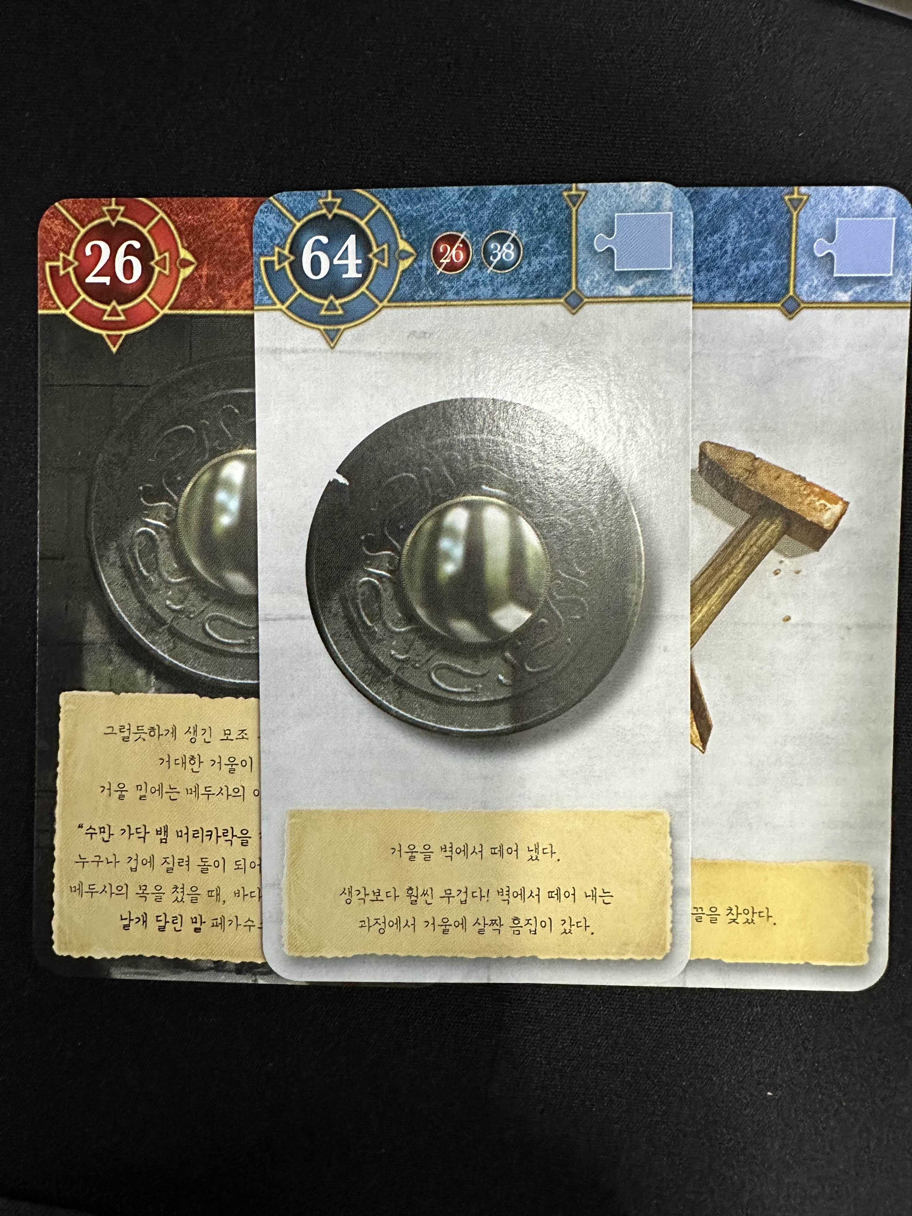 26 + 38로 64번 카드를 찾으면 떨어진 거울을 얻을 수 있다.