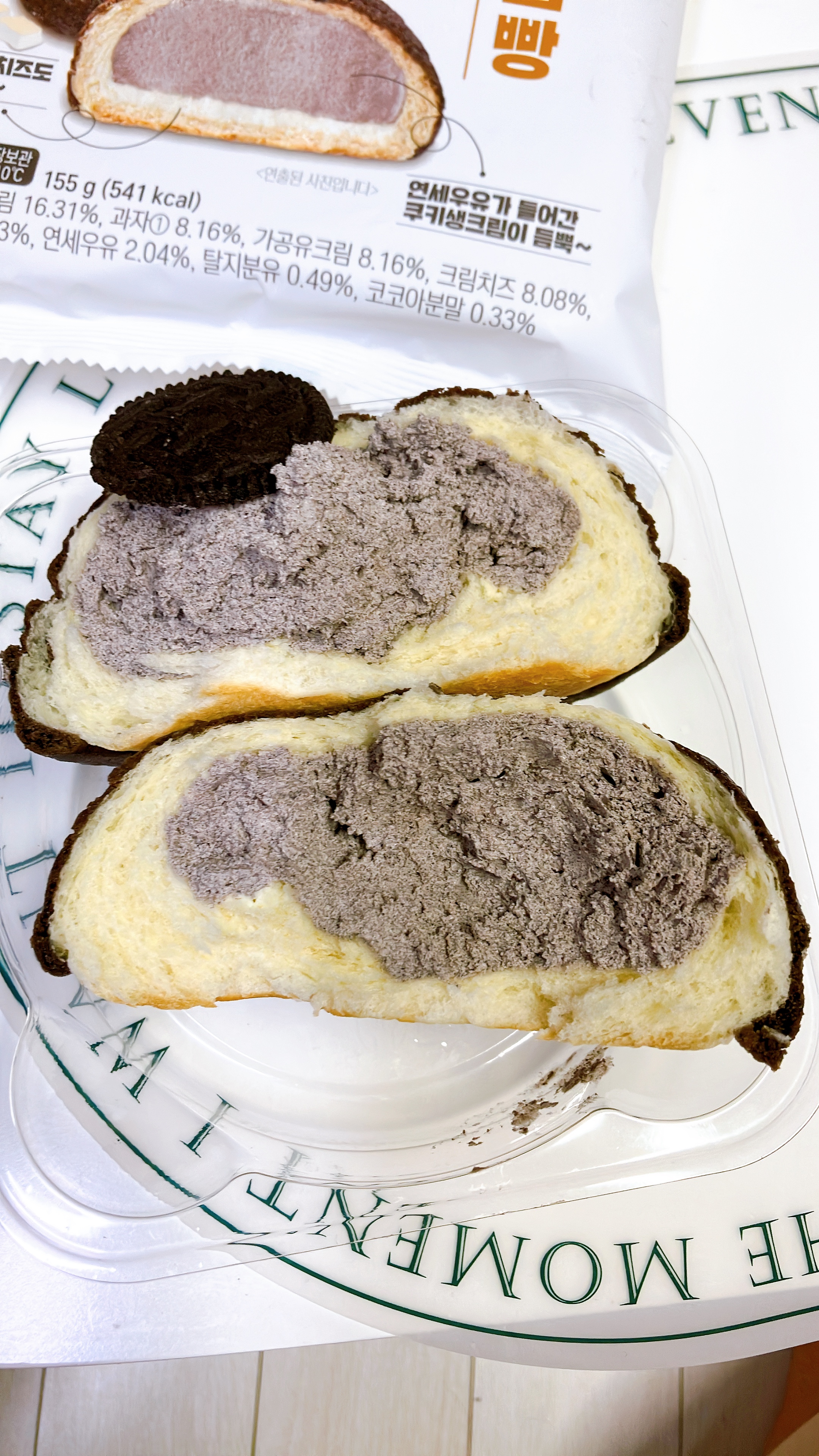원래 사 먹을 생각이 없었는데 아내가 포인트가 남는다고 하여 편의점에서 연세우유 쿠키앤 생크림빵을 사 와서 먹어 봤다. 후기들을 보면 맛이 없다고 하는 사람들이 많은데 그래도 생각보다 나쁘진 않았다. 다만 크림 자체에서는 쿠키앤 크림 맛이 많이 나지 않고 오히려 빵 겉면에 있는 소보로 같은 제형을 같이 먹었을 때 쿠키앤 크림 맛이 났다. 크림빵 소개에는 크림치즈가 들어있다고 쓰여있지만 사실 크림치즈 맛은 거의 느껴지지 않았다.