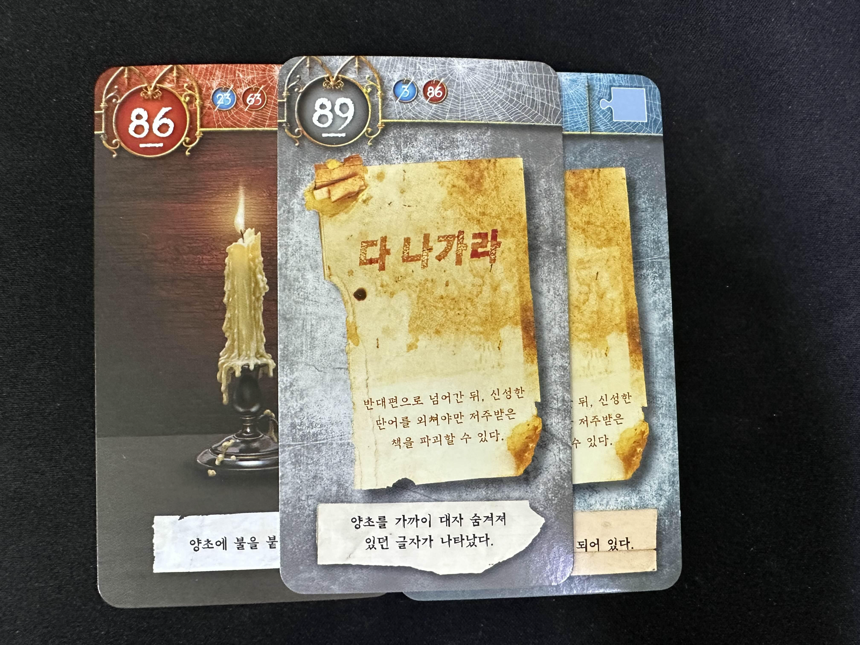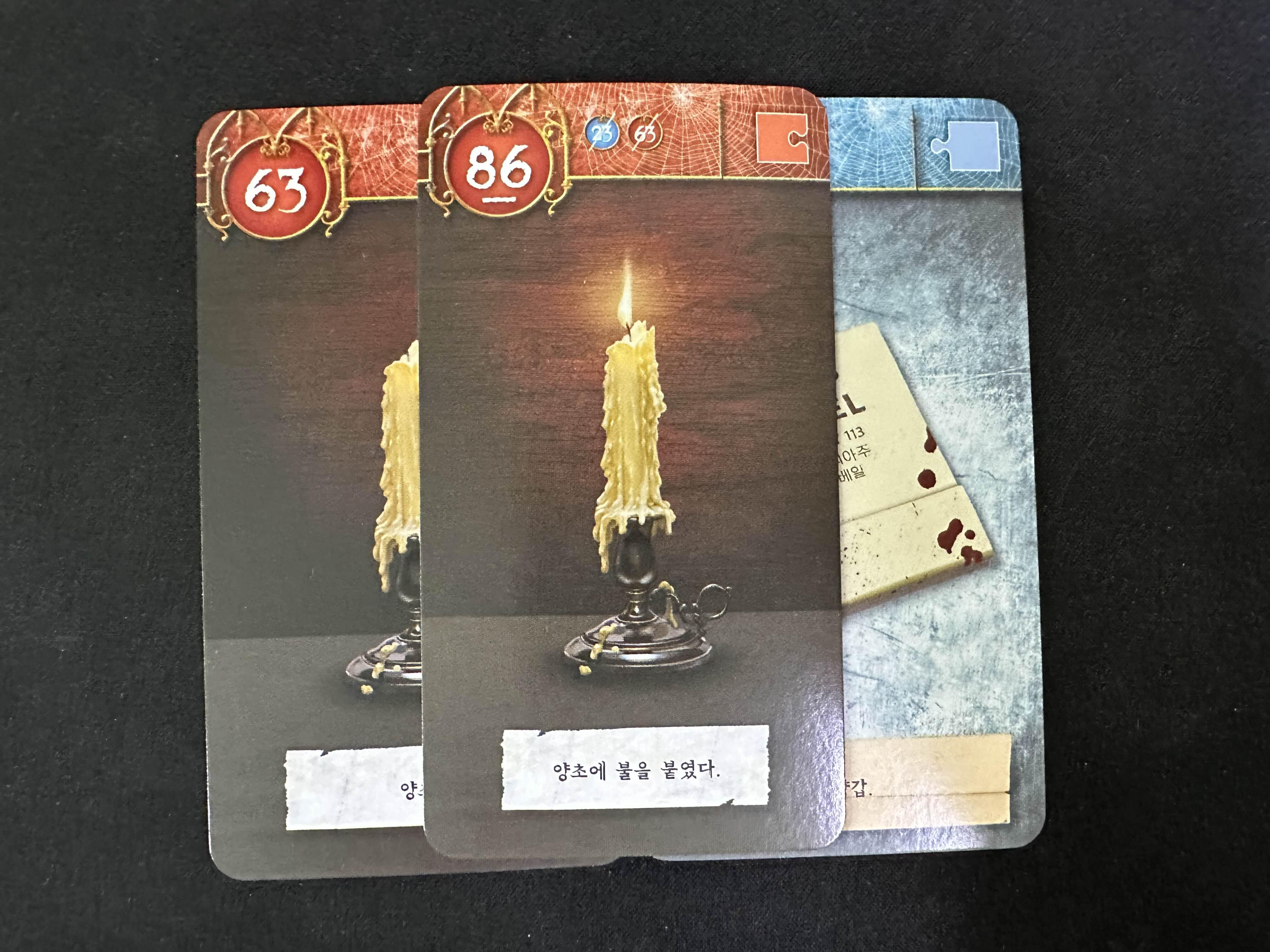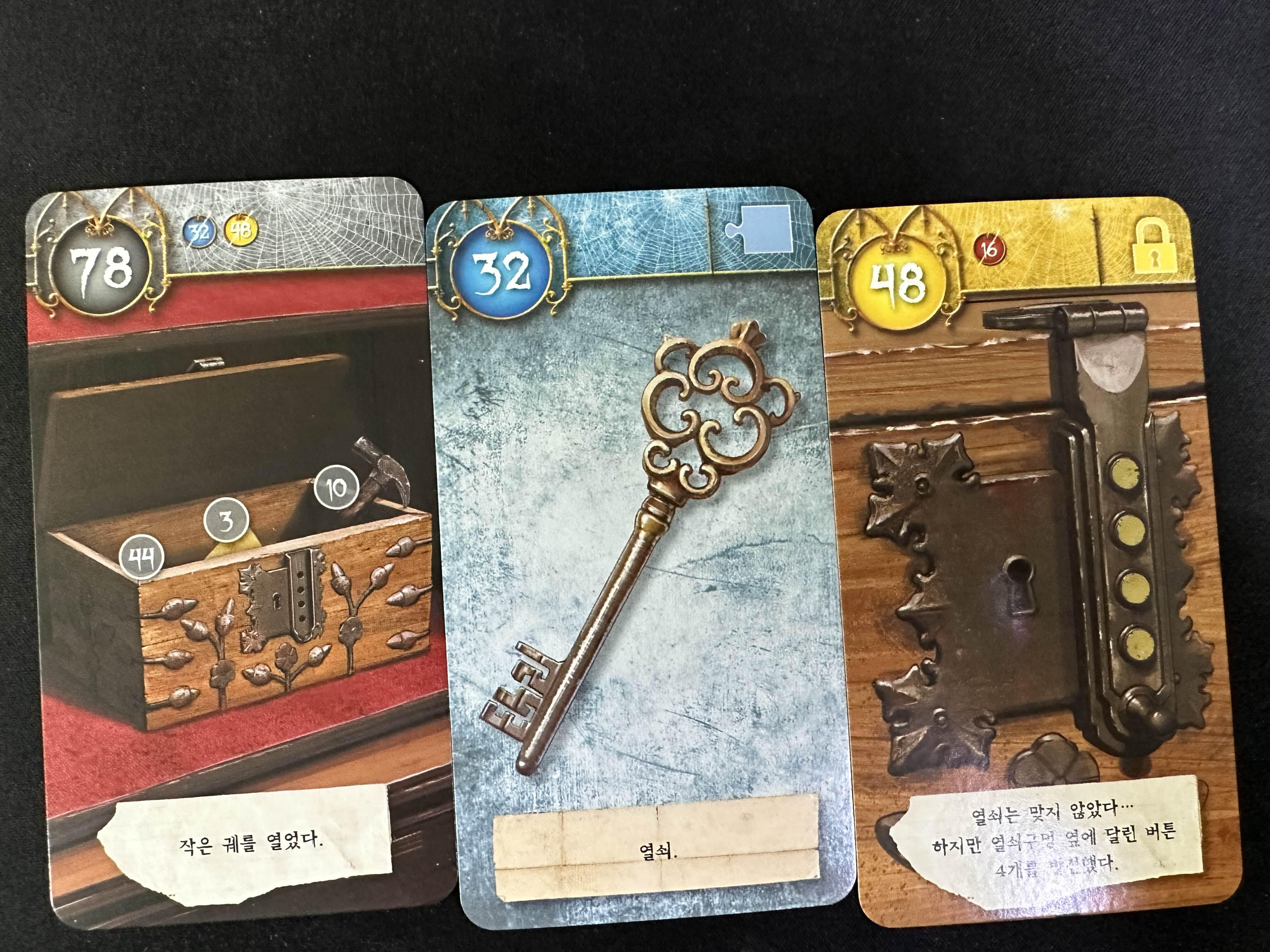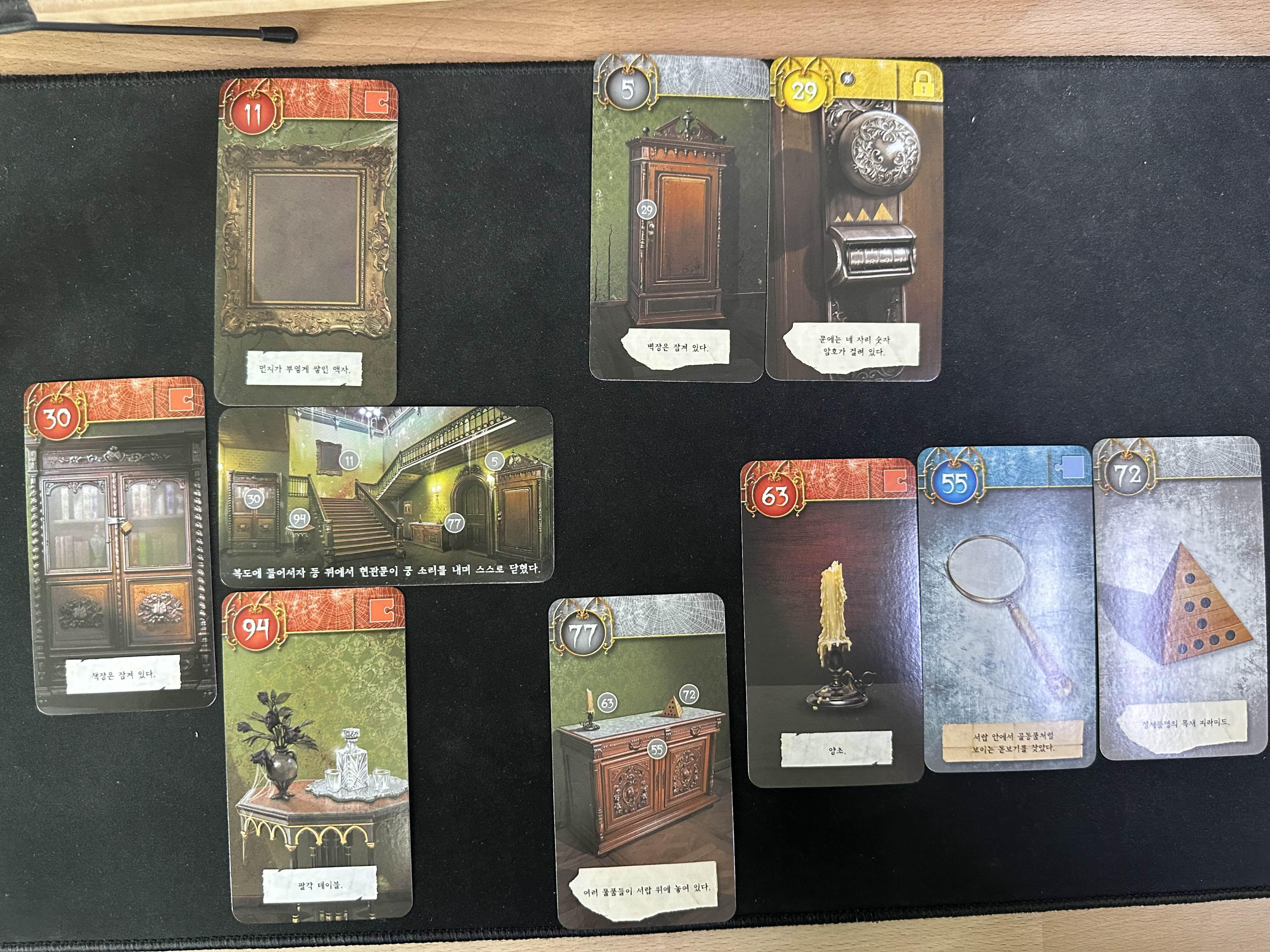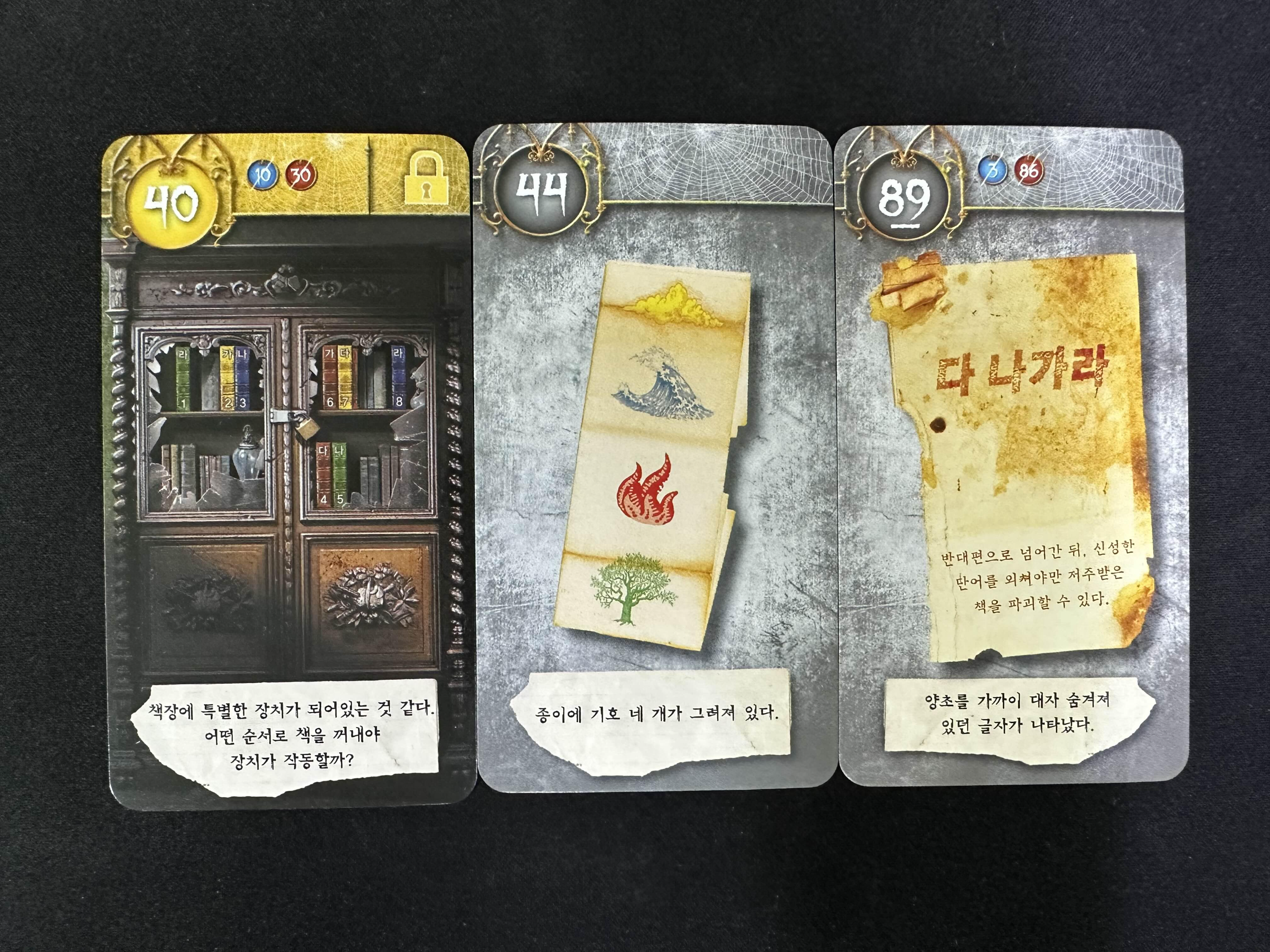 사실 이번 2편부터는 처음부터 극명하게 보이는 힌트가 그렇게 많지 않아서 생각보다 카드를 신경 써서 보는 부분이 많았다. 그리고 이번 시나리오의 경우에는 하나의 퍼즐이 꼬리에 꼬리를 무는 경우가 많아서 끊어서 하기보다는 바로바로 사용하는 경우가 더 많았다. 그래서 비교적 짧은 시간에 끝낼 수 있는 시나리오긴 했다.