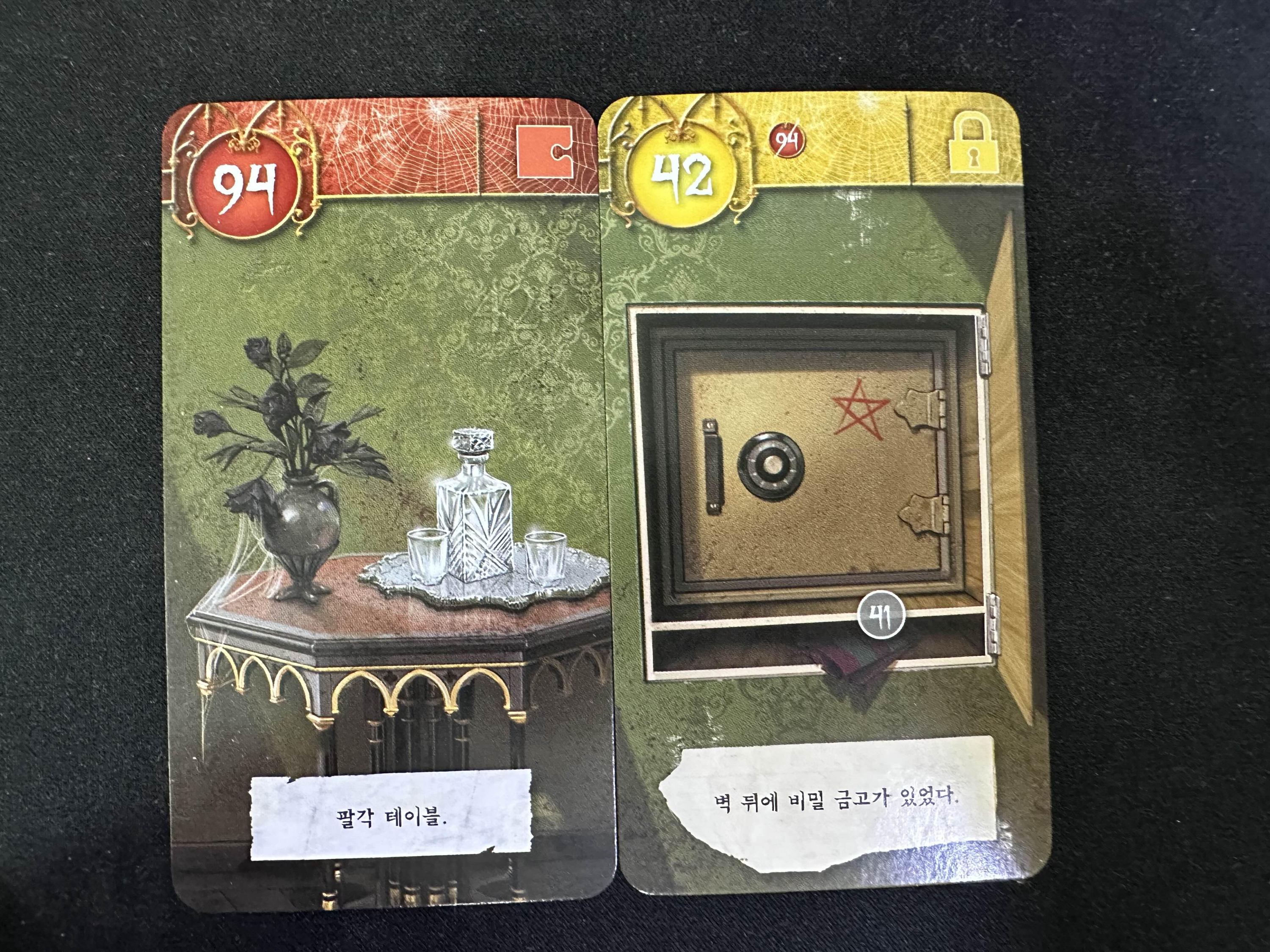 94번 카드의 벽면을 잘 보면 42라고 써져 있는 것을 찾을 수 있다. 42번 카드를 꺼내면 금고와 41번의 천 조각을 얻을 수 있다.