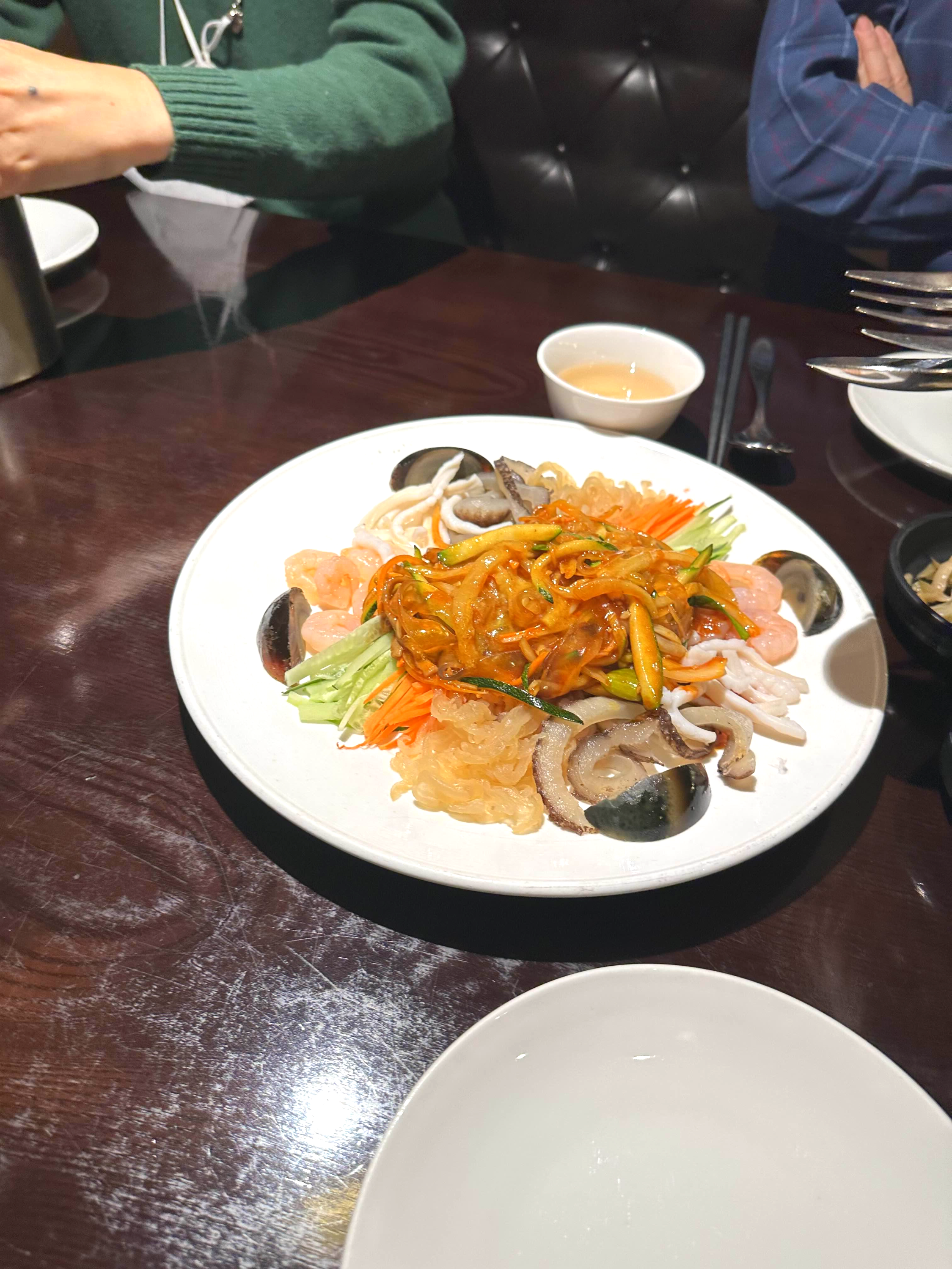 일일향을 가면 그래도 거의 매번 시키는 게 양장피와 어향동고인데 생각보다 양장피가 제대로다. 피단과 해삼, 그리고 해파리까지 모두 들어있어서 꽤 맛이 좋다. 그리고 시그니쳐 메뉴인 어향동고이다. 어향동고의 경우에는 표고버섯에 새우를 다져 붙이고 튀긴 다음 볶은 음식이다. 그래서 튀김 + 볶음 이기 때문에 어느 정도 느끼함을 가지고 있다.