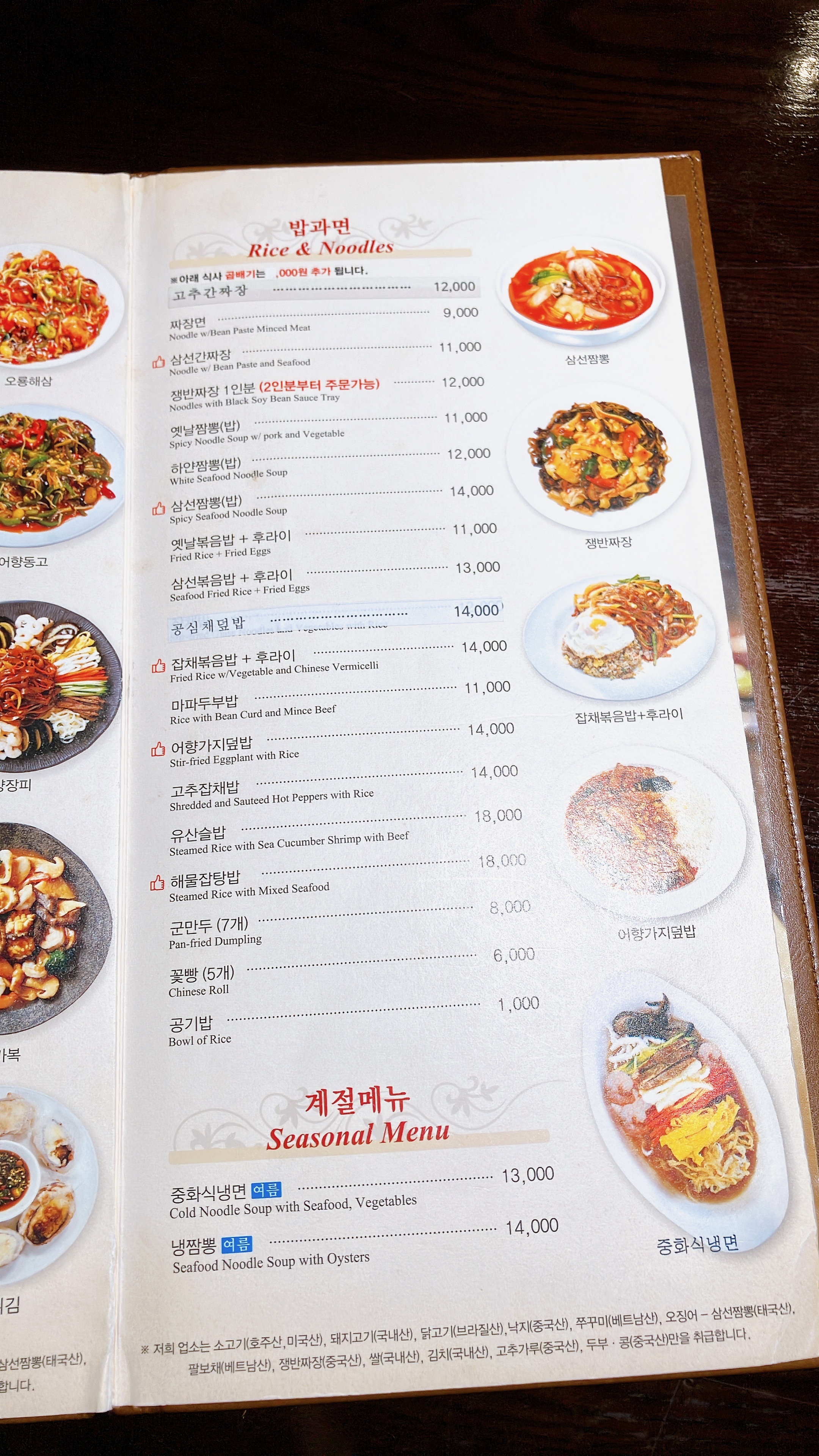 요즘에는 정말 가격이 심하게 올라서 일반 밥, 면류도 만원 이상을 줘야 하기 때문에 참 쉽지 않다. 이제 정말 짜장면이 만원이 아닌 곳을 찾기가 더 힘든 것 같다. 하지만 일일향은 면, 밥류 보다는 요리에 더 강점이 있기 때문에 요리를 시키는 것이 이득이다. 후에 이야기를 하겠지만 면, 밥류는 조금만 시켜서 나눠먹는 걸 추천한다.