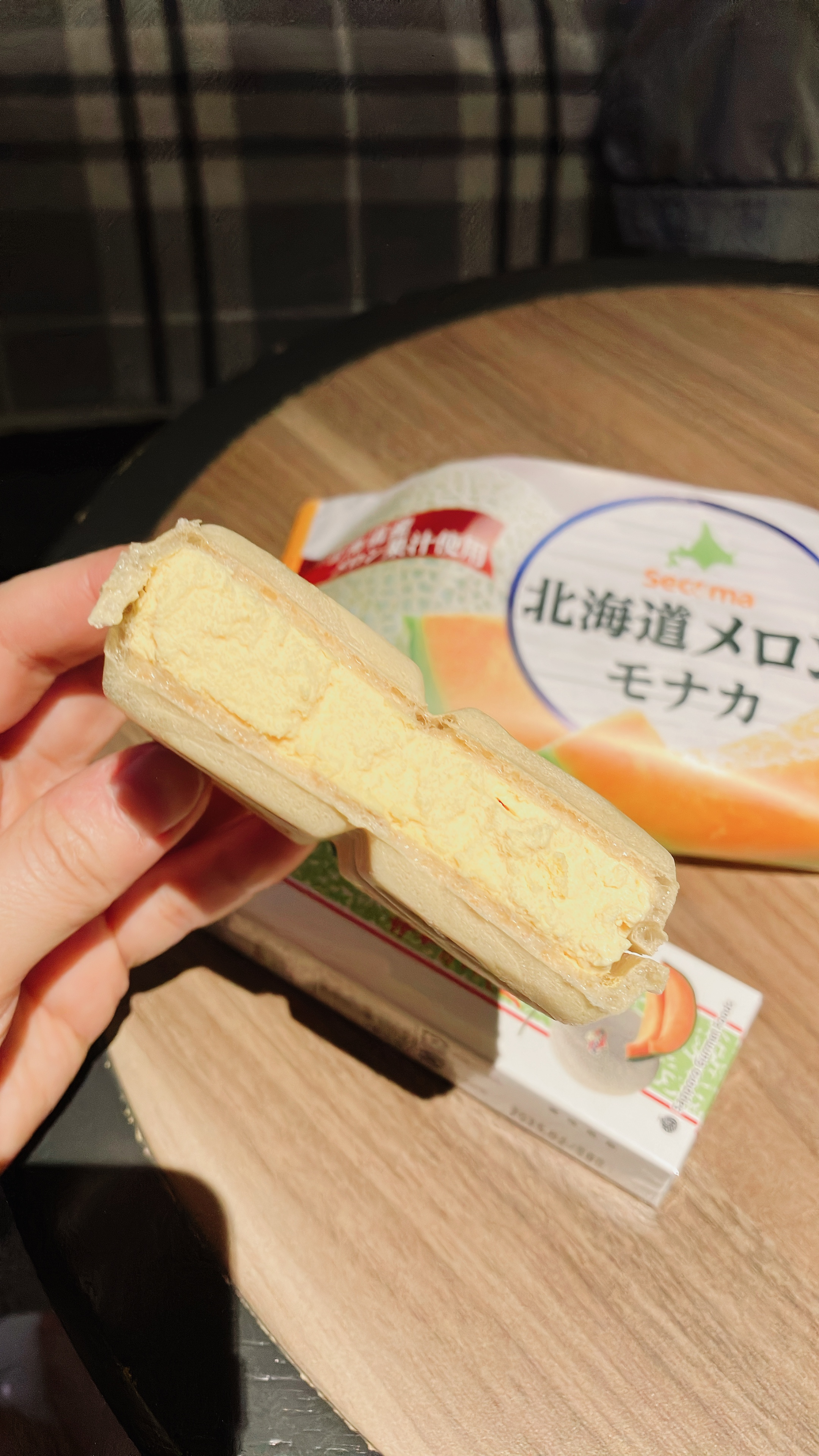 이 홋카이도 멜론 모나카 아이스크림은 정말 홋카이도 멜론 향을 정말 잘 따라 했으며 안에 있는 크림은 우유 크림보다는 조금 더 부드러운 식감을 가지고 있다. 대부분 모나카 아이스크림의 특징이 꽝꽝 얼은 느낌이 아닌 부드러운 식감의 아이스크림이라는 것을 고려했을 때 이 멜론 모나카는 그걸 뛰어넘는 부드러운 식감을 가지고 있다.