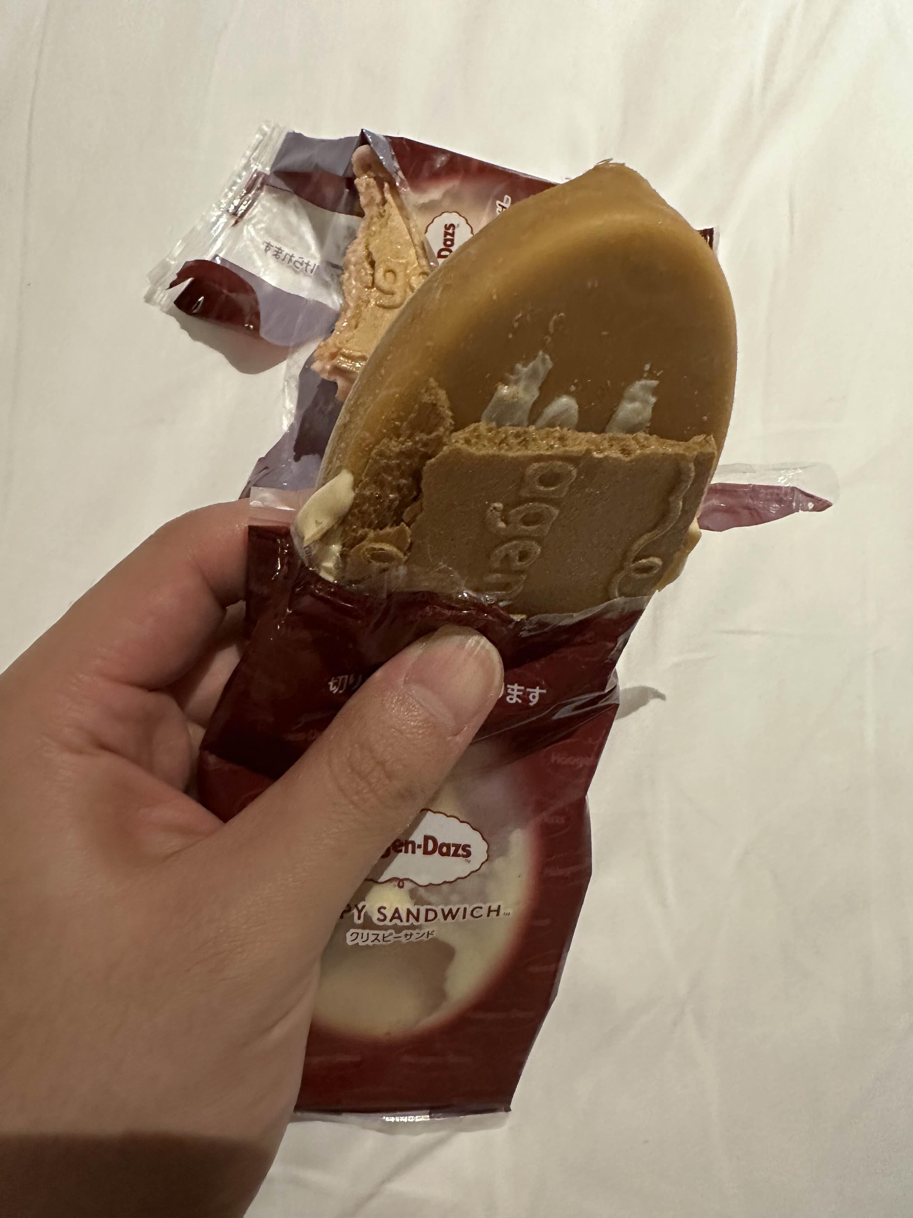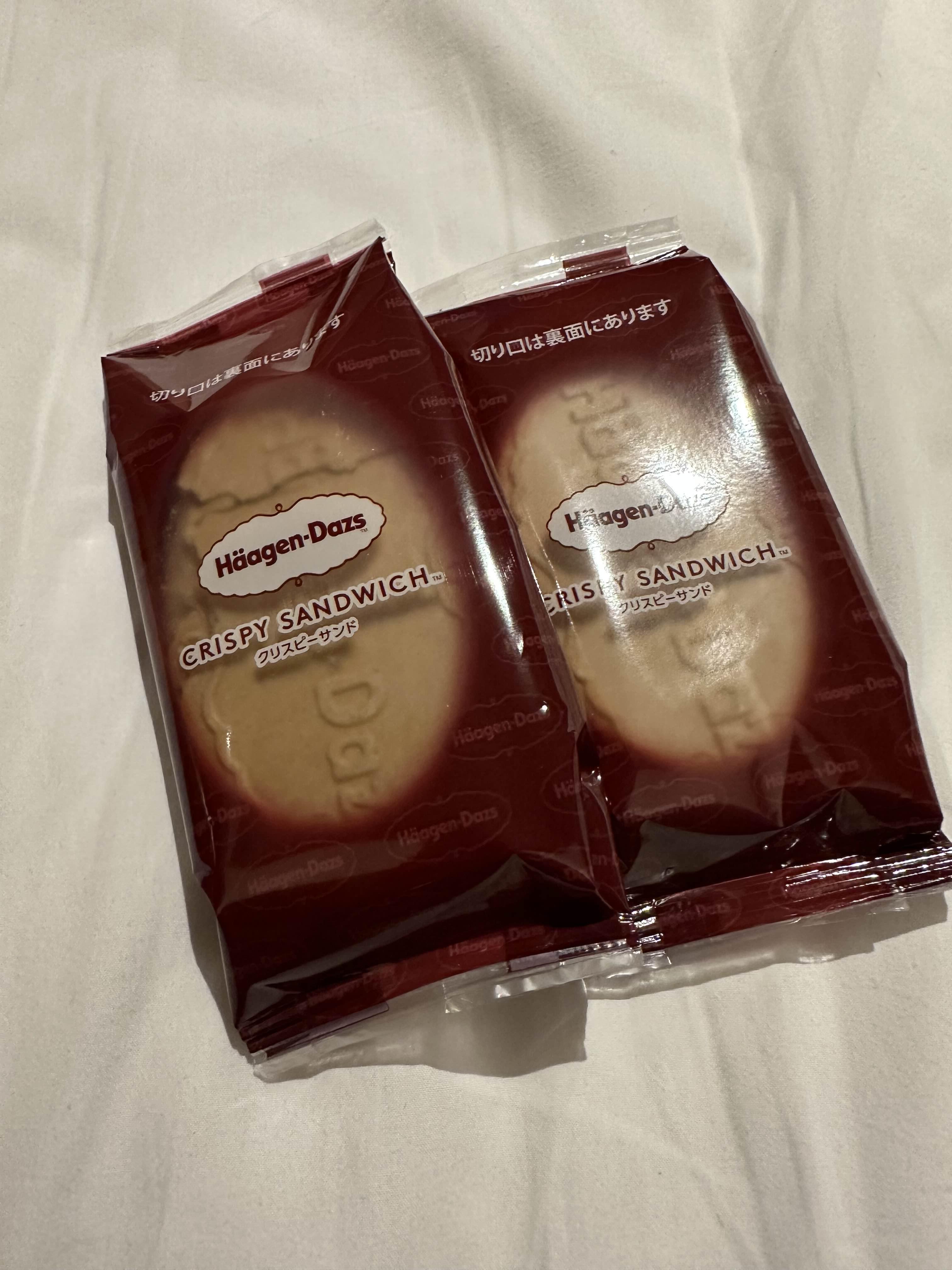 하겐다즈 아이스크림은 샌드위치처럼 얇은 과자가 앞뒤로 있었고 아이스크림 자체를 카라멜은 카라멜 코팅이, 딸기는 딸기 코팅이 되어 있어서 녹을 걱정이 없었다. 다만 아이스크림이 녹으면 한입 깨무는 순간 이 막이 부서지며 아이스크림이 쏟아져 먹기 어려운 상태가 되니 조심하자. ㅋㅋ