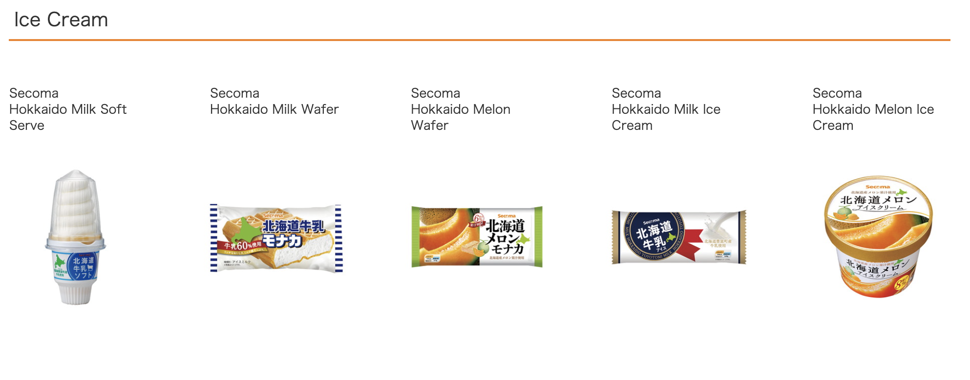 홋카이도 삿포로에는 이 지역 편의점인 세이코 마트(세코마)가 로손, 패밀리 마트, 세븐 일레븐에 못지않게 존재한다. 이 편의점에는 북해도 특산품을 이용한 상품들이 존재하는데 그중 아이스크림 제품들이 눈길을 끈다. 그래서 우리는 여러 가지 아이스크림 중 삿포로 역 근처에 있던 세이코 마트에서 우리는 홋카이도 멜론 모나카 아이스크림을 사서 먹어보기로 했다. 대부분 한국사람들에게 멜론맛이라고 한 면 메로나를 떠올리곤 하는데 홋카이도 멜론의 경우에는 거기에 새콤한 맛과 산뜻한 멜론 향이 더해져 참 맛있었다.