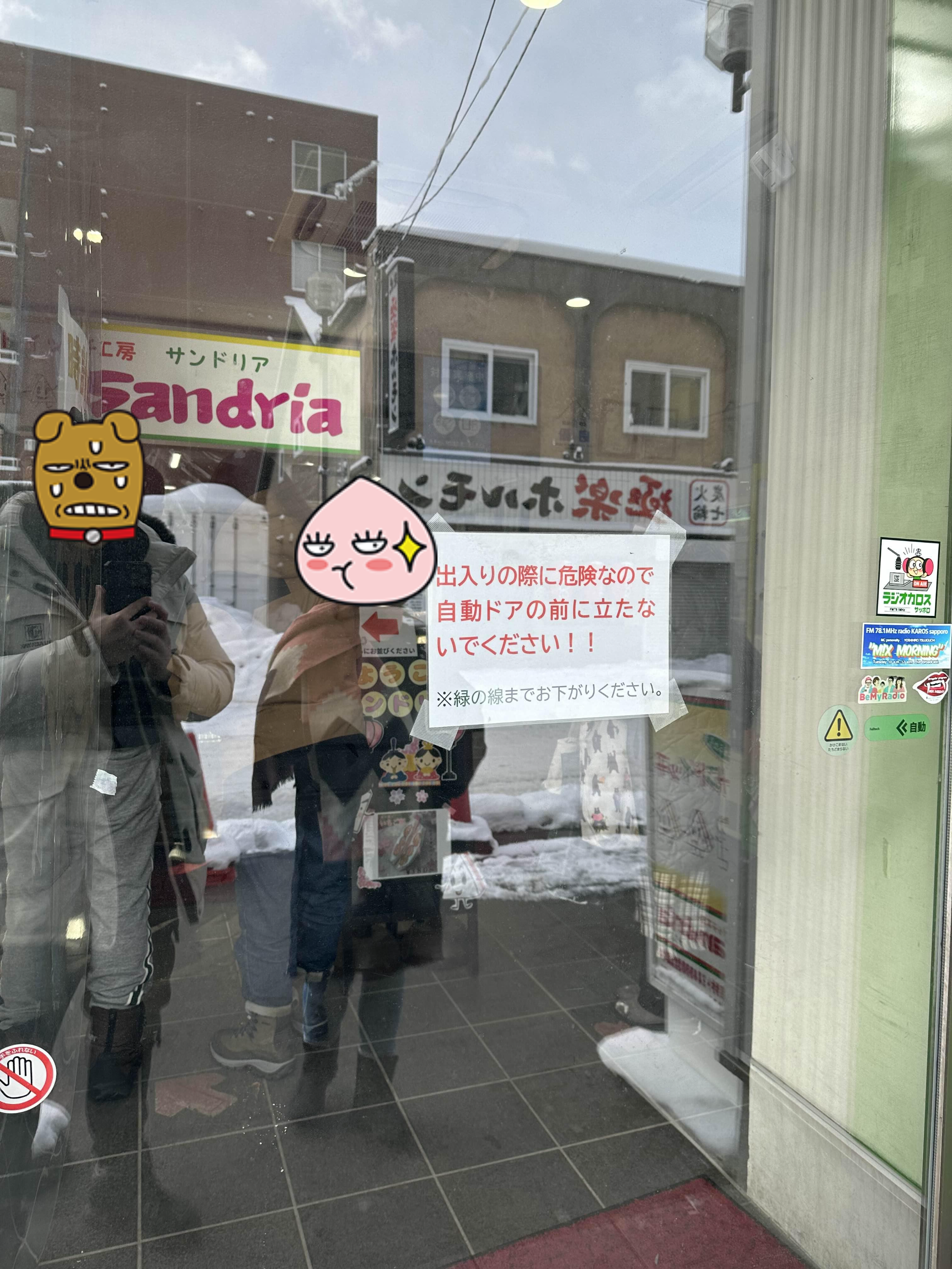 이 매장의 경우에는 사실 좀 애매한 위치에 있다. 이 근처의 맛집으로 에비소바 이치겐이 있고 근처에 장어집들도 있긴 하지만 삿포로의 시내와는 조금 떨어진 곳이다. 우리는 아사히카와로 떠나기 전에 산도리아에 들였는데 매장 바로 앞에 주차 공간이 한 6대 정도 댈 수 있는 곳이 있어서 주차 공간도 넉넉하다.