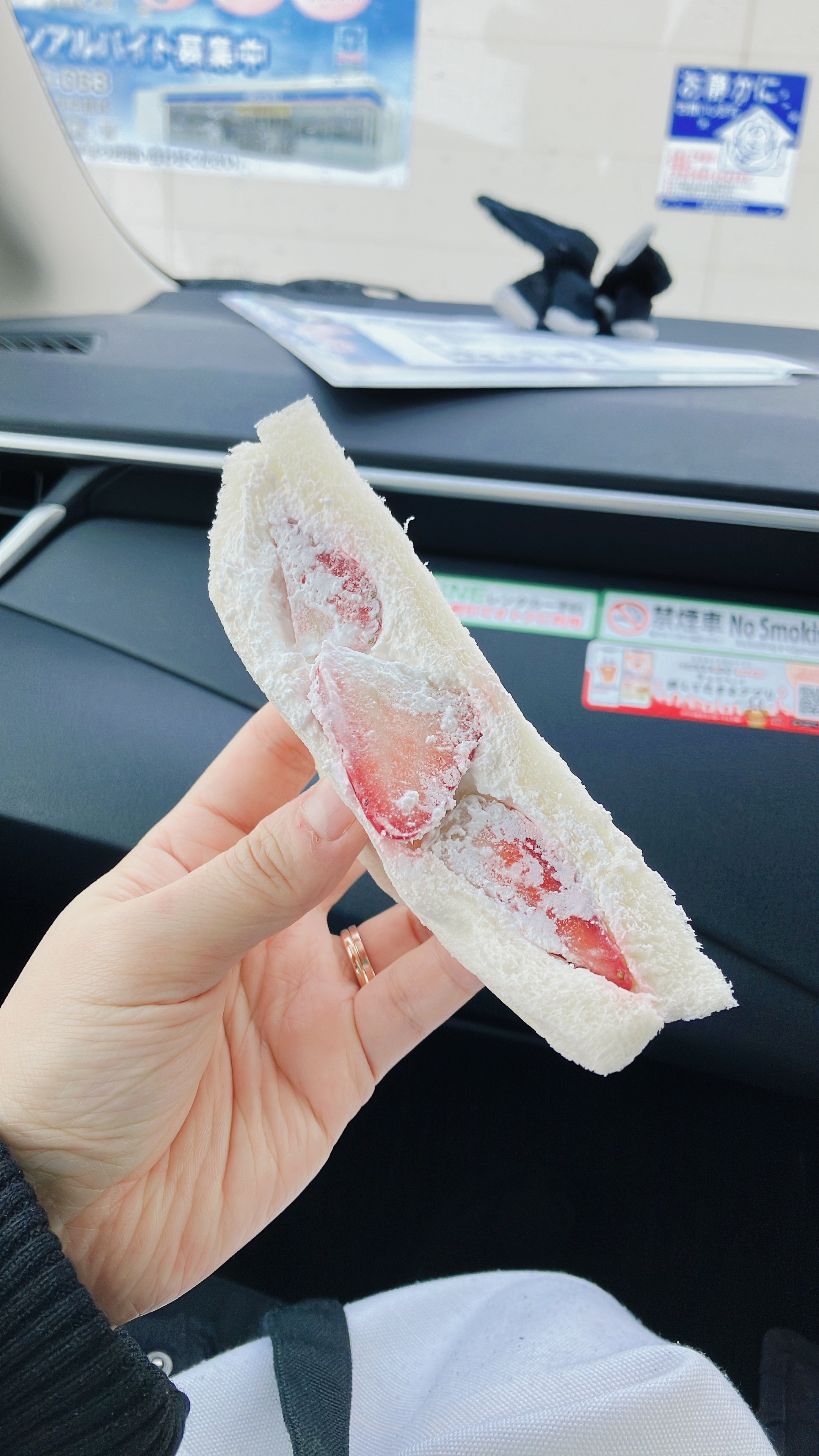하지만 나머지 두개의 맛이 아주 좋았다는 것이 함정 아닌 함정(?)이라고 할 수 있었다. 일단 딸기가... 홋카이도 딸기 무슨 일인지 모르겠지만 일단 크기는 좀 작지만 강렬한 향과 맛을 지녔다. 딸기를 농축시켜 놓은 느낌이라고 할까?? 그래서 생크림의 느끼함과 만나니 이거 원 2천 원 남짓한 가격으로 딸기 생크림 케이크를 먹는 느낌이었다. 우리가 시킨 일반 딸기 산도 외에도 분홍색 빵으로 된 딸기 산도도 있었는데 메뉴명이 이치고 히메(딸기 공주)라고 불리는 것 같았다. 두 가지 딸기 산도가 있으니 원하는 대로 고르면 좋을 것 같다.
