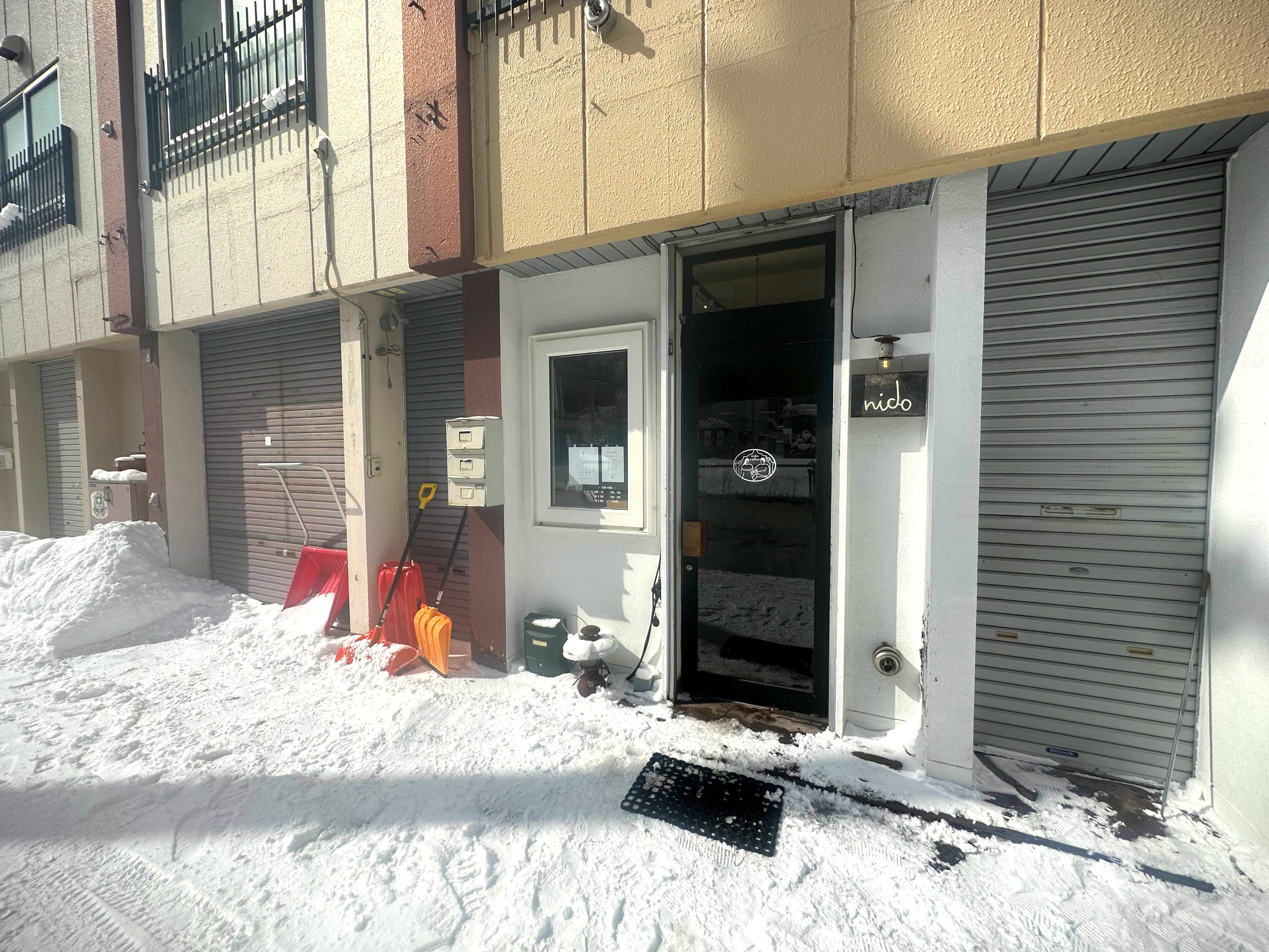 원래라면 아사히카와에서 규카츠나 라멘을 먹을 생각이었는데 이미 산도리아, 펭귄 베이커리에서 빵을 잔뜩 사서 아사히카와로 오는 길에 한바탕 먹었고, 조식으로 밥을 두그릇이나 먹은 터라 전혀 배가 고프지 않아 그냥 커피만 마시기로 하고 바로 nido로 향했다. 주차장이 따로 있지는 않지만 가게 바로 앞에 고가와 개천이 있고 공간이 충분히 있어서 차를 쉽게 주차할 수 있었다. (사람이 많이 다니는 곳이 원채 아니기 때문에 어디다 주차를 해도 괜찮을 것 같긴 하다.)