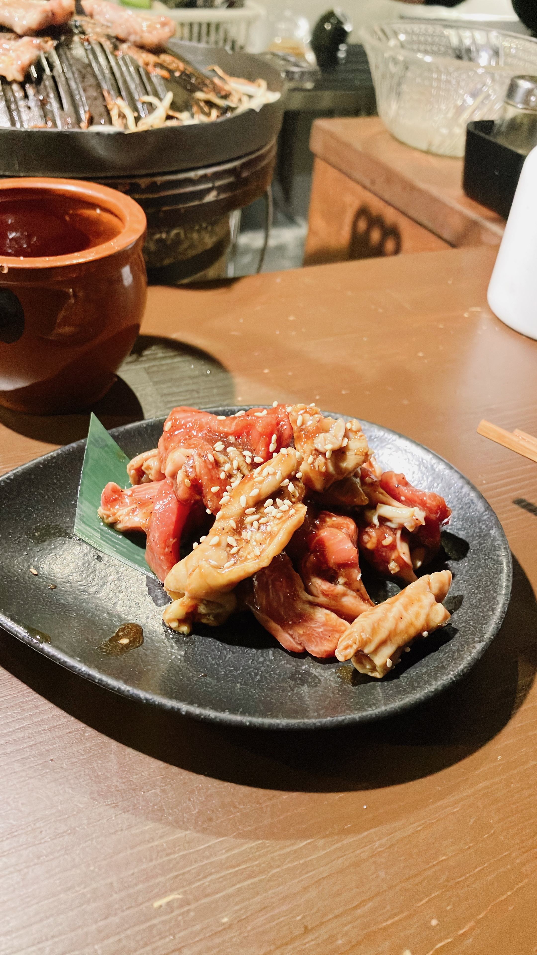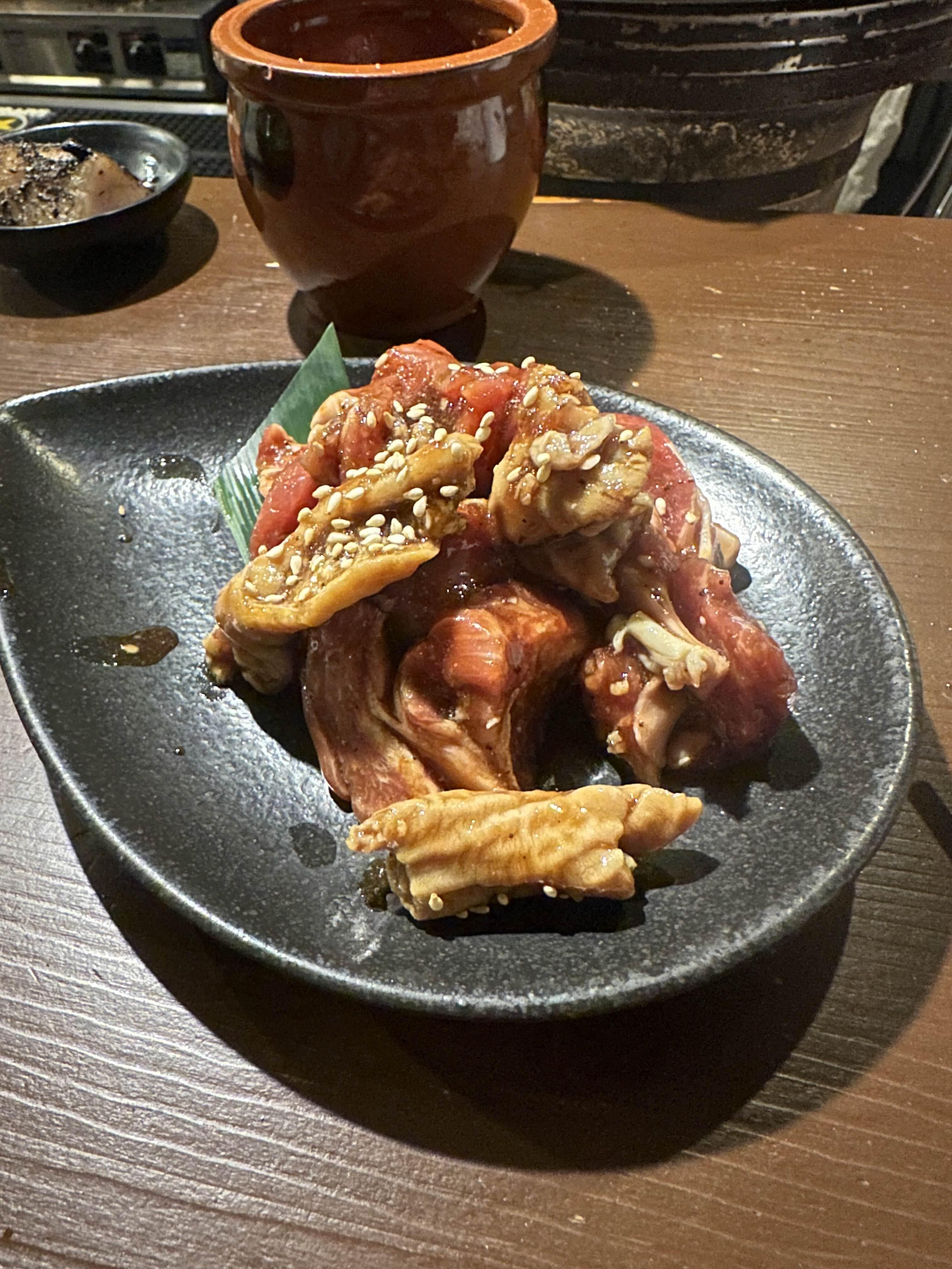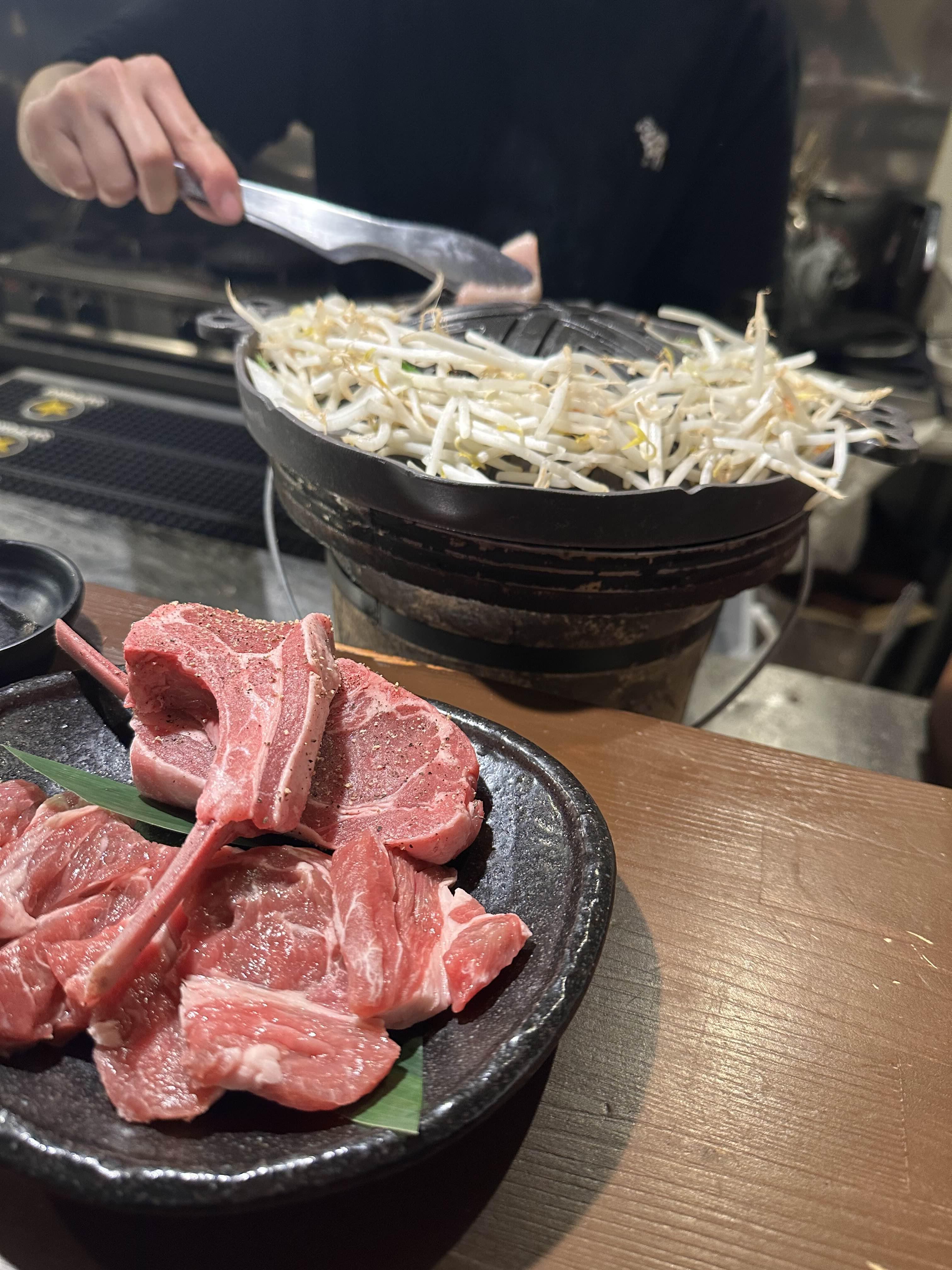 Jinhol이 일본어로 뭔지는 모르겠지만 램고기와 돼지 곱창을 붉은 양념에 양념을 한 건데.. 정말 맛있긴 한데 생각보다 너무 짜서 밥이 필요했다. 마지막까지 불판을 지키기가 쉽지 않은데 철판을 기름으로 닦으면서 정리를 계속해줘야 끝까지 태우지 않으면서 먹을 수 있다. 여하튼 양고기 전반적으로 신선하고 맛이 있어서 아주 좋았다.