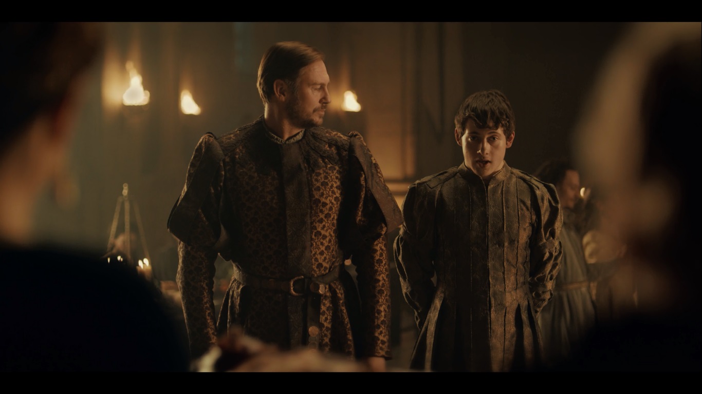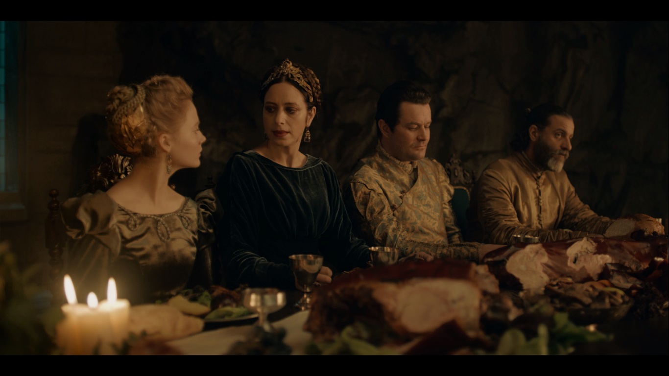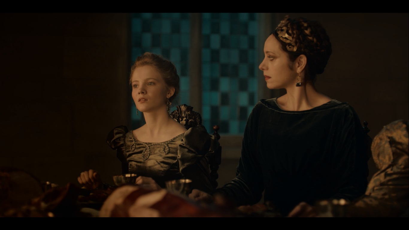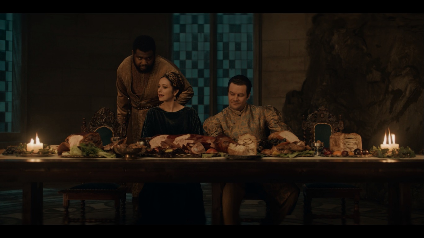 연회 분위기와 다르게 하이 테이블에 앉은 왕과 여왕의 이야기는 전쟁에 대하여 이야기하고 있군요.