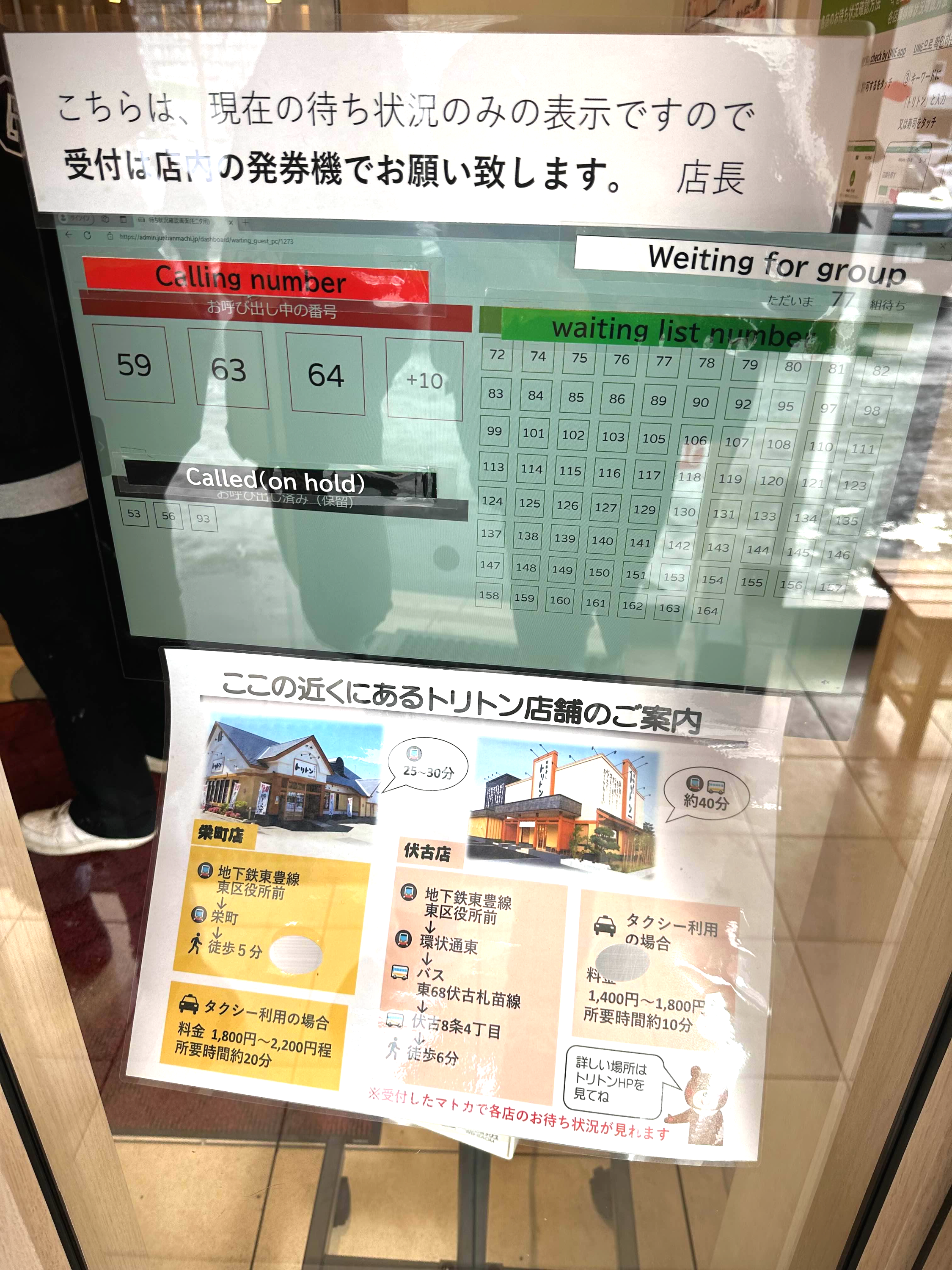 일본 매장 특성상 예약 취소의 개념이 거의 없기 때문에 완전한 노쇼의 경우를 제외하고 이렇게 줄이 정말 긴 가게에 예약 번호제 시스템이 있다면 너무 급박하게 갈 필요가 없는 것 같다. 그렇다고 1시간 이상 늦는 건... 그러지 맙시다. ㅋㅋ 여하튼 번호가 불리고 매장 안에서 기다리고 나니 번호를 부르며 자리로 안내해 주었다. 우리는 운이 좋게 카운터/닷지 석이 아닌 칸막이 좌석으로 안내를 받았는데 확실히 닷지석보다 좋았다.