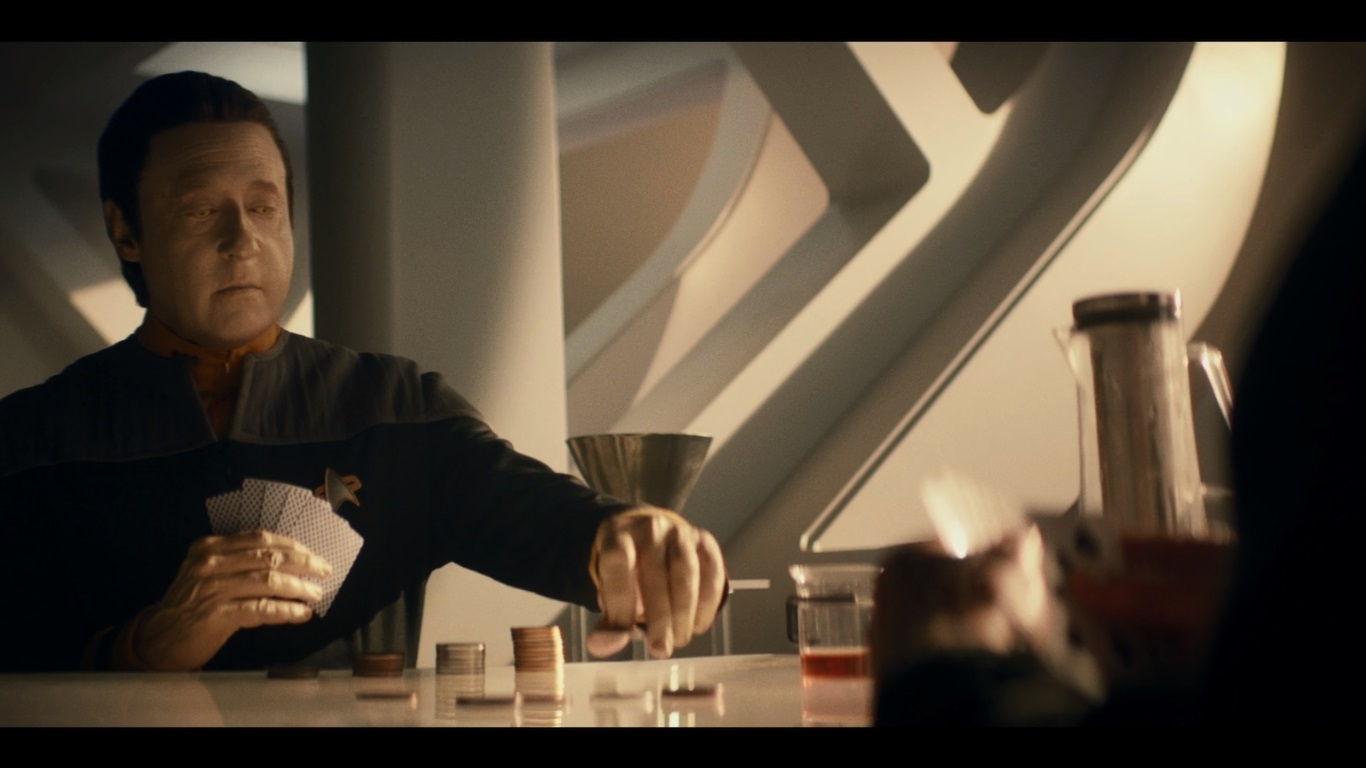 함장인 Picard와 일등상사 Data가 포커를 두고 있습니다.