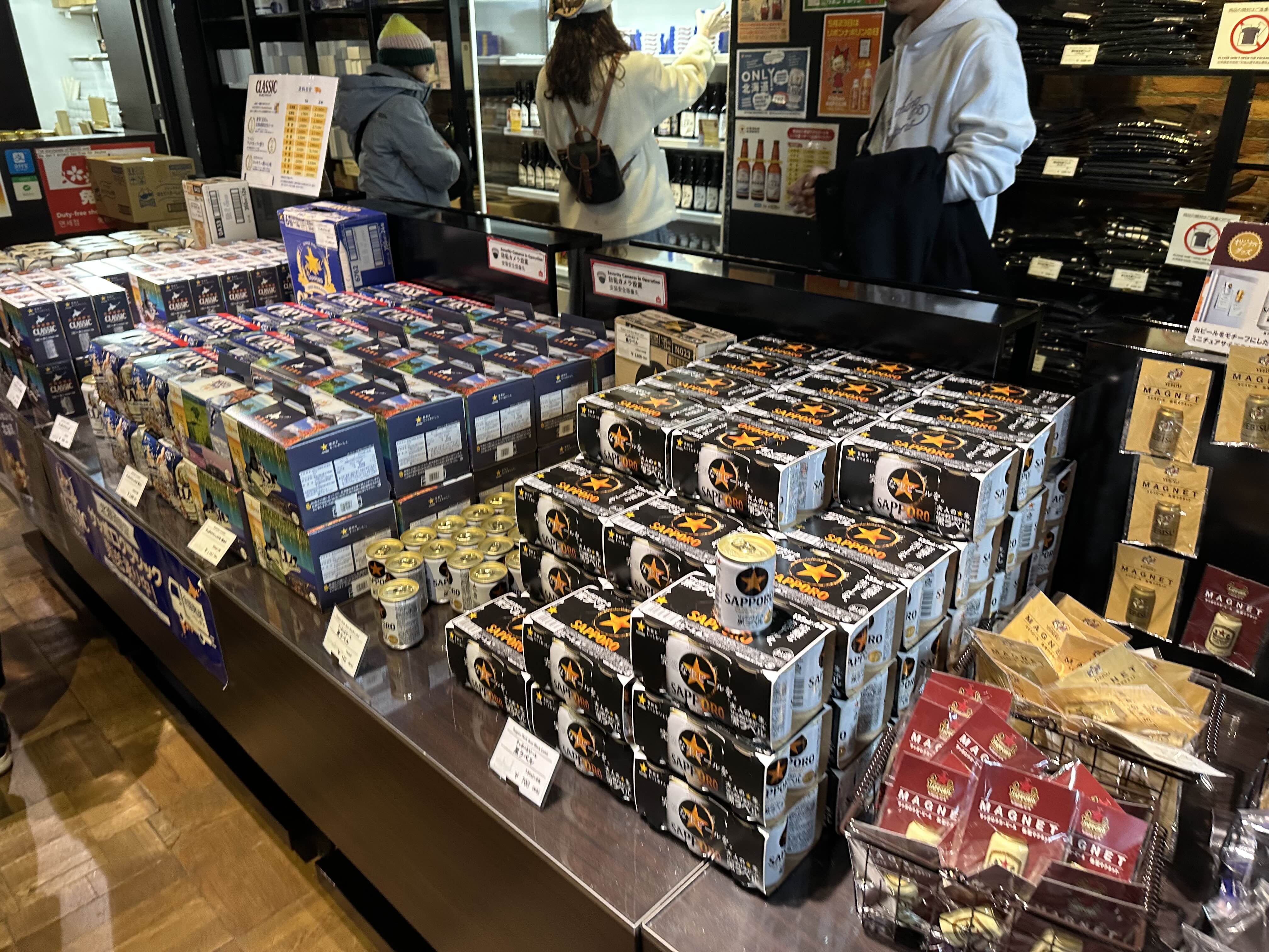 맥주 시음을 마치고 나면 내려가는 쪽에 박물관의 기념품을 파는 곳이 있다. 맥주와 관련된 제품, 안주, 그리고 맥주 자체도 팔고 있다. 그리고 삿포로 티셔츠와 코스터 등 굿즈들도 있는데 삿포로 티셔츠는 워낙 유명하기도 해서 원한다면 하나 사도 될 듯하다.